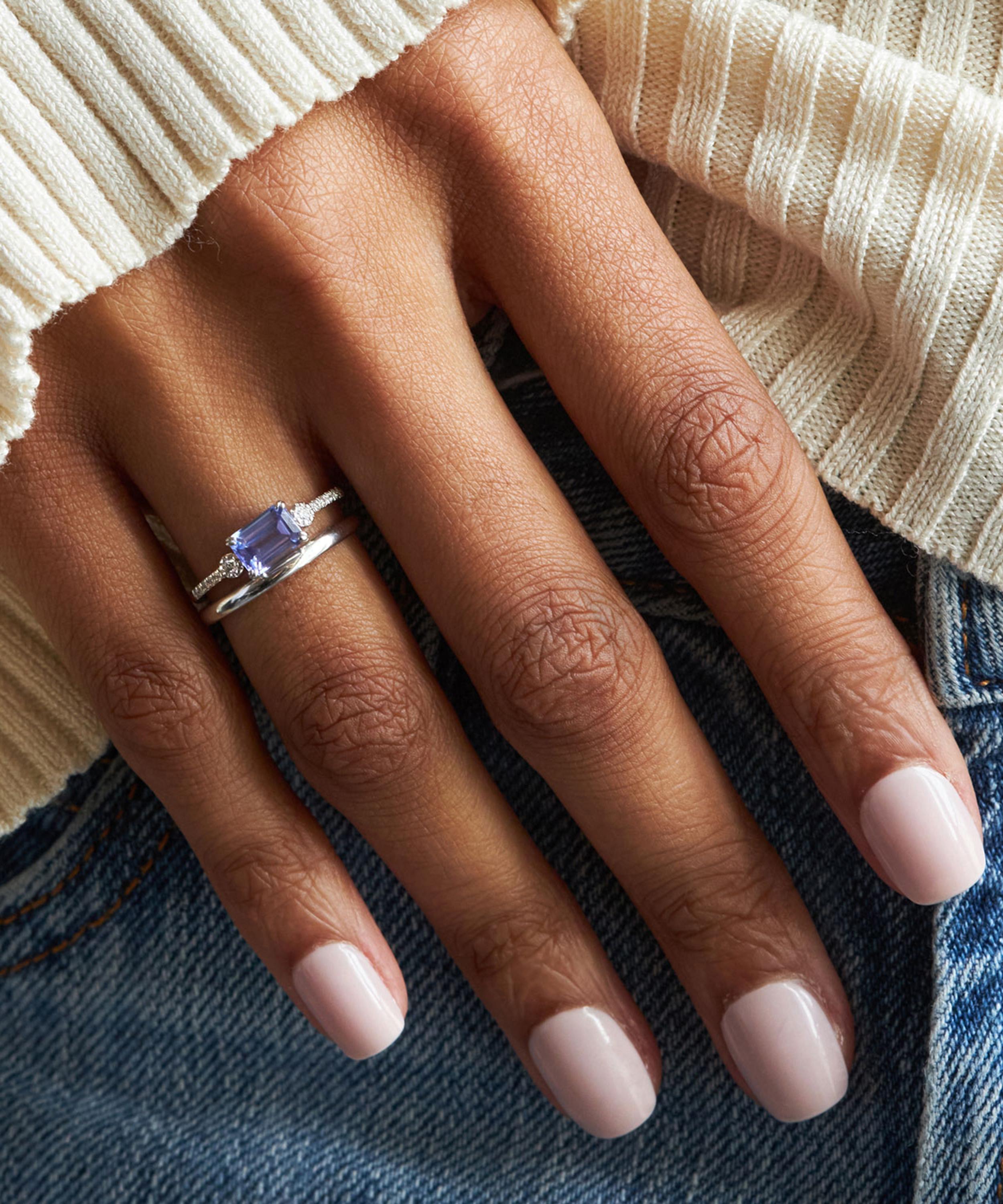 Heighten the impact of your ring curation with Dinny Hall’s unique Betony ring – inspired by the British flower meadow. Crafted from 14ct white gold, its beautiful design emanates Spring all year round, composed of a mesmerising tanzanite, flanked by a brilliant-cut diamond on each shoulder and additional diamond accents.