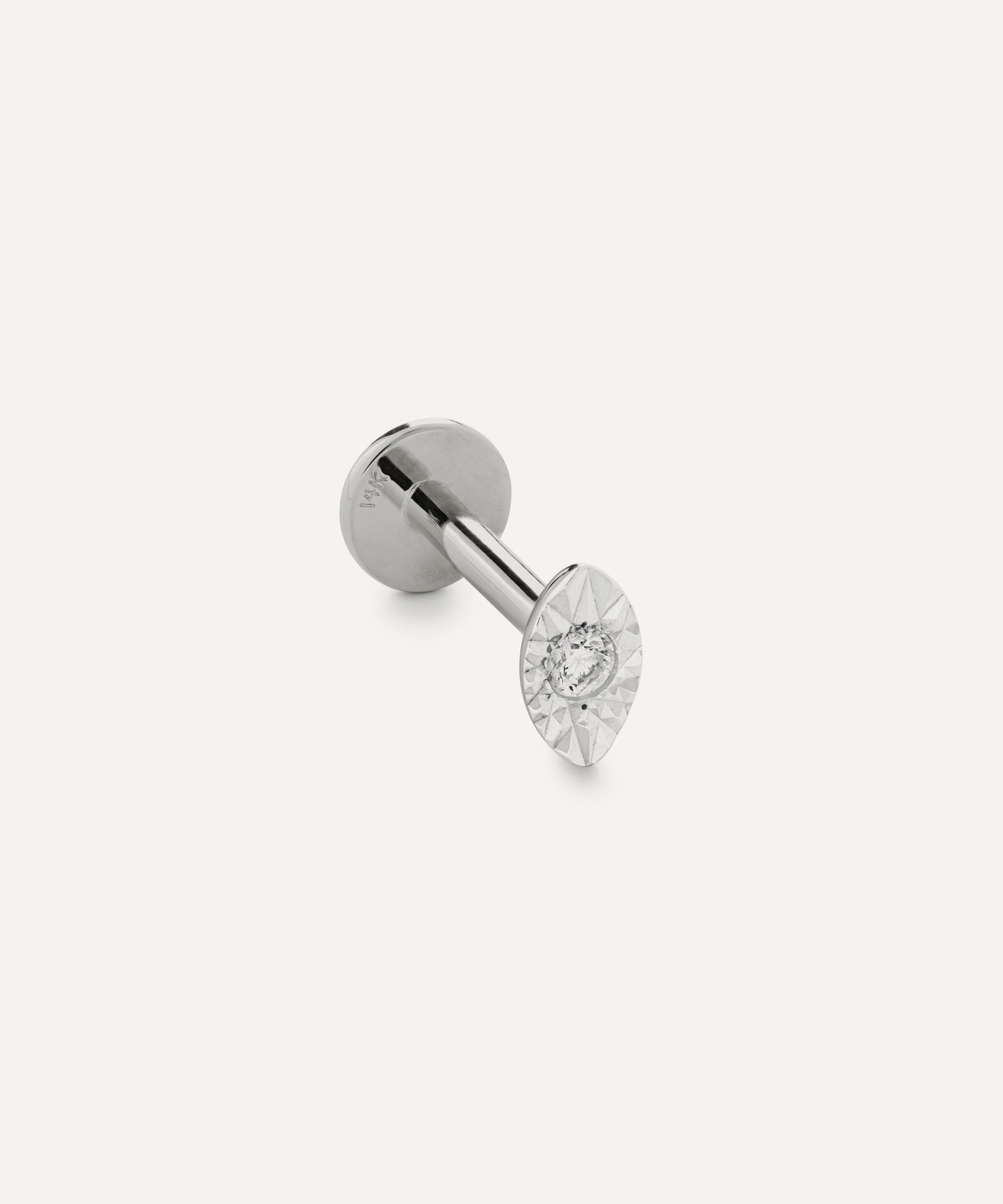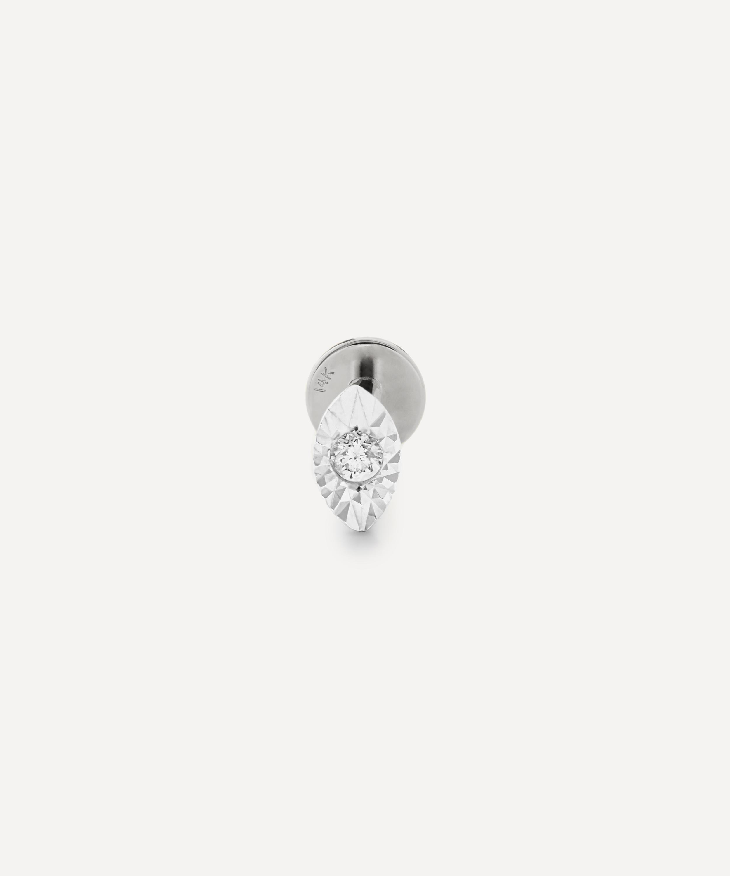 Crafted from 14 carat solid white gold, this timeless stud earring showcases a round brilliant-cut lab grown diamond in a marquise-inspired setting, and is complete with a flat back for ultimate comfort – mix and match with an array of other studs and hoops for your own unique curation.