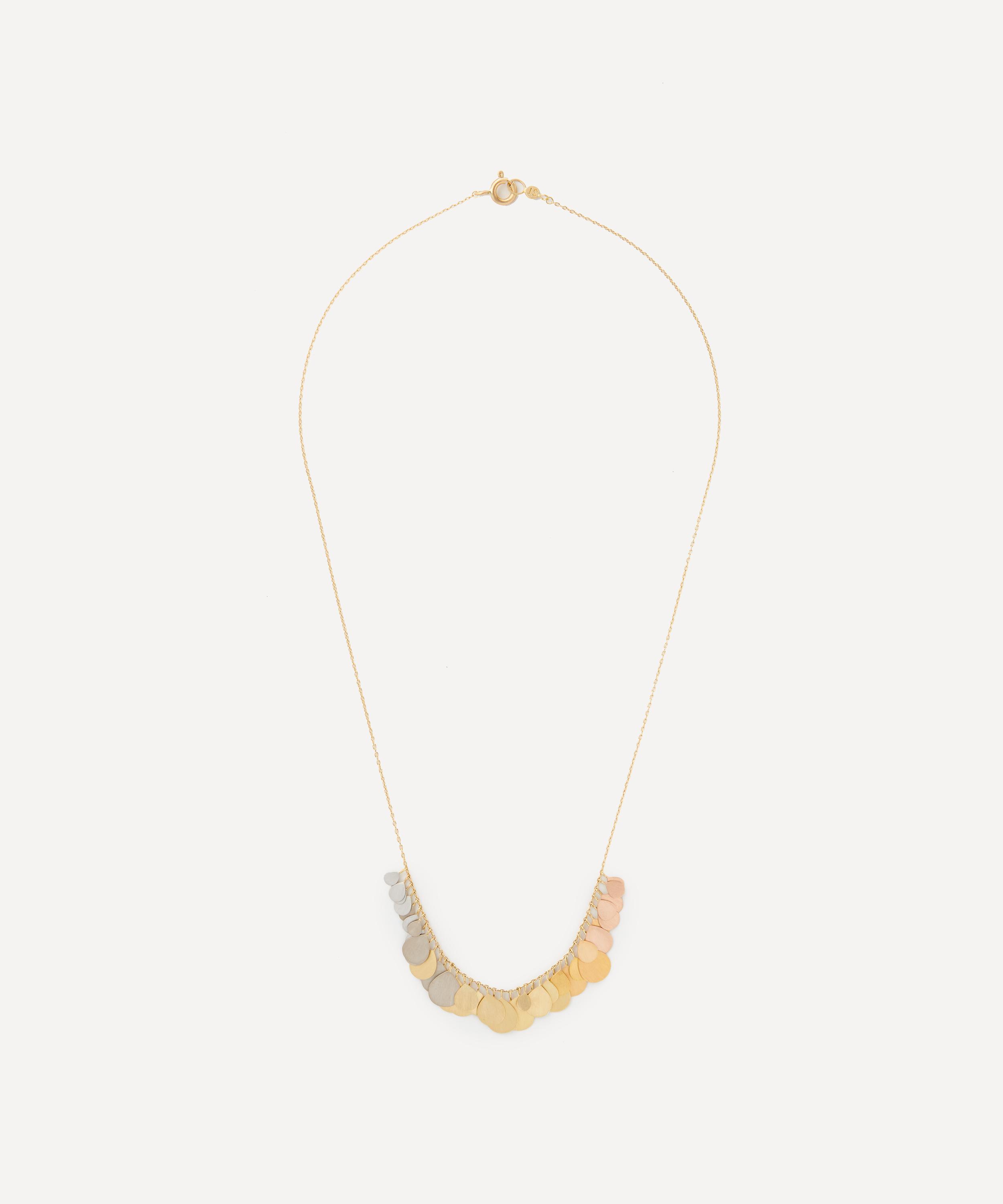 Showcasing the designer's skill for fine detail, the Rainbow Petals Arc necklace by Sia Taylor features her signature minimal aesthetic. Crafted from 18ct gold, it’s characterised by a delicate chain accented by an arc-shaped cluster of metal petals in a mix of gold, rose gold, and white gold. This fine piece makes the perfect keepsake, either worn alone or as part of an elaborate chain curation.