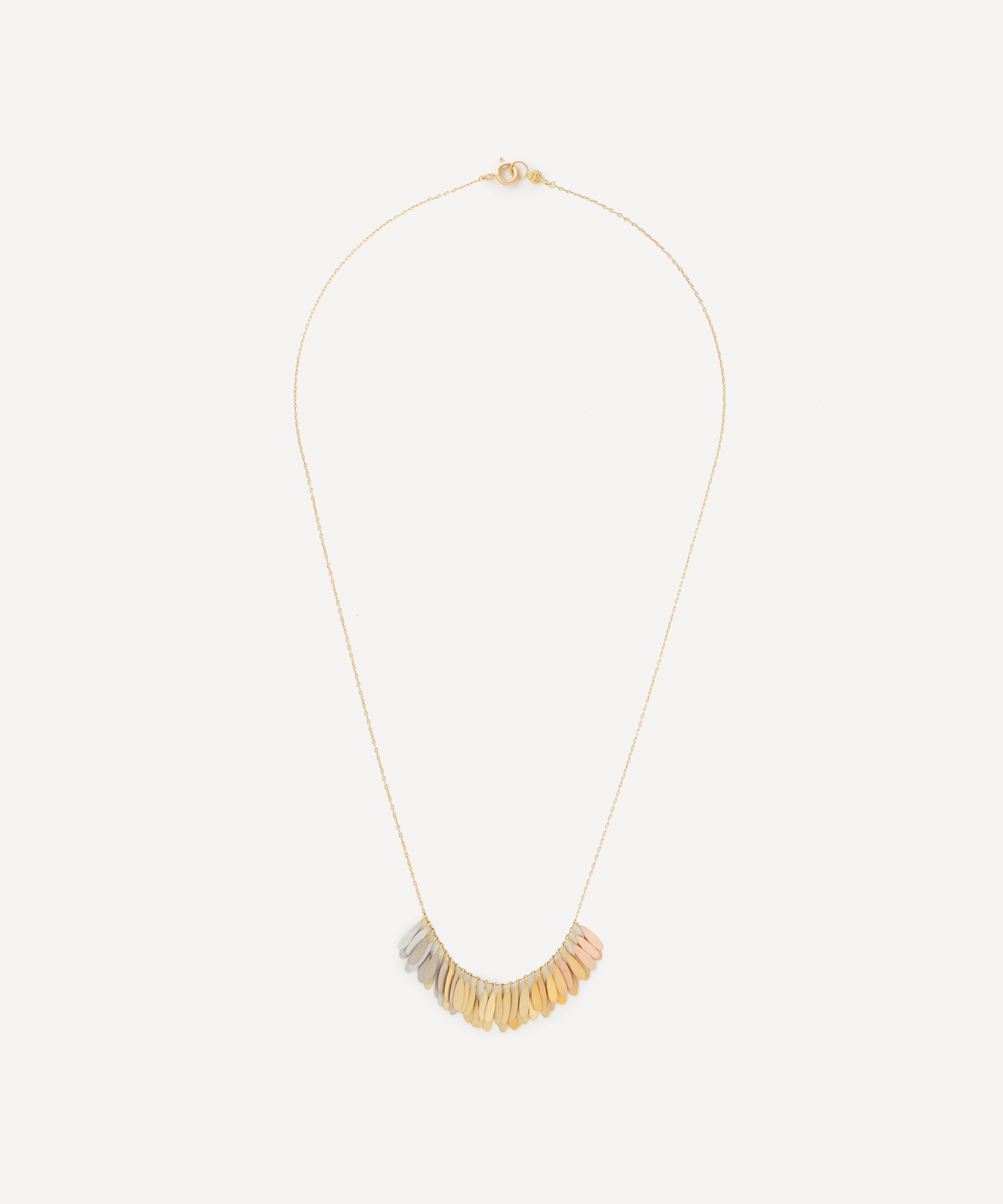 Showcasing the designer's skill for fine detail, the Rainbow Tiny Dandelion Arc necklace by Sia Taylor features her signature minimal aesthetic. Crafted from 18ct gold, it’s characterised by a double cluster of overlapping, golden petals in a mix of gold, rose gold, and white gold on a fine chain.
