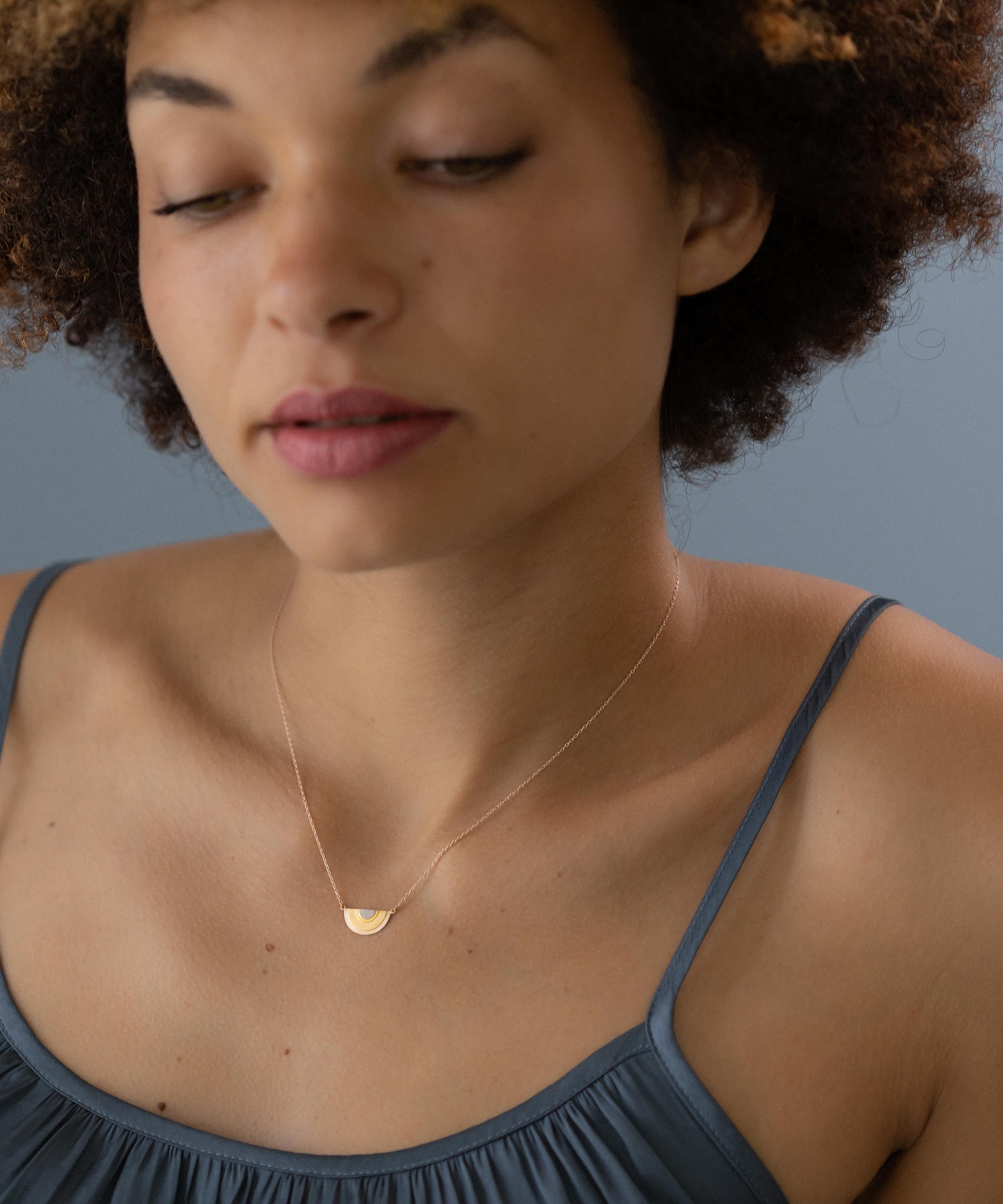 Showcasing the designer's artistic background, the Sun Halo pendant necklace by Sia Taylor is the perfect complement to any outfit, from off-duty weekend wear to glamorous evening ensembles.