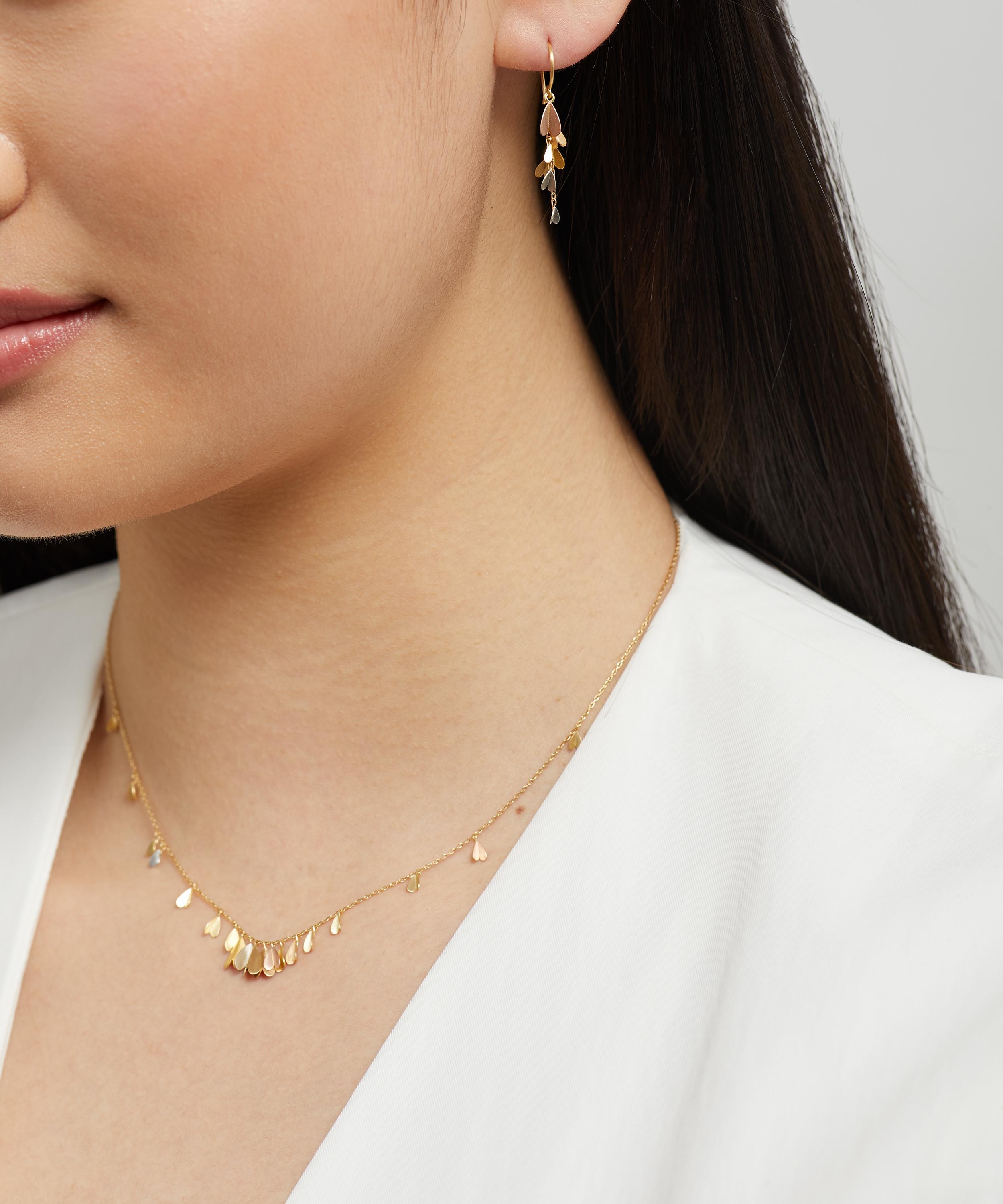 Showcasing the designer's skill for fine detail, the Tiny Rainbow Wings drop earrings by Sia Taylor feature her signature minimal aesthetic. Crafted from 18ct-24ct gold, each earring is characterised by a cluster of overlapping, wings in a mix of gold, rose gold, and white gold – offering a rainbow-like effect.