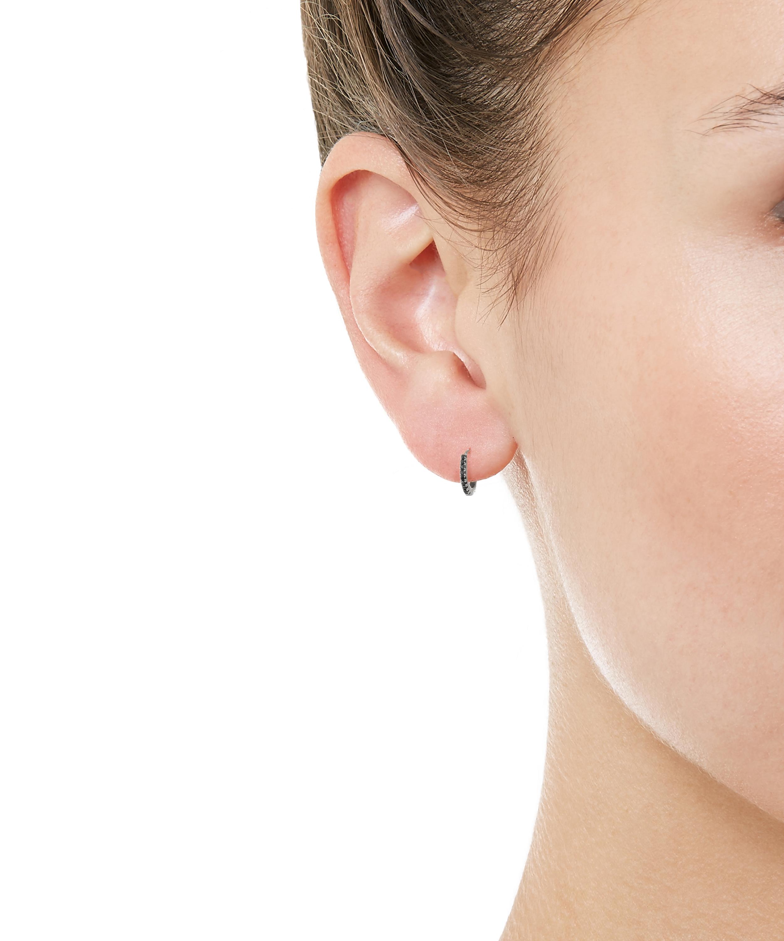 A dazzling take on the classic hoop earring, this black diamond-encrusted clicker ring from Maria Tash is a small, polished piece brimming with versatility.