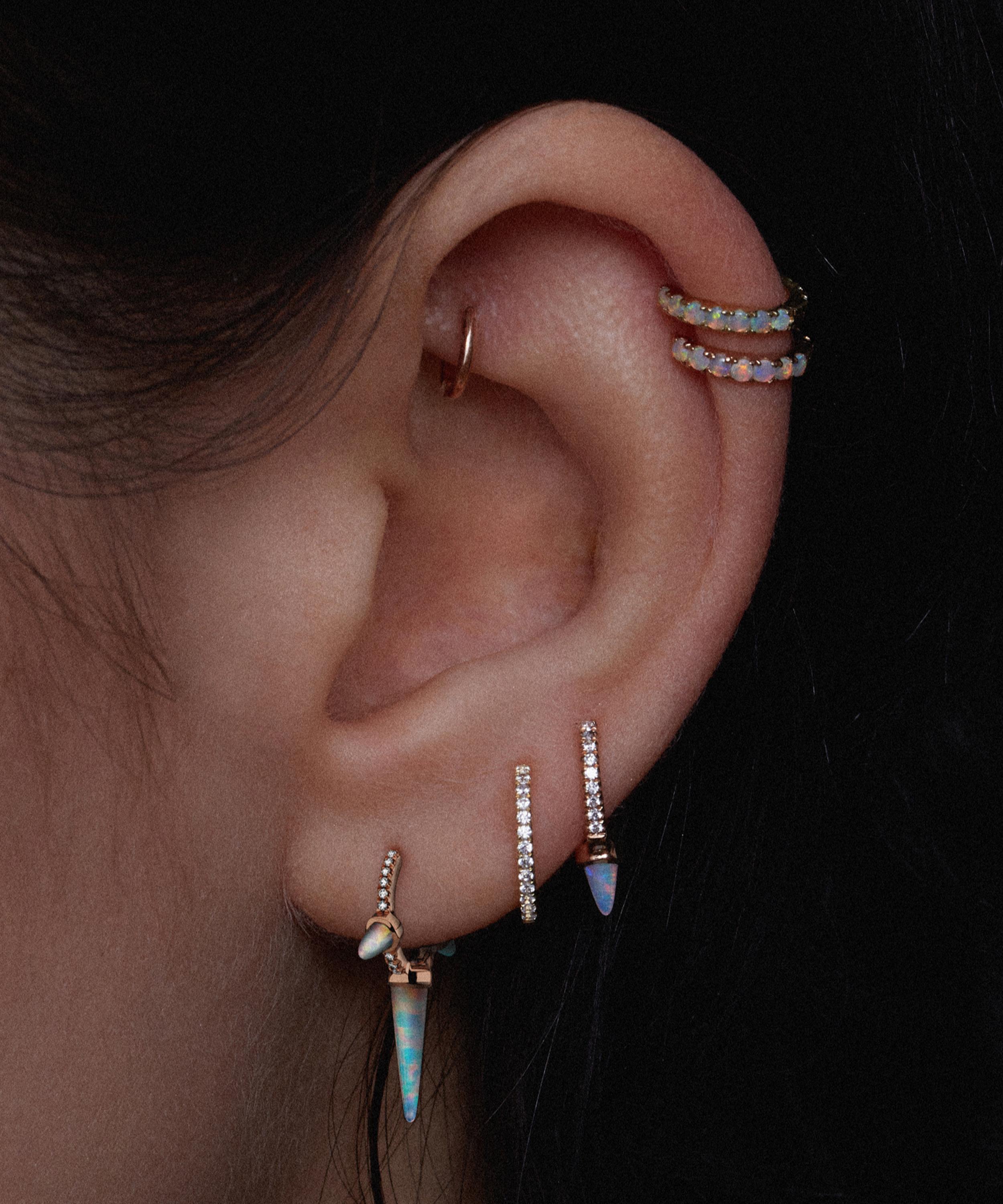18ct 6.5mm Triple Long Opal Spike Diamond Eternity Hoop Earring
