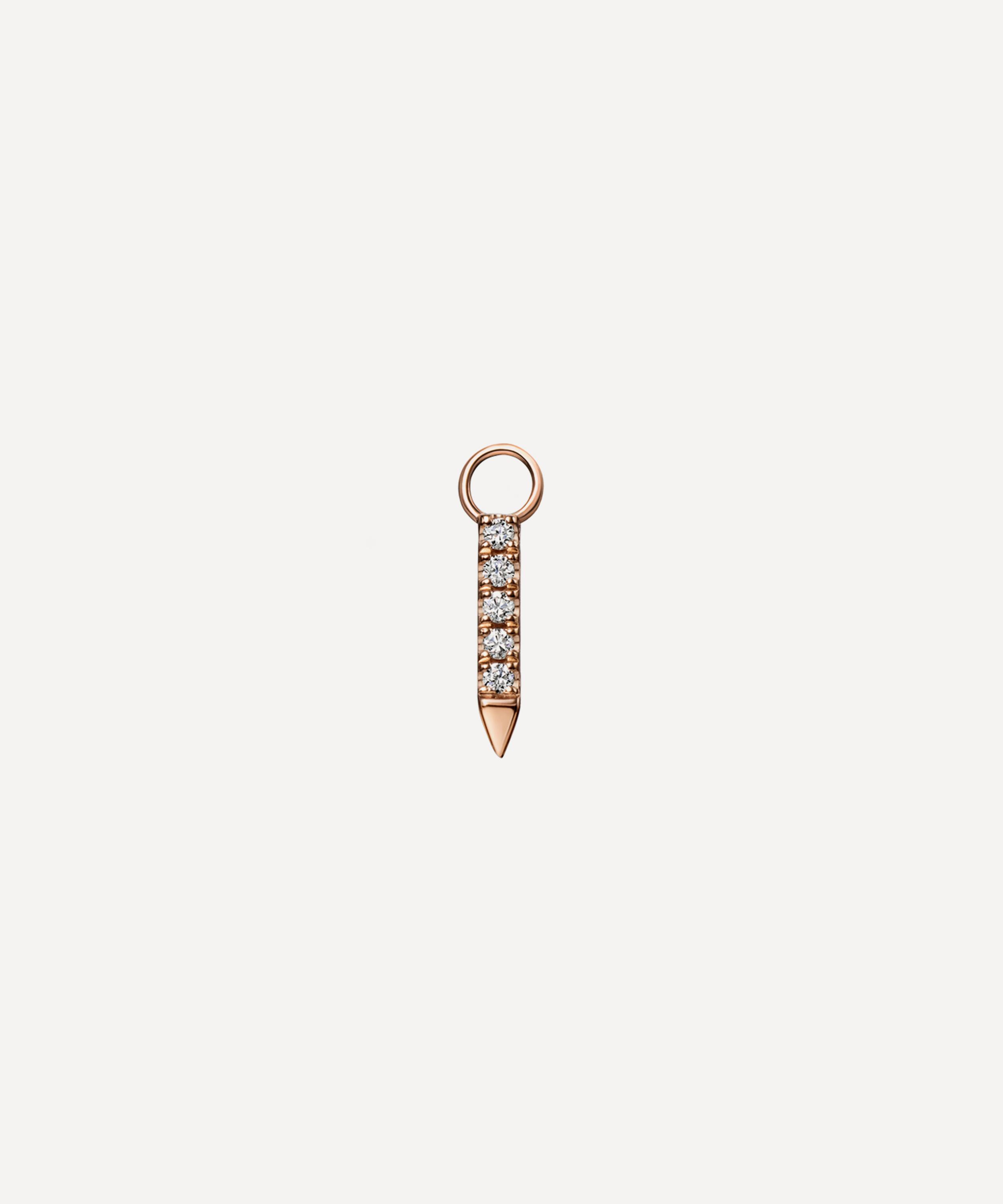 Crafted from high-polished 18 carat rose gold, this reversible earring charm features a short, pointed bar with five black diamonds and five white diamonds lining each side. Complete with a tiny top ring that can be attached at the front or back of the ear, it's perfect for transforming a classic hoop or simple stud into an elegant drop - try threading it onto a tragus, rook or helix earring for a subtly alternative finish.