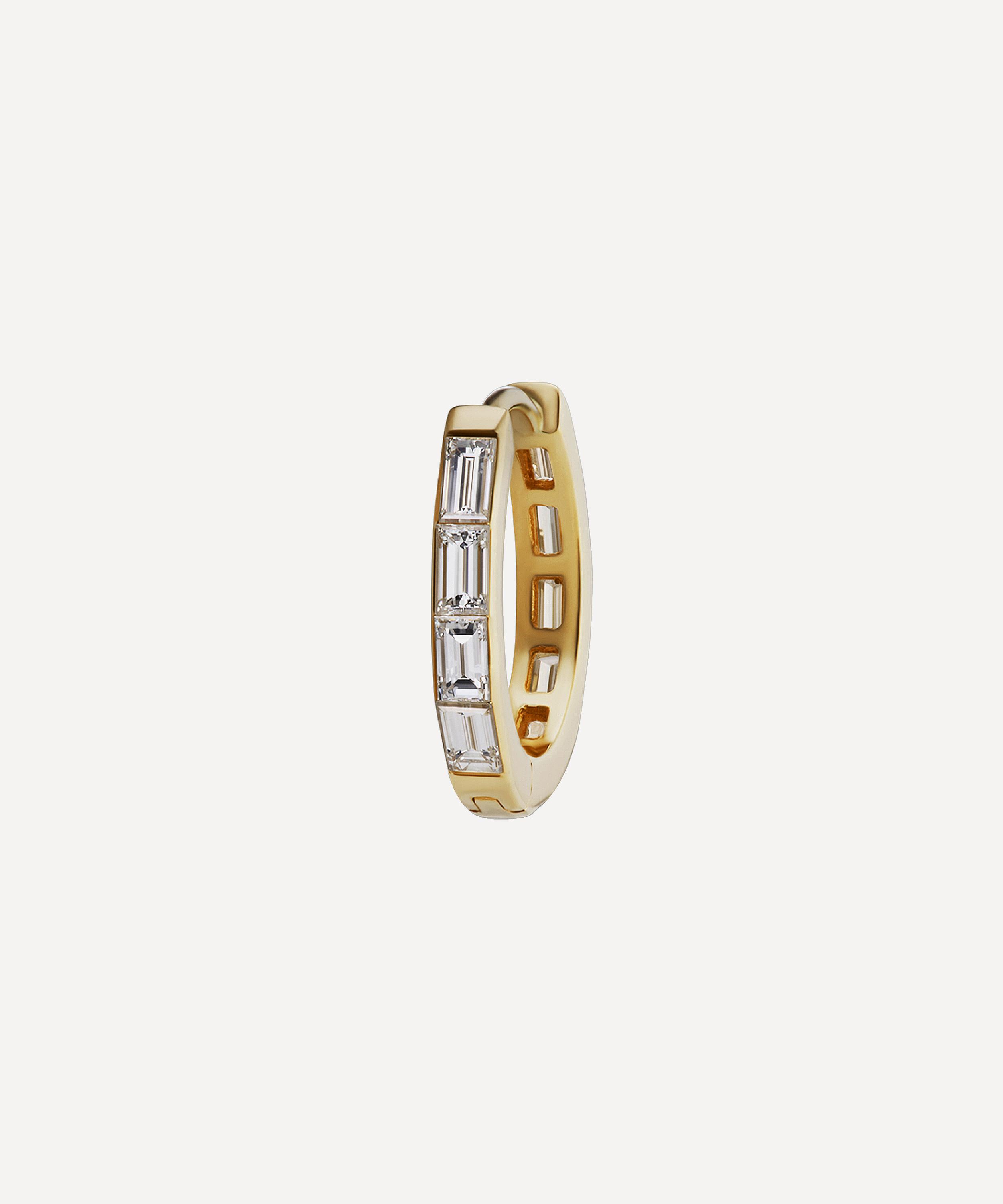 A sleek update on a signature Maria Tash design, this baguette diamond hoop earring is perfect for stacking or styling alone.