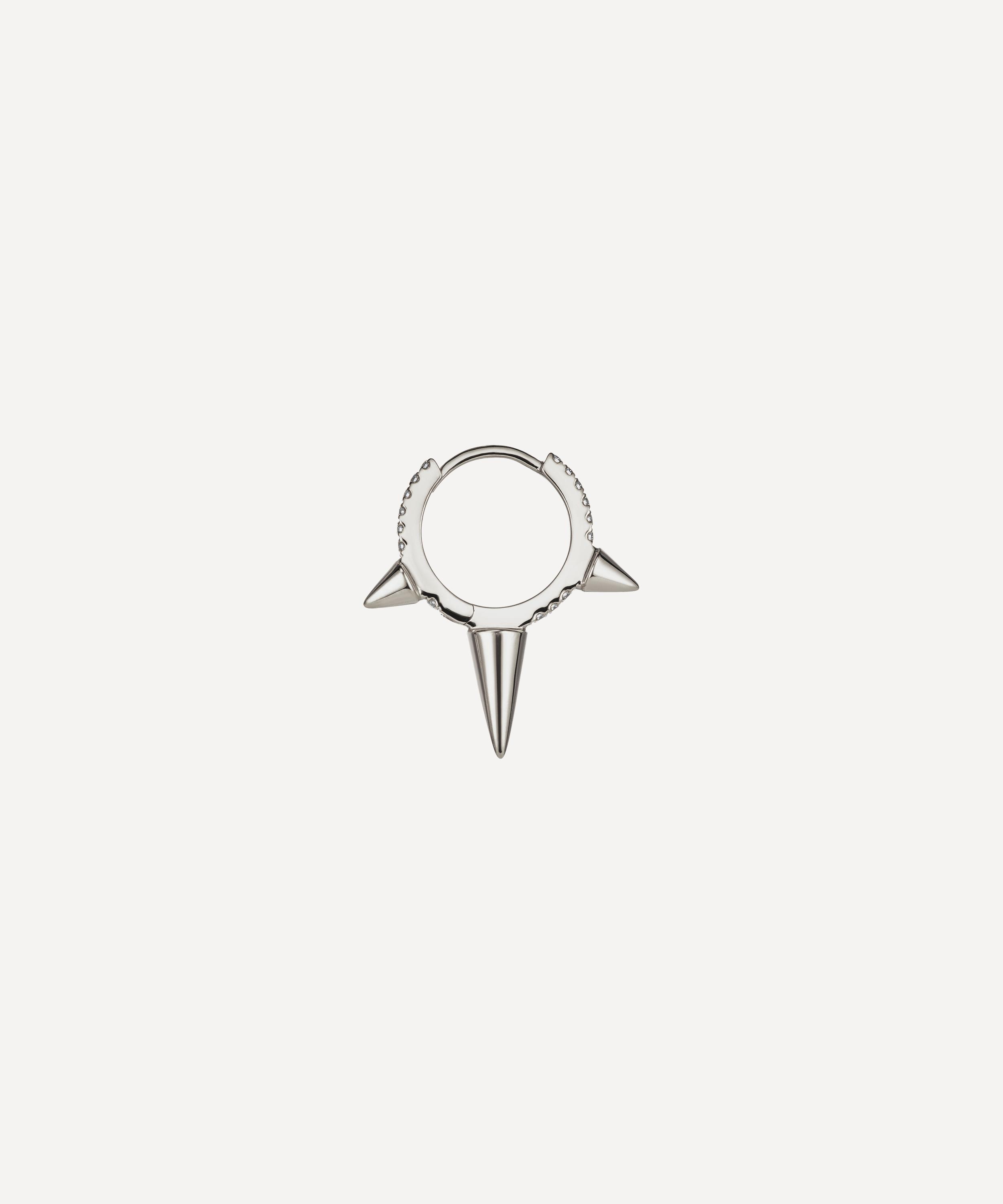 An elegant fusion of two signature Maria Tash designs, this diamond eternity hoop earring is adorned with three pointed spikes.