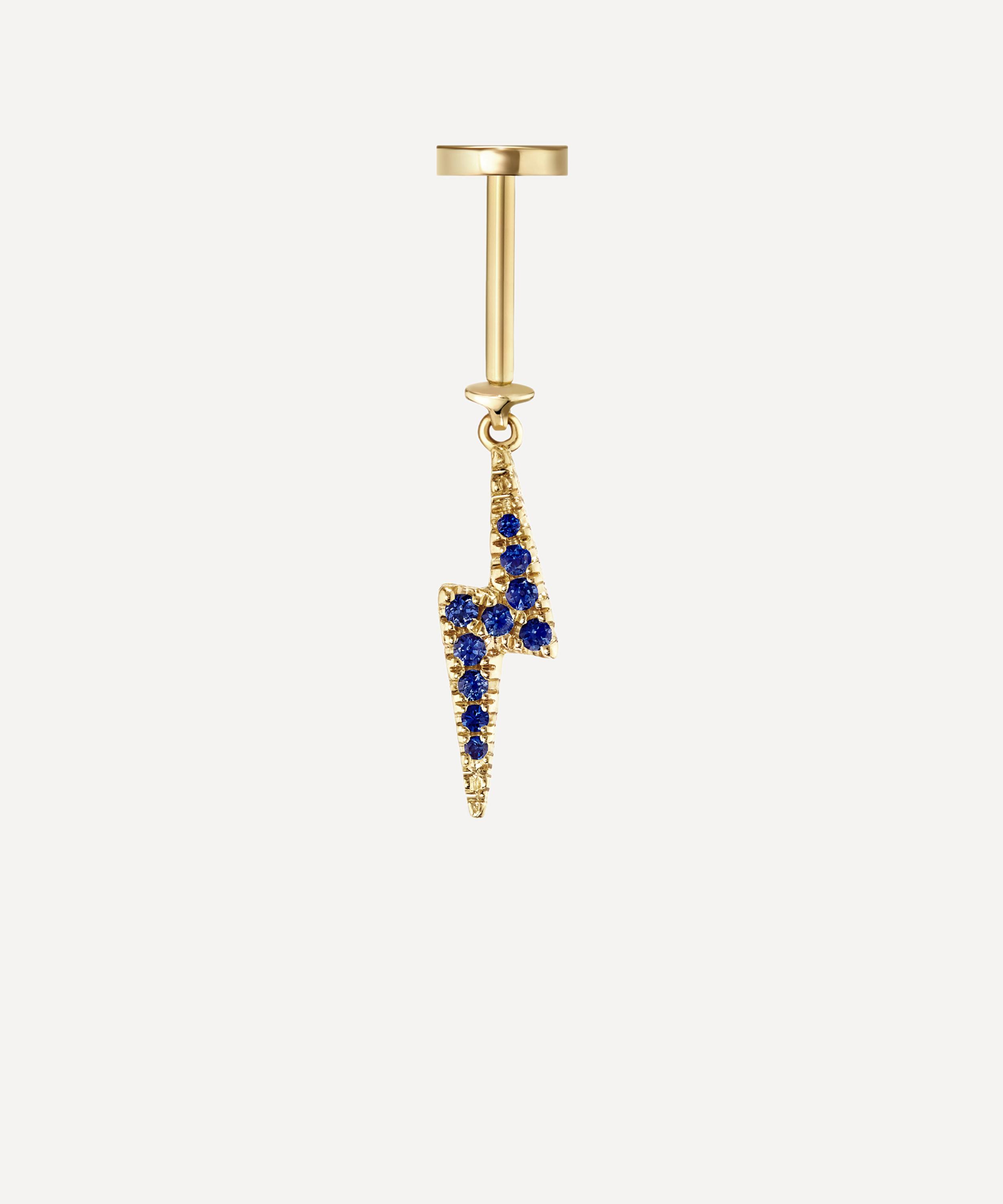 Add a dynamic finish to any ear curation with this diamond and blue sapphire lightning bolt charm stud earring from Maria Tash.