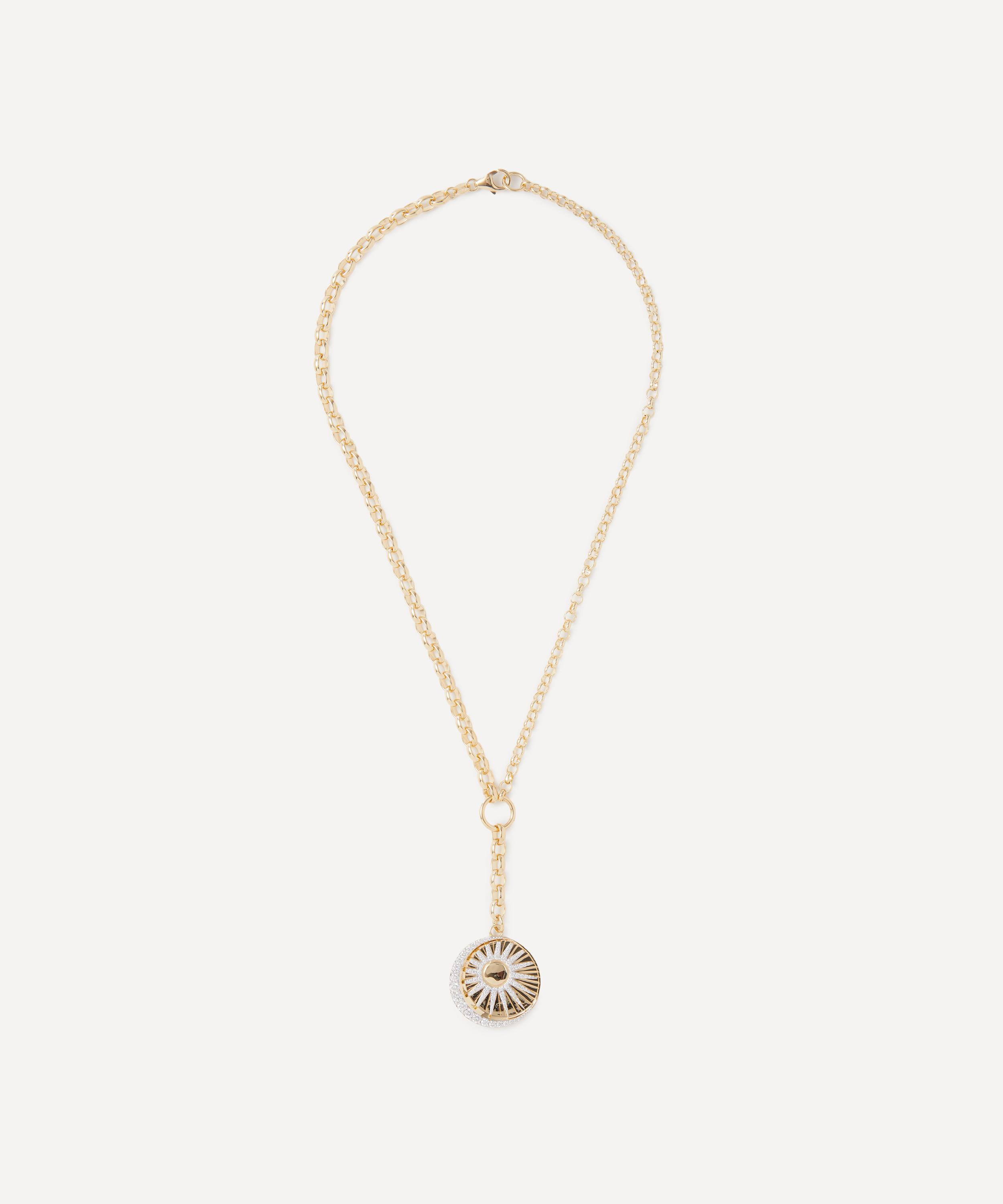 Handcrafted from 18ct gold, it’s fashioned into a mixed belcher chain and a yin and yang style medallion, composed of a diamond set crescent moon embracing a diamond set sun motif – a representation of balance, and the duality or opposite but complimentary forces. Designed to inspire a journey of self-discovery and expression, this modern heirloom can be worn alone or layered with other necklaces.