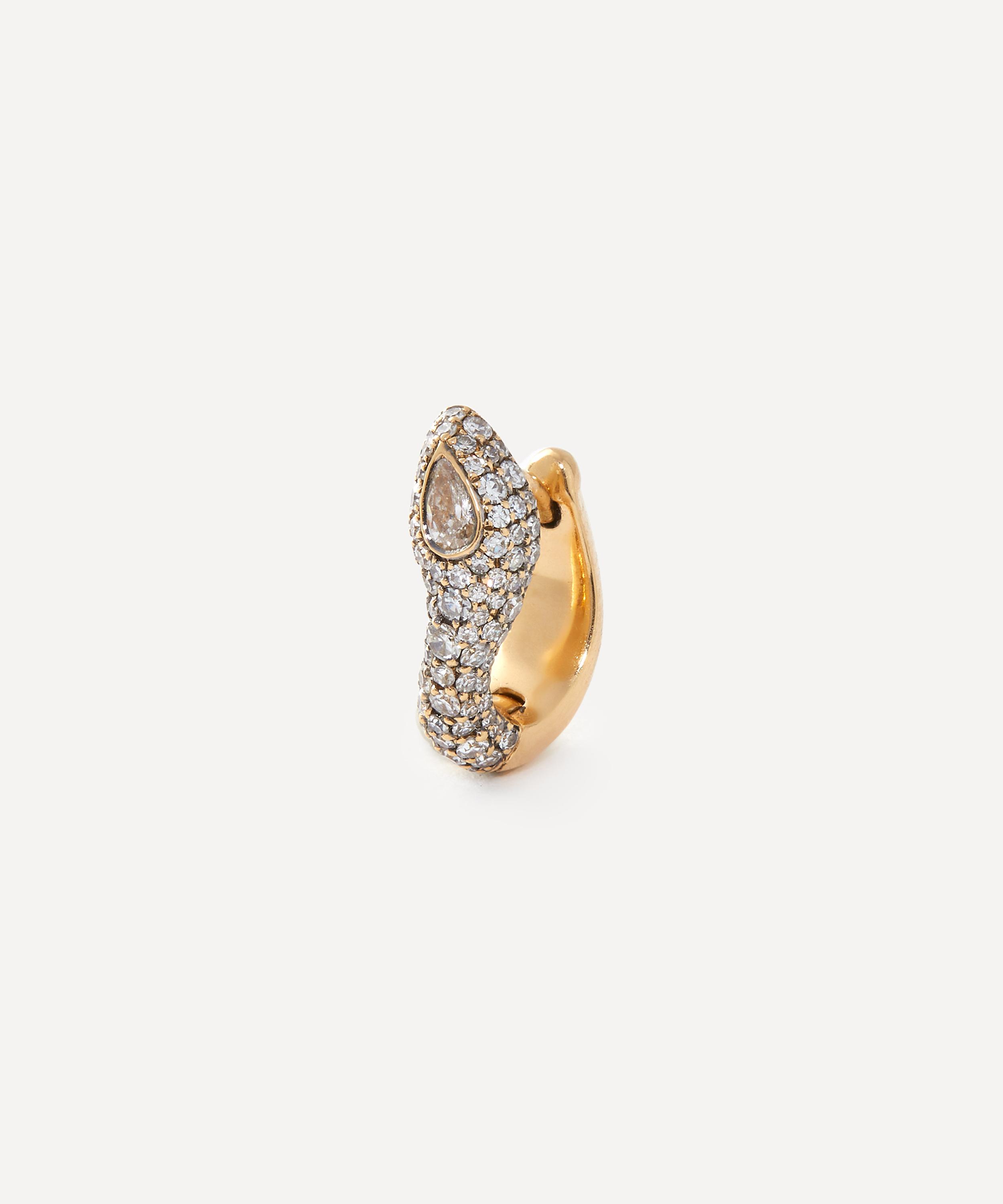 18ct Gold Basilisk Diamond Huggie Hoop Earring Left