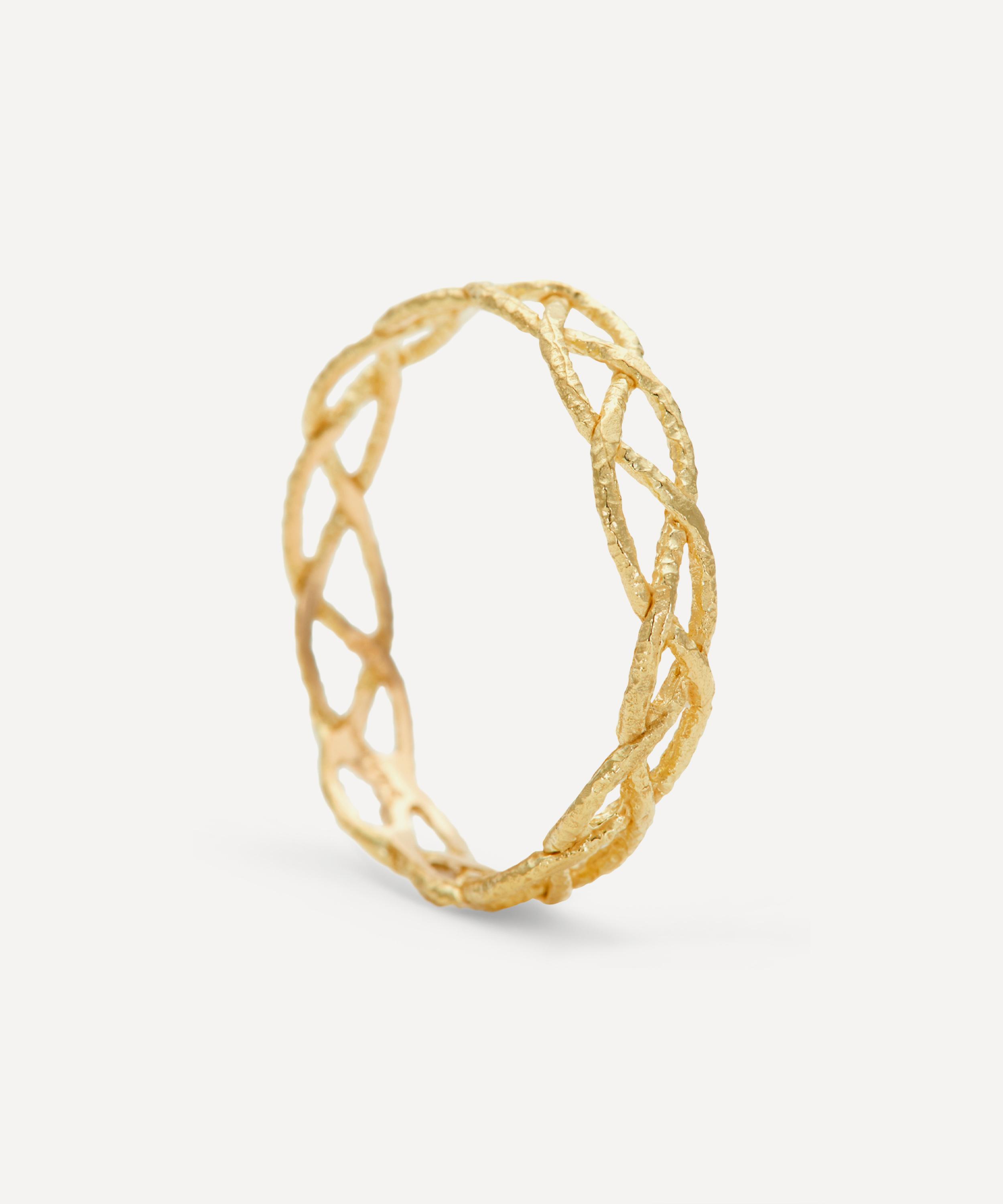 Crafted from solid 18ct gold, it features a softy braided silhouette of interwoven tendrils to symbolise an eternal bond and the circle of life. Exemplifying the designer’s truly timeless approach to everyday jewellery, it can be styled on its own or stacked with additional bands and gem encrusted rings for a combination that caters to your personal style.