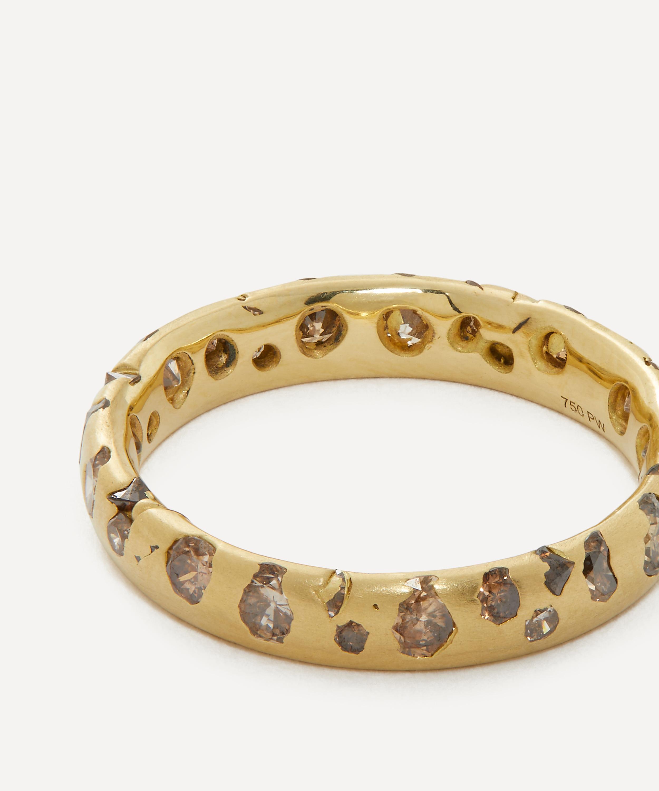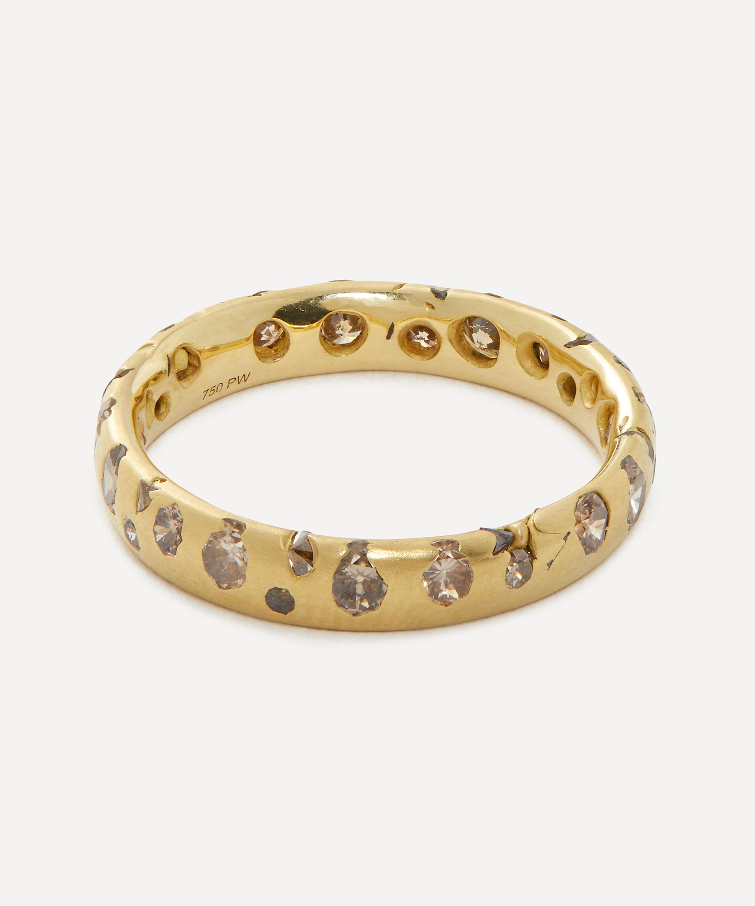 Epitomising the British designer's signature tough-luxe aesthetic, the Cognac Confetti ring by Polly Wales adds a fun touch to your edit. This ring features a slim band encrusted with a glittering assortment of multi-coloured sapphires and tiny white diamonds - all jumbled together like confetti. Try stacking several contrasting Confetti rings together for a kaleidoscopic evening curation.