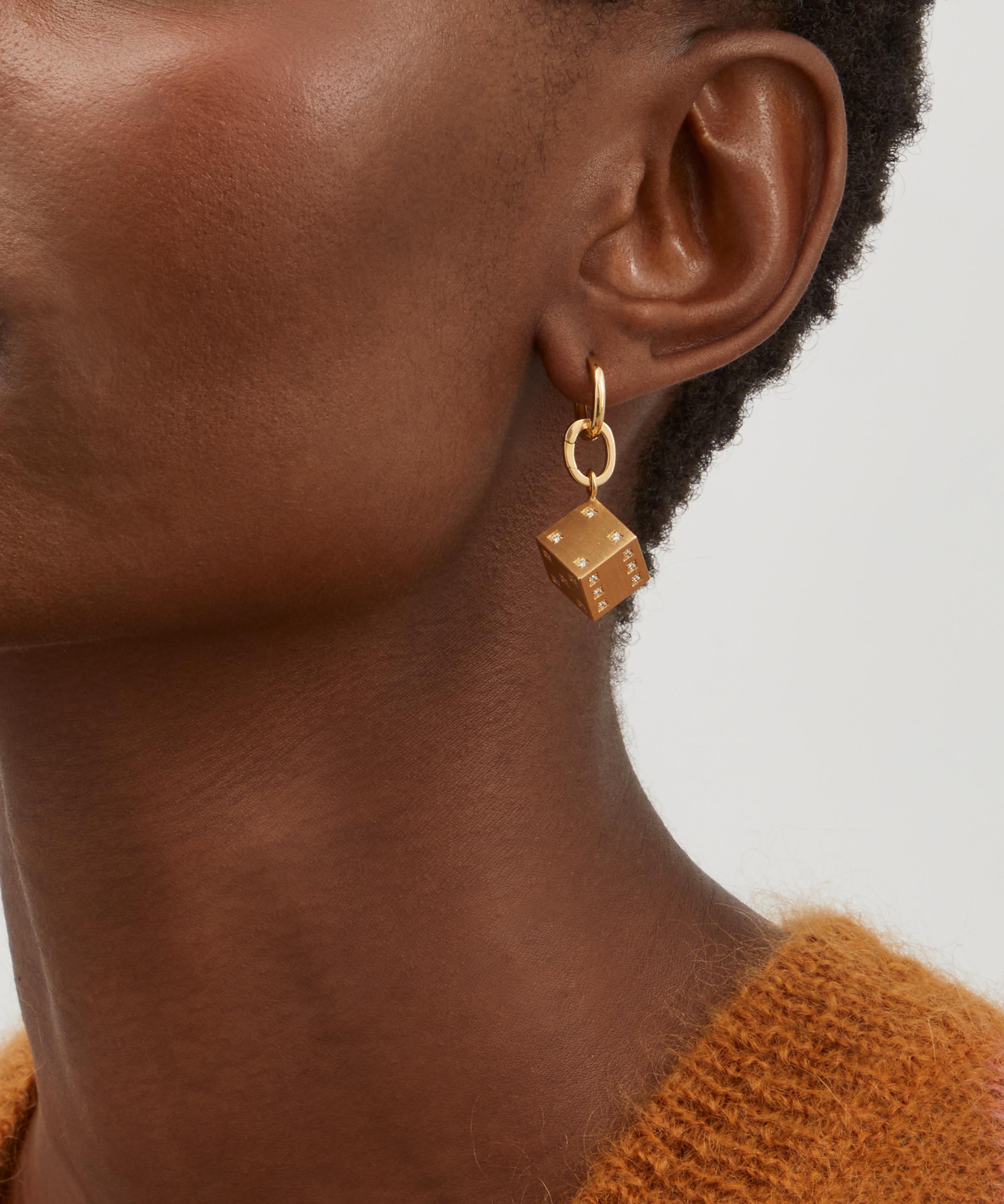 Adorn a plain necklace or hoop with this intricate diamond charm from Marie Lichtenberg. Crafted from 18ct gold, it features a stylised dice design in a brushed finish set with white diamonds. Complete with a bail clasp, it will effortlessly brighten up any jewellery edit with its playful spirit.