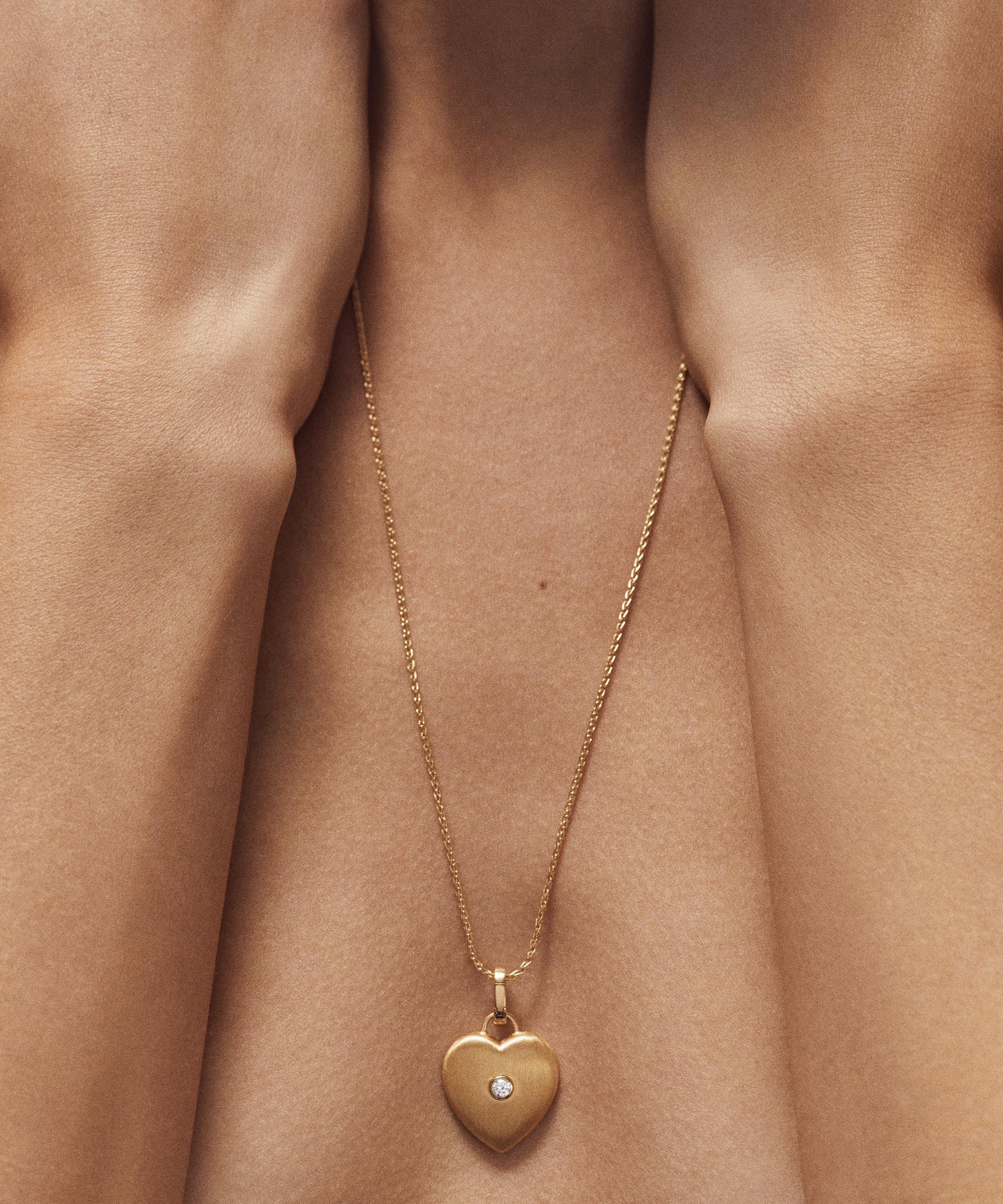 Adorn a plain necklace or hoop with this intricate charm from Marie Lichtenberg. Crafted from brushed 18ct gold, it features a heart adorned with a single white diamond. Complete with a bail clasp, it will effortlessly brighten up any jewellery edit with its playful spirit.