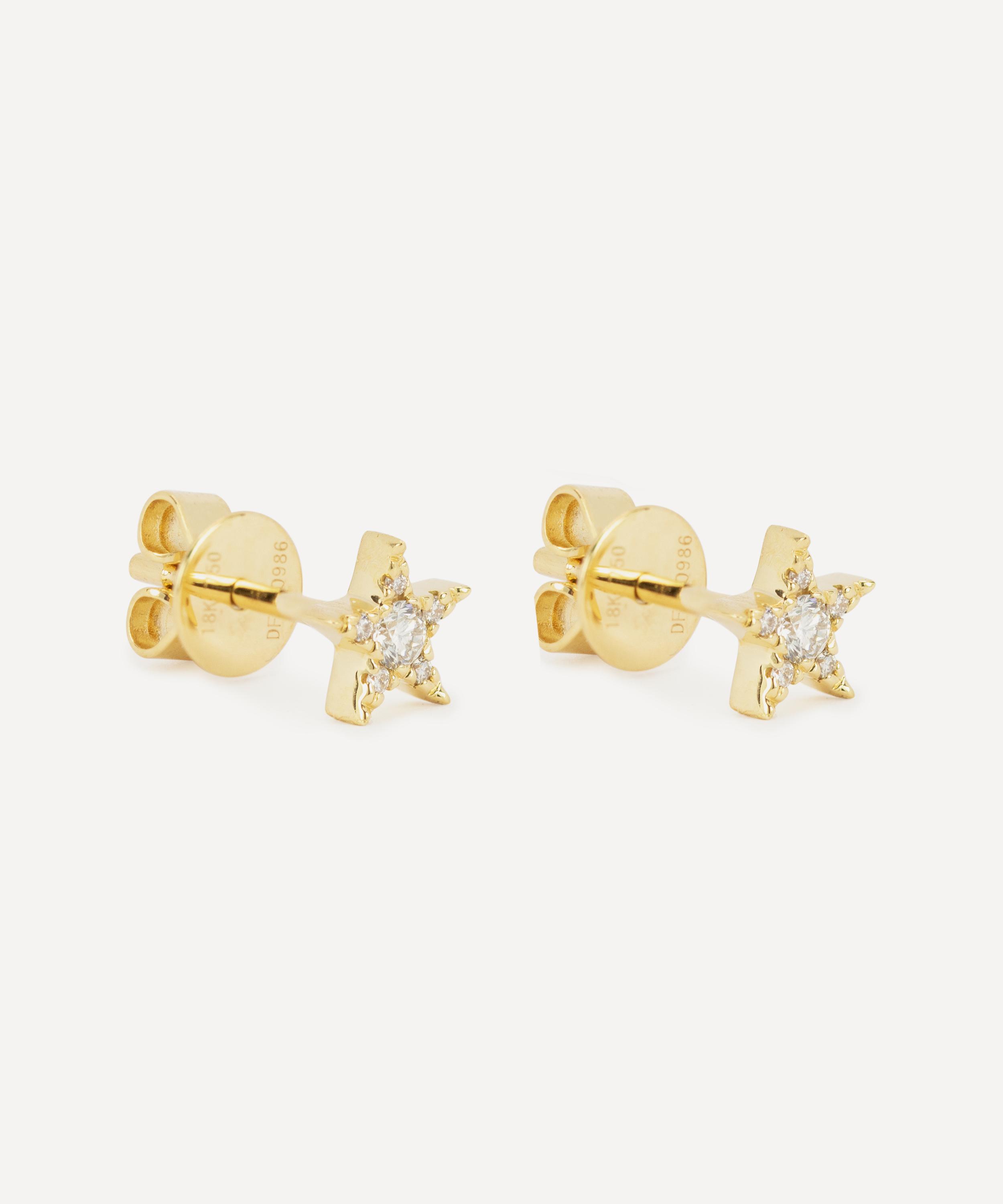Boasting the perfect everyday staple, these diamond stud earrings from antique purveyor Kojis style beautifully on their own. Crafted in 18ct gold, each earring is characterised by a star-shaped stud adorned with a round, brilliant-cut diamond at the centre, surrounded by one diamond in each point of the star.