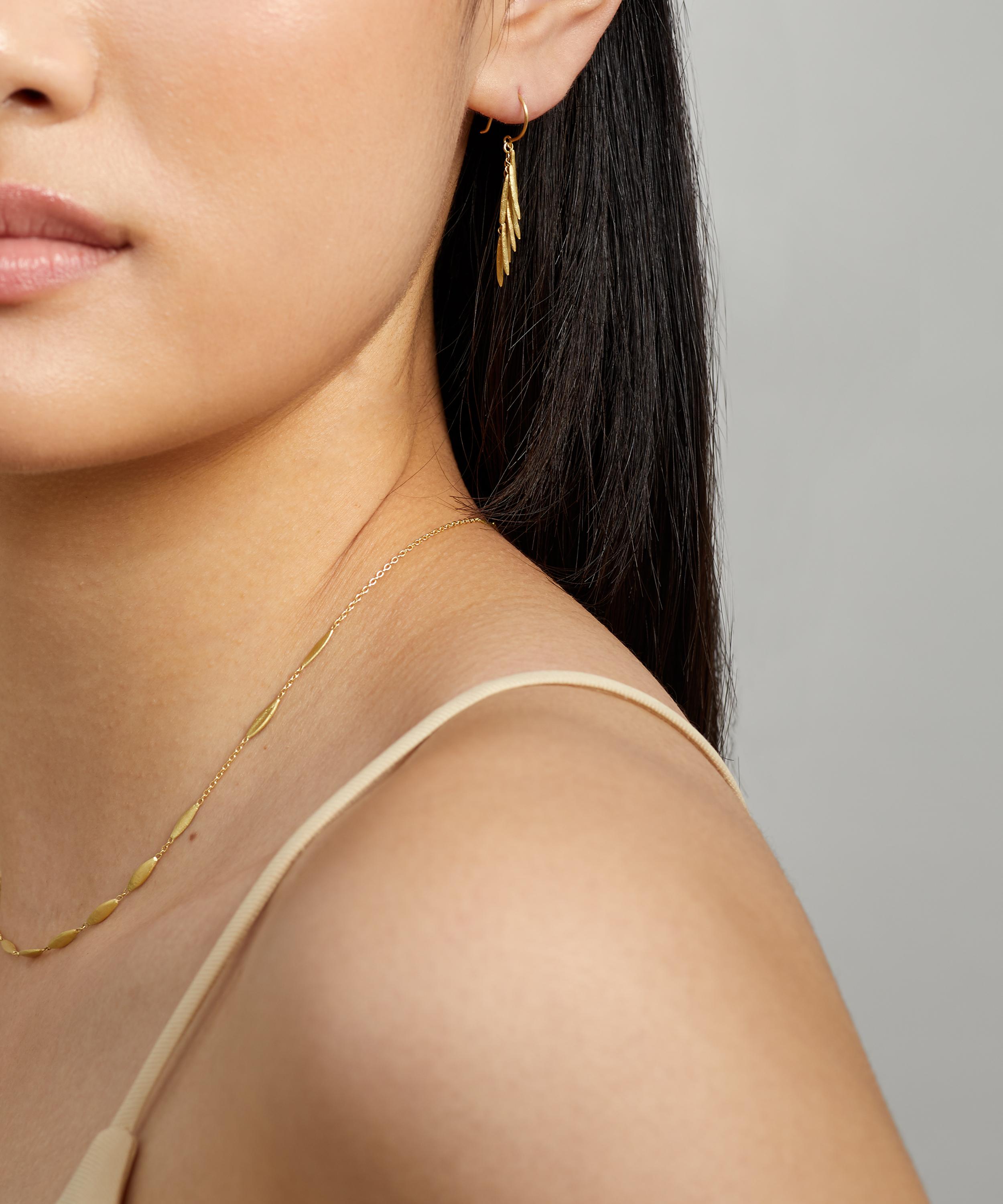 Showcasing the designer’s skill for fine detail, the Grass Seeds drop earrings by Sia Taylor boast the perfect everyday piece. Crafted from 18ct gold, they feature small golden seeds hanging from a fine chain. Style them with the matching bracelet and necklace, or pair with additional piercings and a pendant necklace from your own collection.