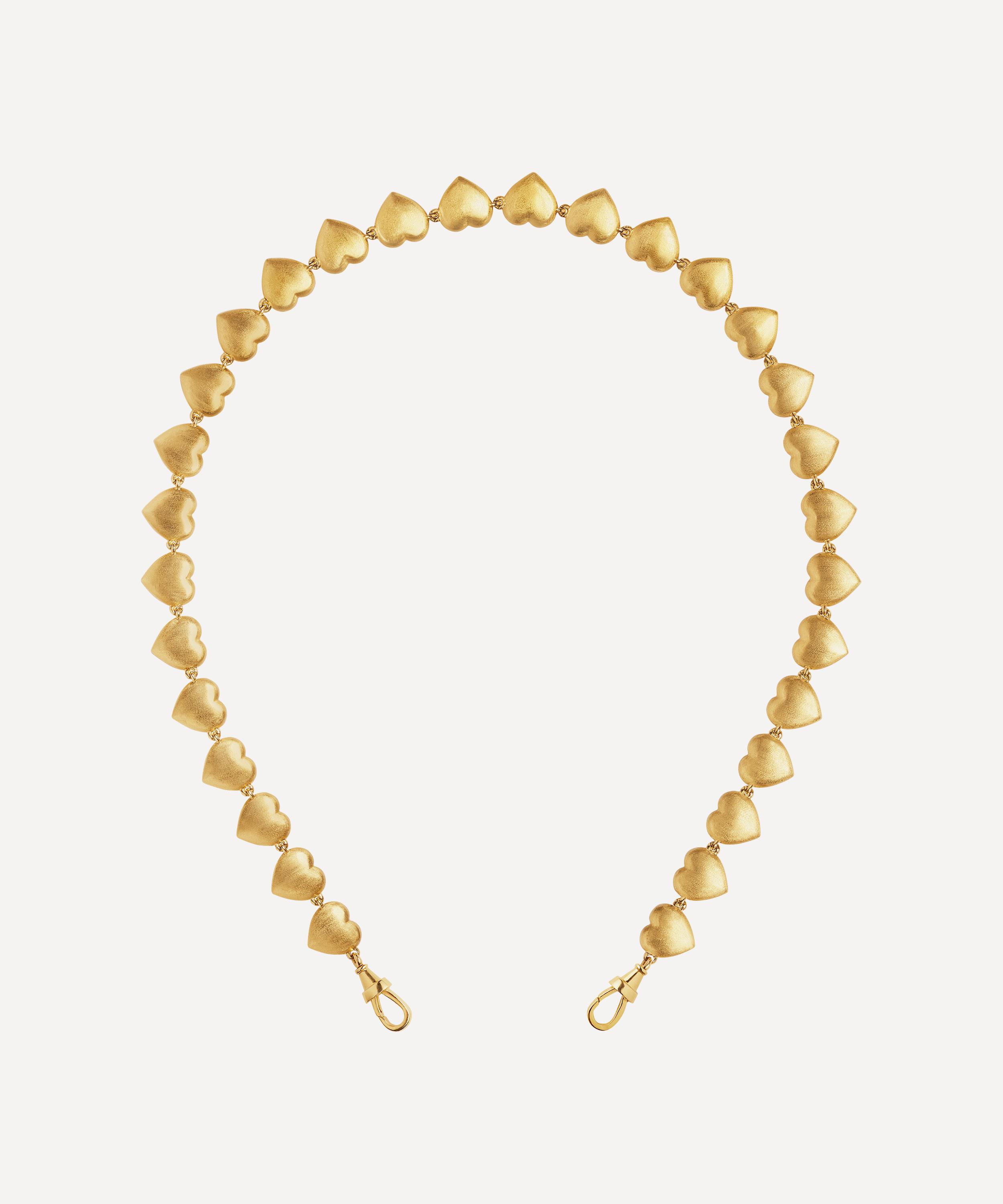 Inspired by 18th century jewellery, this necklace from Marie Lichtenberg evokes centuries of history, tradition, and culture. Crafted from 18ct gold, it features a unique heart-shaped chain in the brand’s signature coco finish. Complete with a handcuff finish at each end to be embellished with a pendant of your choice, it makes for the perfect stand-out piece in your jewellery line-up.