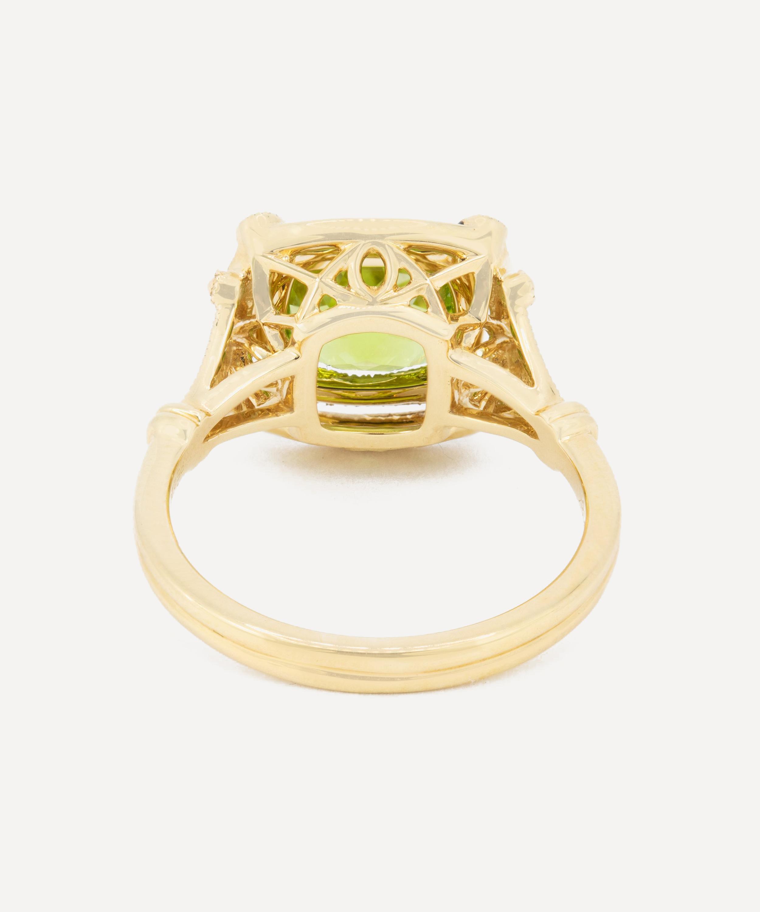 This gold ring from antique purveyor Kojis is set with an iridescent peridot crystal of approximately 2.07ct and 0.09ct diamonds.