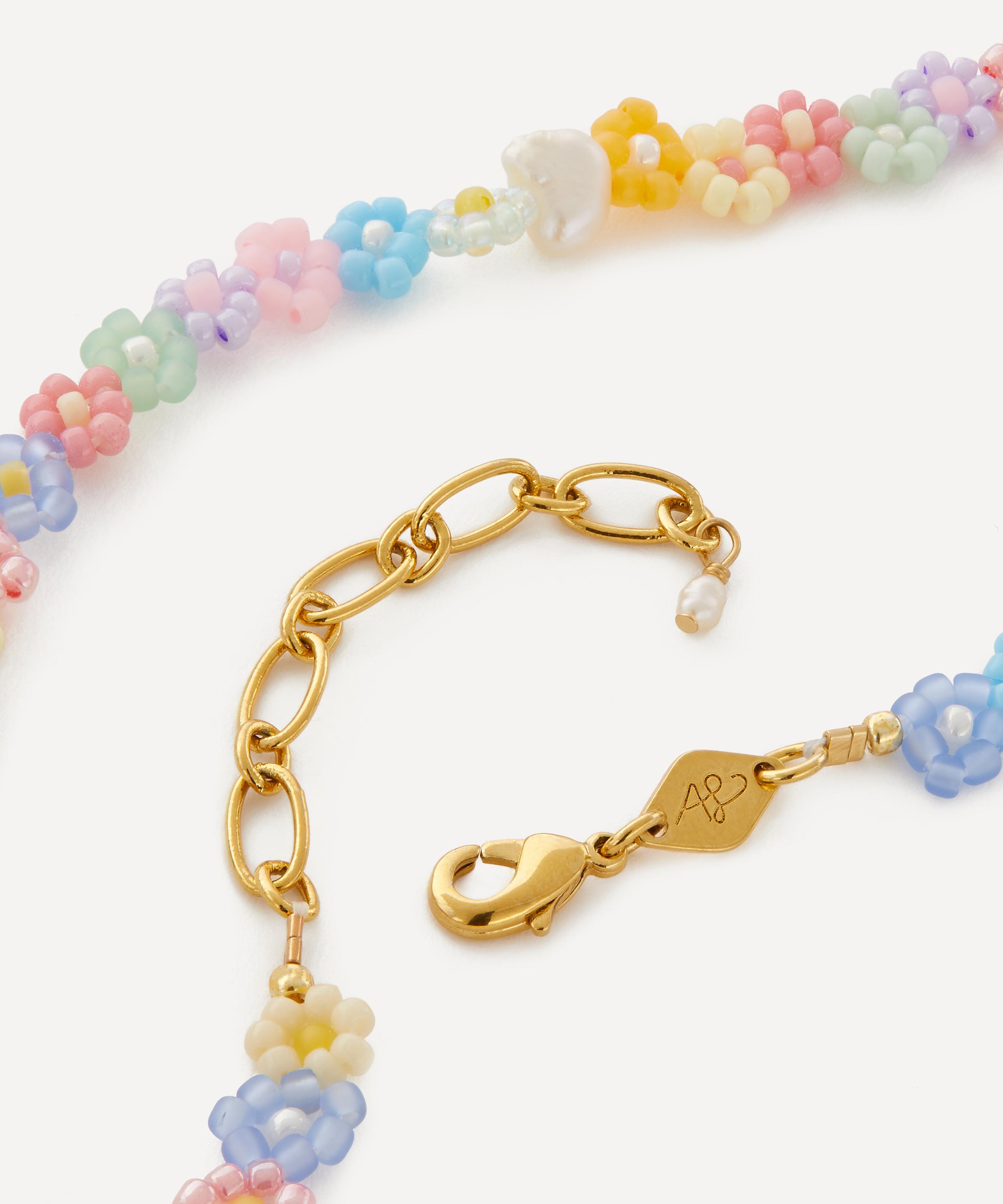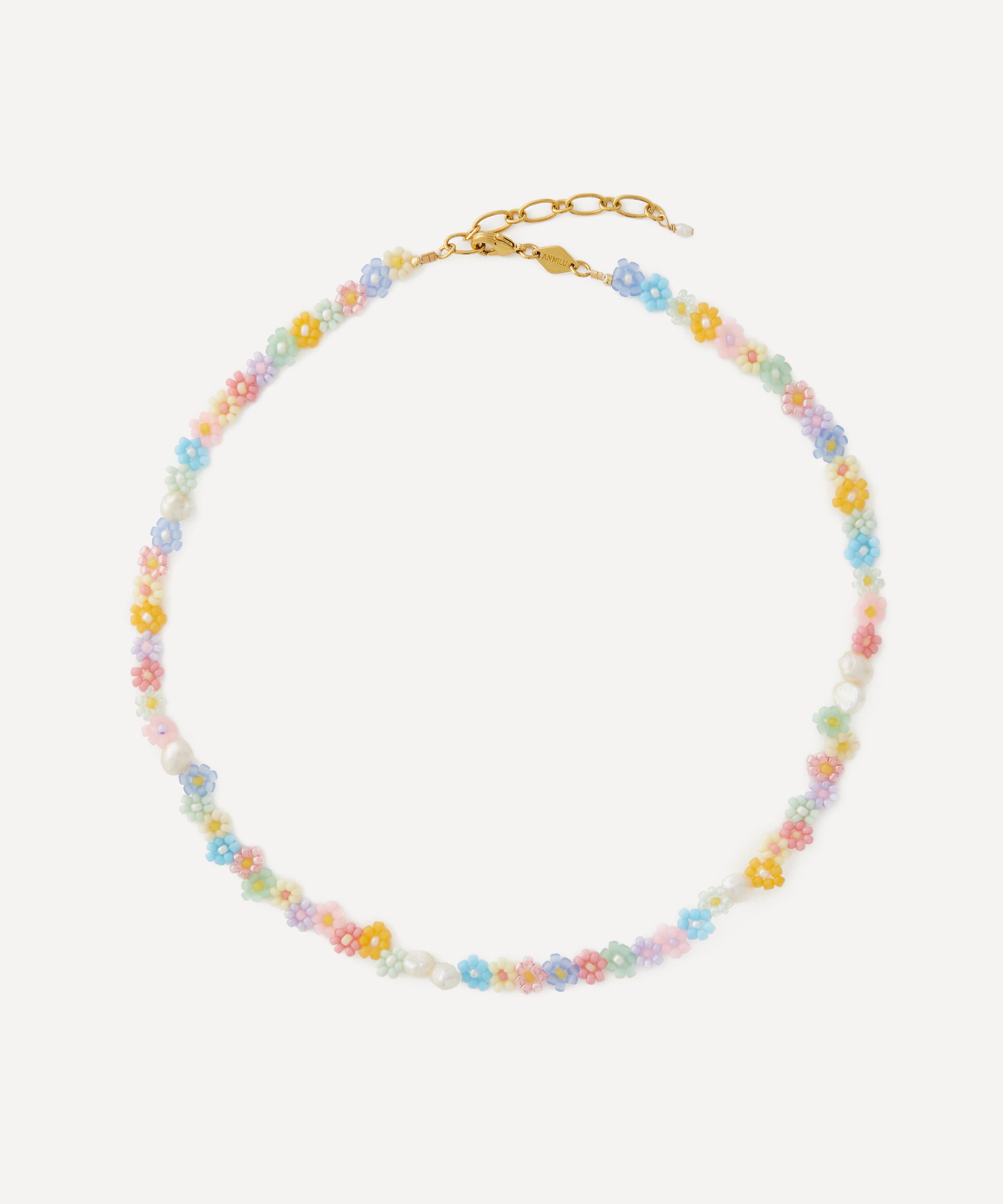 Add a touch of boho glamour to your look with the Fleur bead necklace from Anni Lu. Handcrafted from 18ct gold-plated brass, it features a string of opulent freshwater pearls and delightful beaded flowers made using the traditional Mexican Huichol technique. Style it solo or stacked.