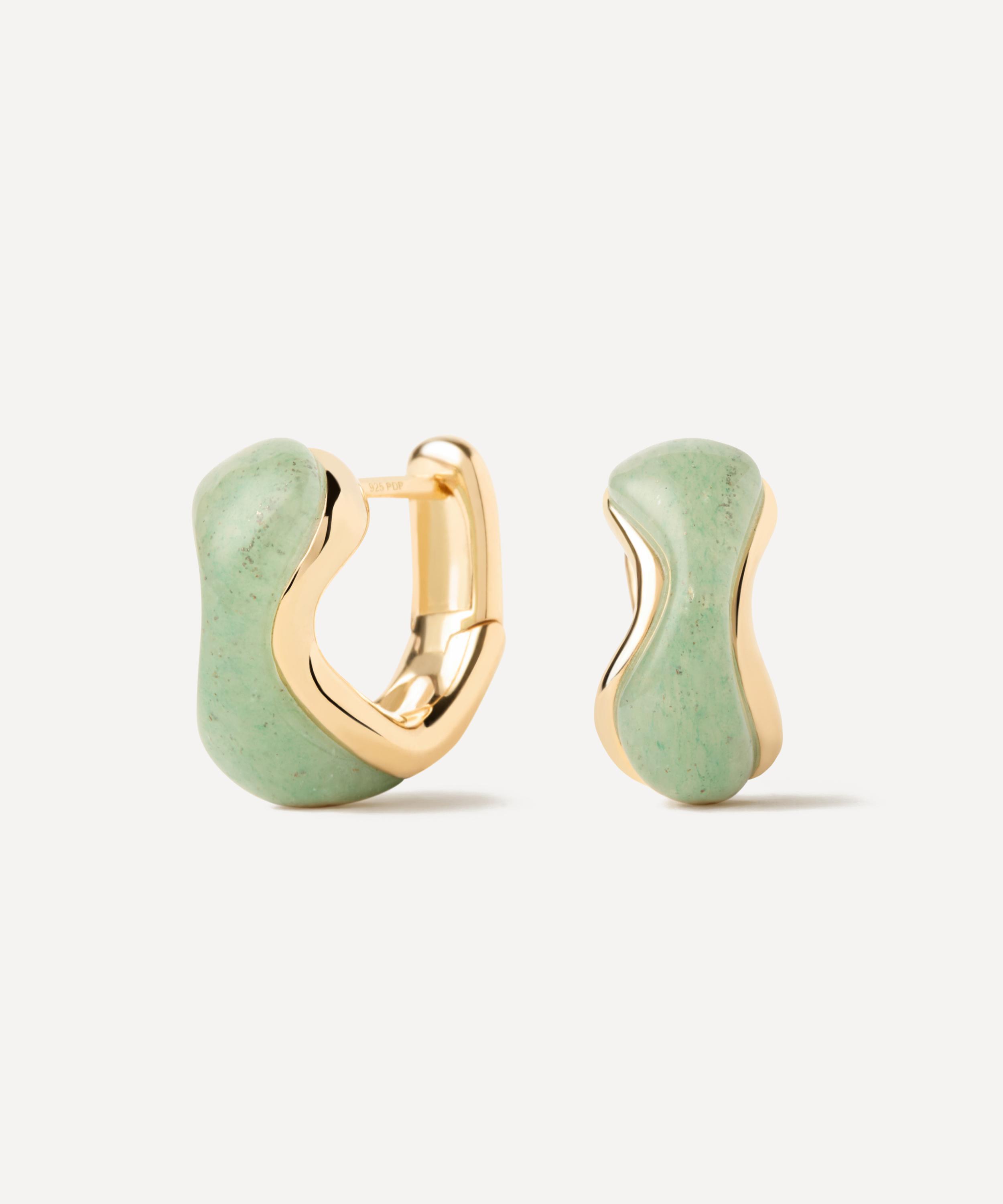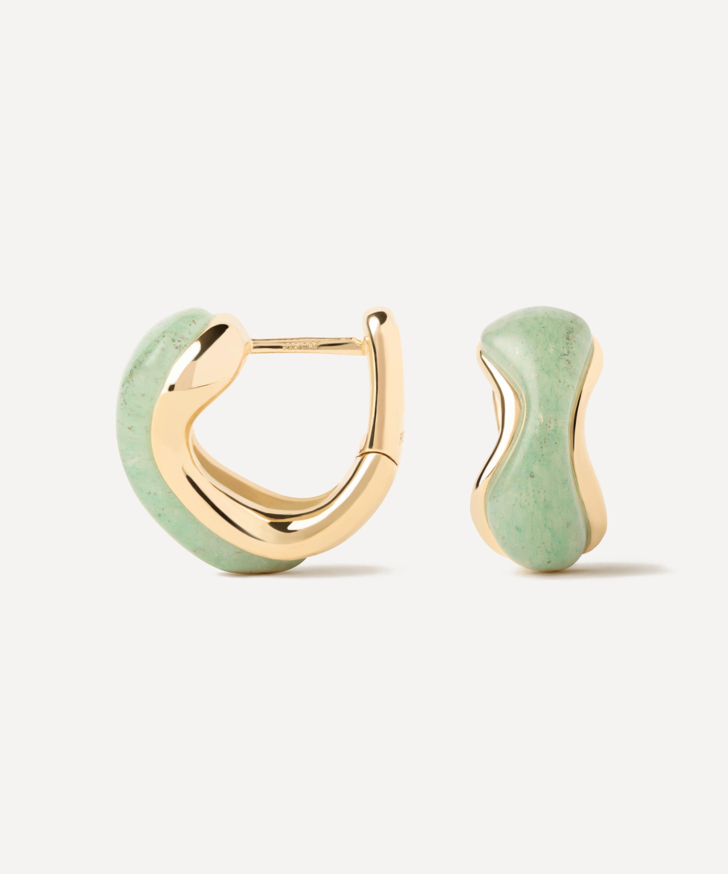 PDPAOLA 18ct Gold-Plated Green Aventurine Musa Huggie Hoop Earrings