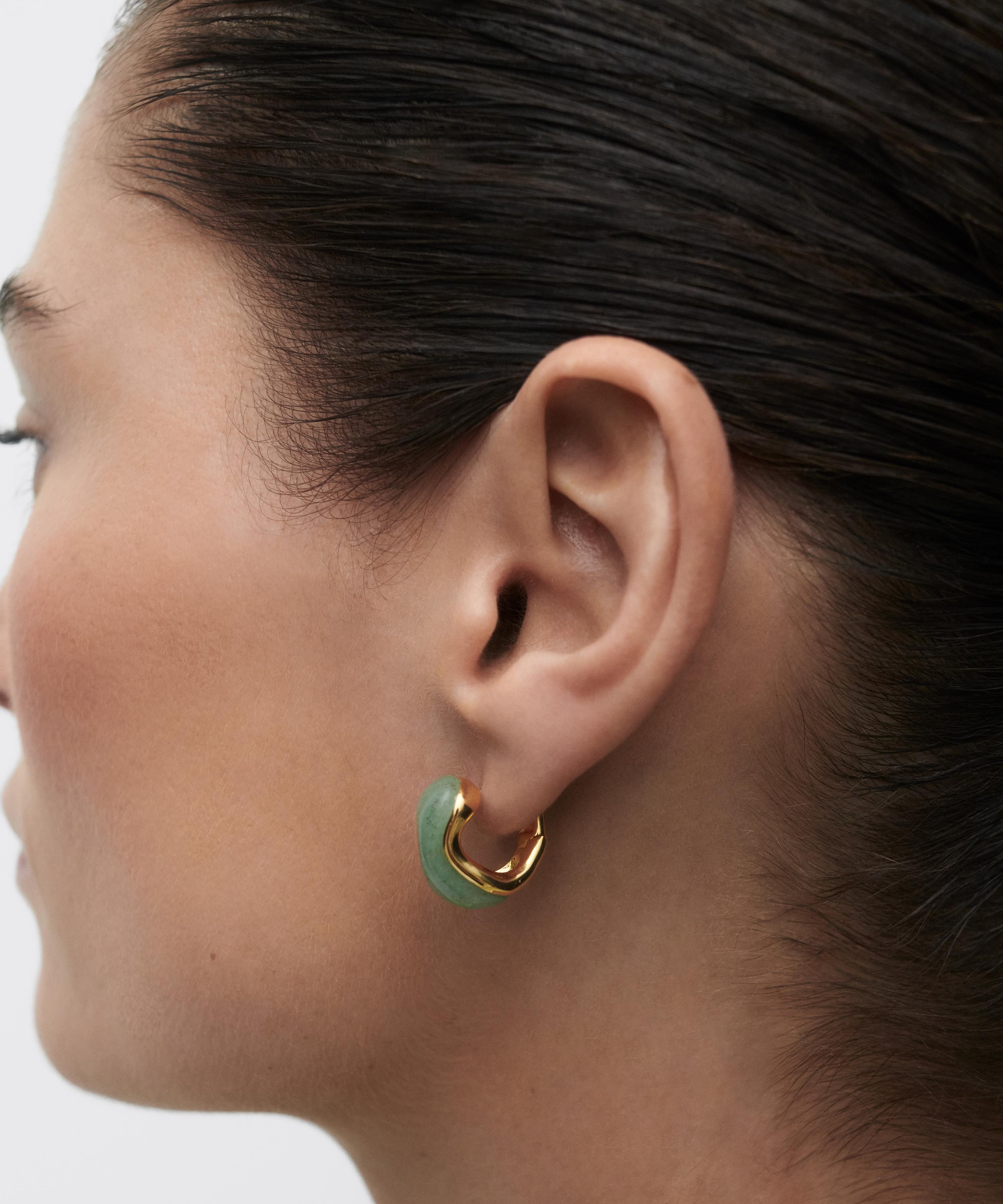 18ct Gold-Plated Green Aventurine Musa Huggie Hoop Earrings