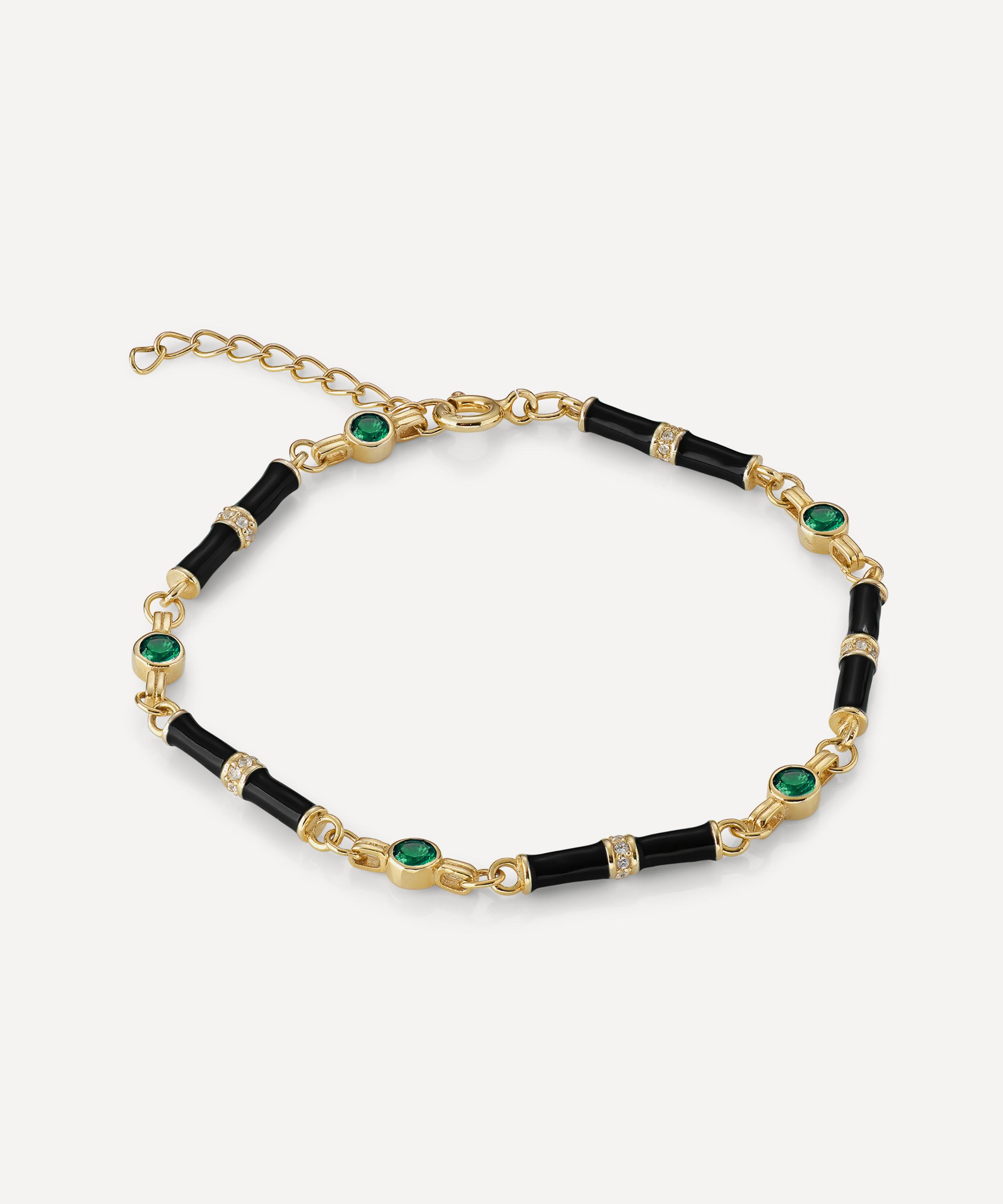 18ct Gold-Plated Marlowe Black Enamel and Green Stone Bracelet