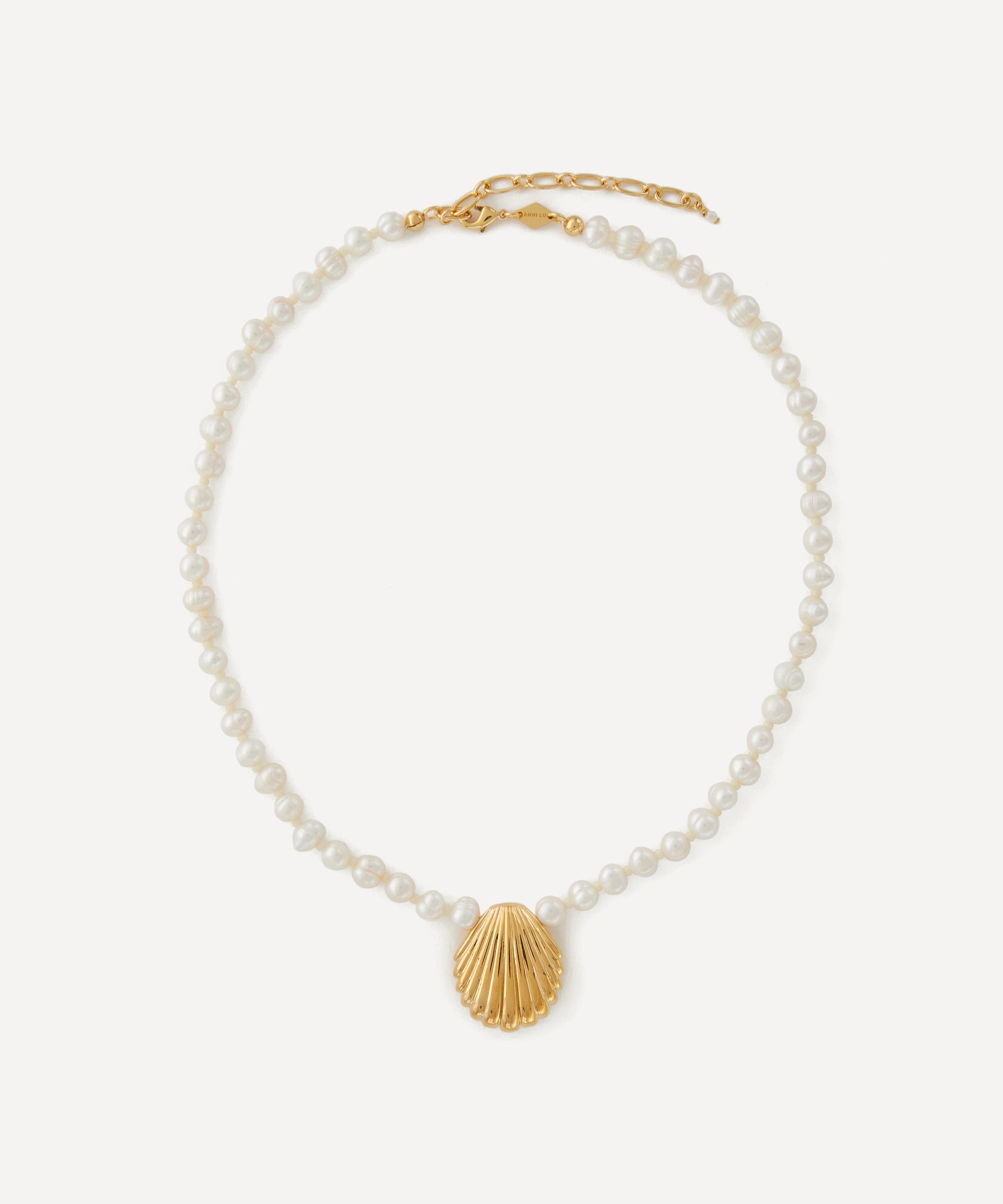 Add a touch of boho glamour to your look with the Ocean Treasure pearl necklace from Anni Lu. Handcrafted from 18ct gold-plated brass, it features a string of lustrous freshwater pearls, adorned with a subtly textured shell pendant – capturing the essence of the ocean’s beauty. Style it solo or stacked.