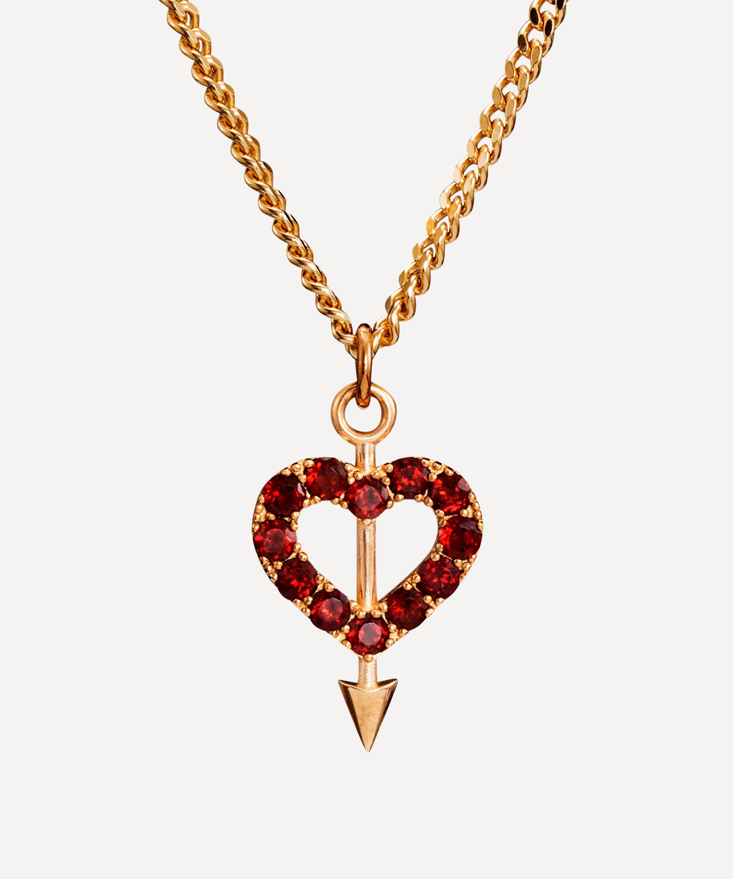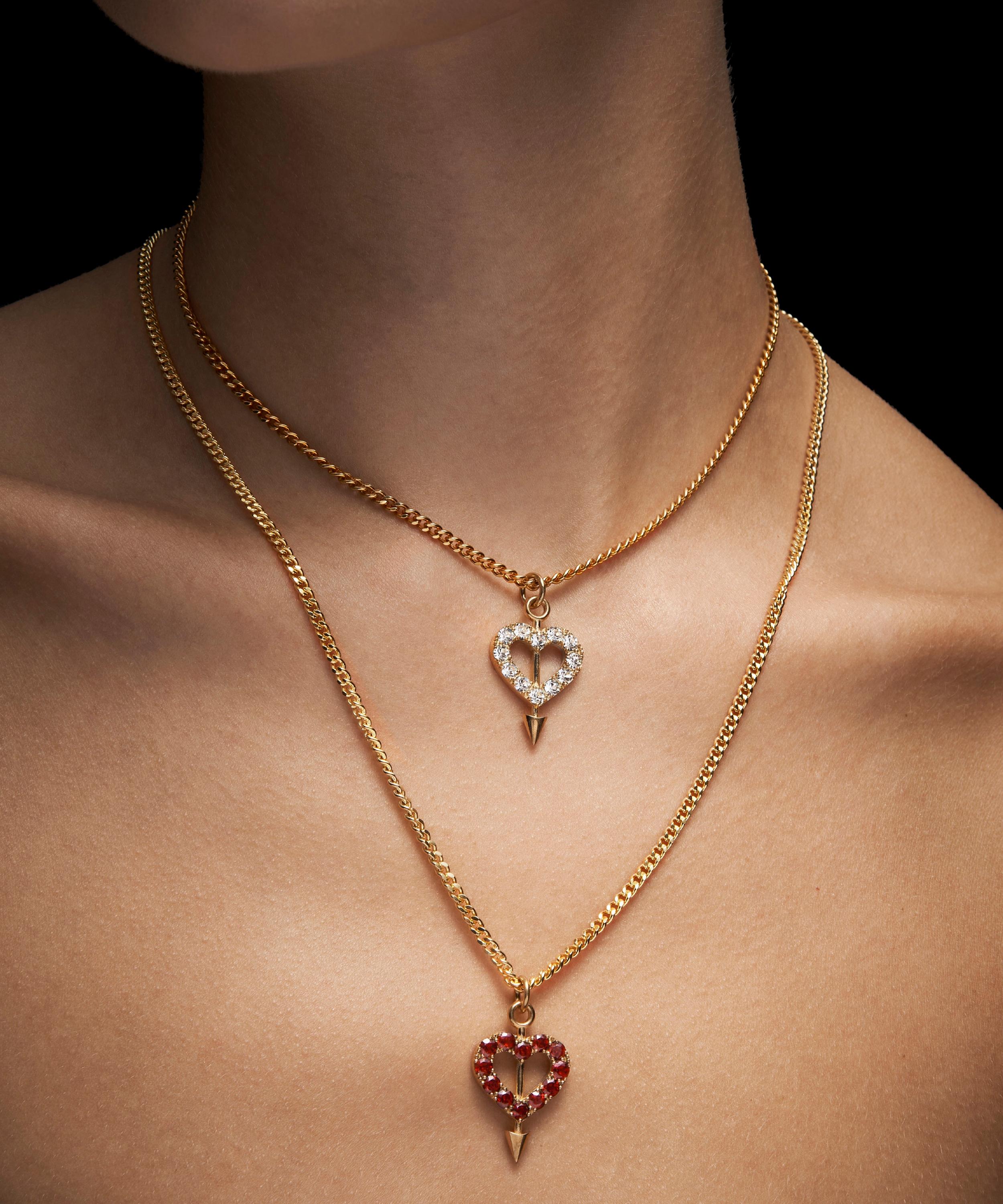 Inspired by the empowering concept of revenge dressing, Maria Nilsdotter’s Revenge pendant necklace will make a bold statement in your line up. Crafted from 18ct gold-plated silver, it features a classic curb chain and pierced heart pendant lined with red garnet stones. Perfect for both occasion wear and elevated everyday looks, style it as a solo piece or part of a statement stack.