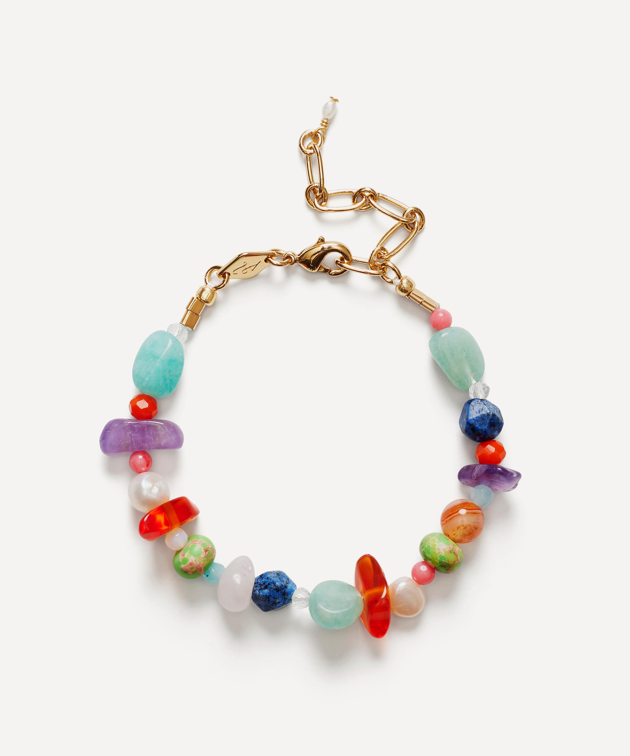 Add a touch of beachy glamour to your look with the Rock My World bracelet from Anni Lu. Handcrafted from 18ct gold-plated brass, it features a string of freshwater pearls and an assortment of uniquely cut, jewel-tone gemstones. Style it solo or stacked.