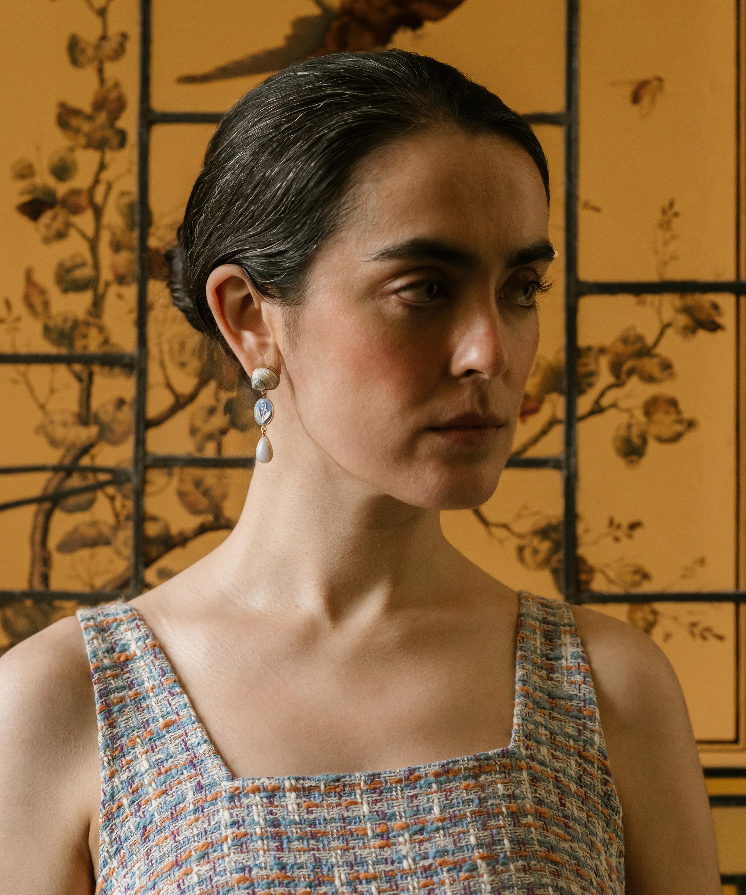 In the late 1980s, Grainne Morton left her home in Northern Ireland to study at the Edinburgh College of Art where she became an avid antique collector - a passion which eventually evolved into creating jewellery from the objects she’d accumulated. Every Grainne Morton design is formed of an eclectic assortment of found objects, coloured gems and tiny trinkets that are hand-selected and arranged by the designer into one-of-a-kind pieces. Try a pair of asymmetric chandelier earrings for an unexpected curation of charms that come together to tell their own unique story.