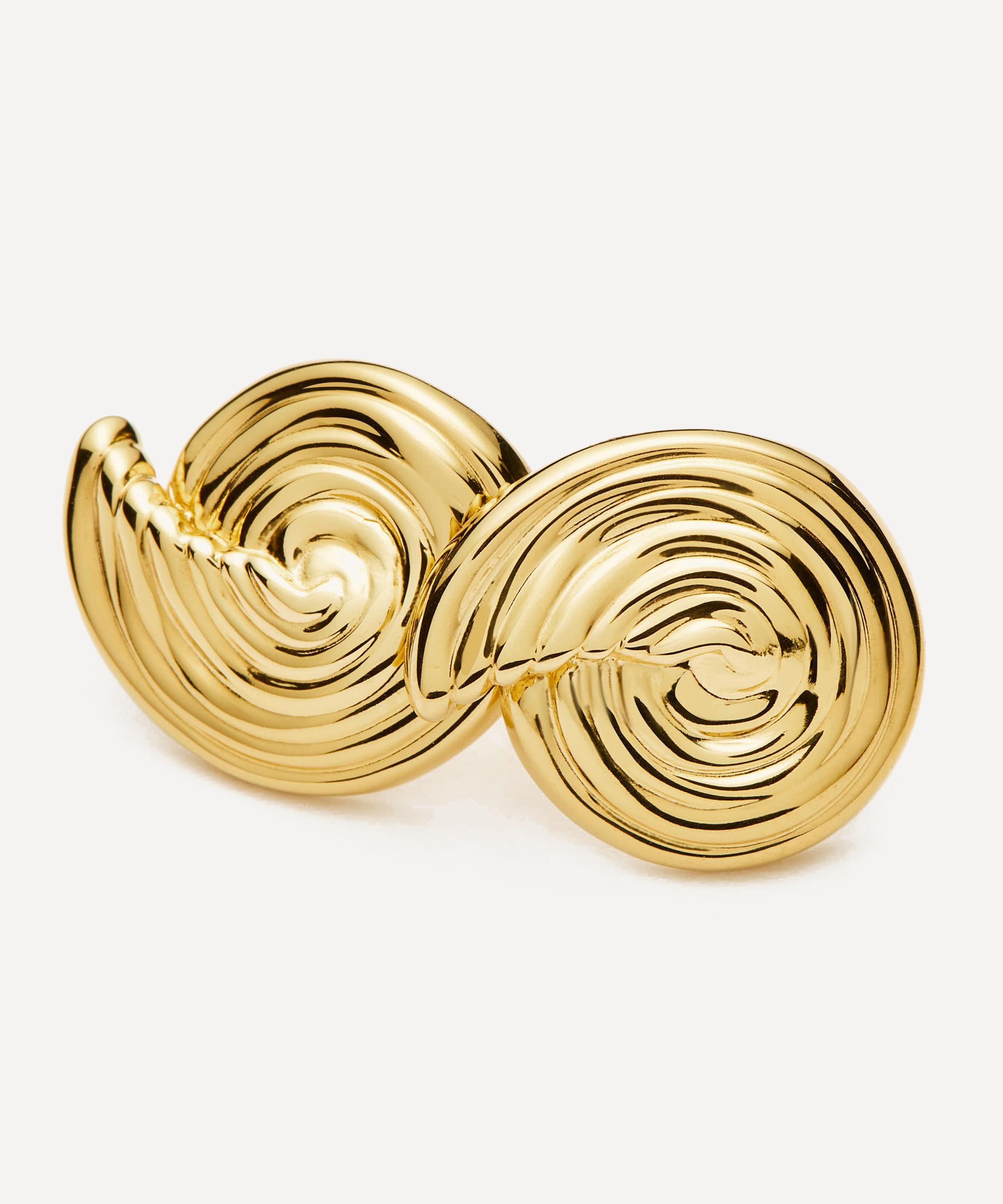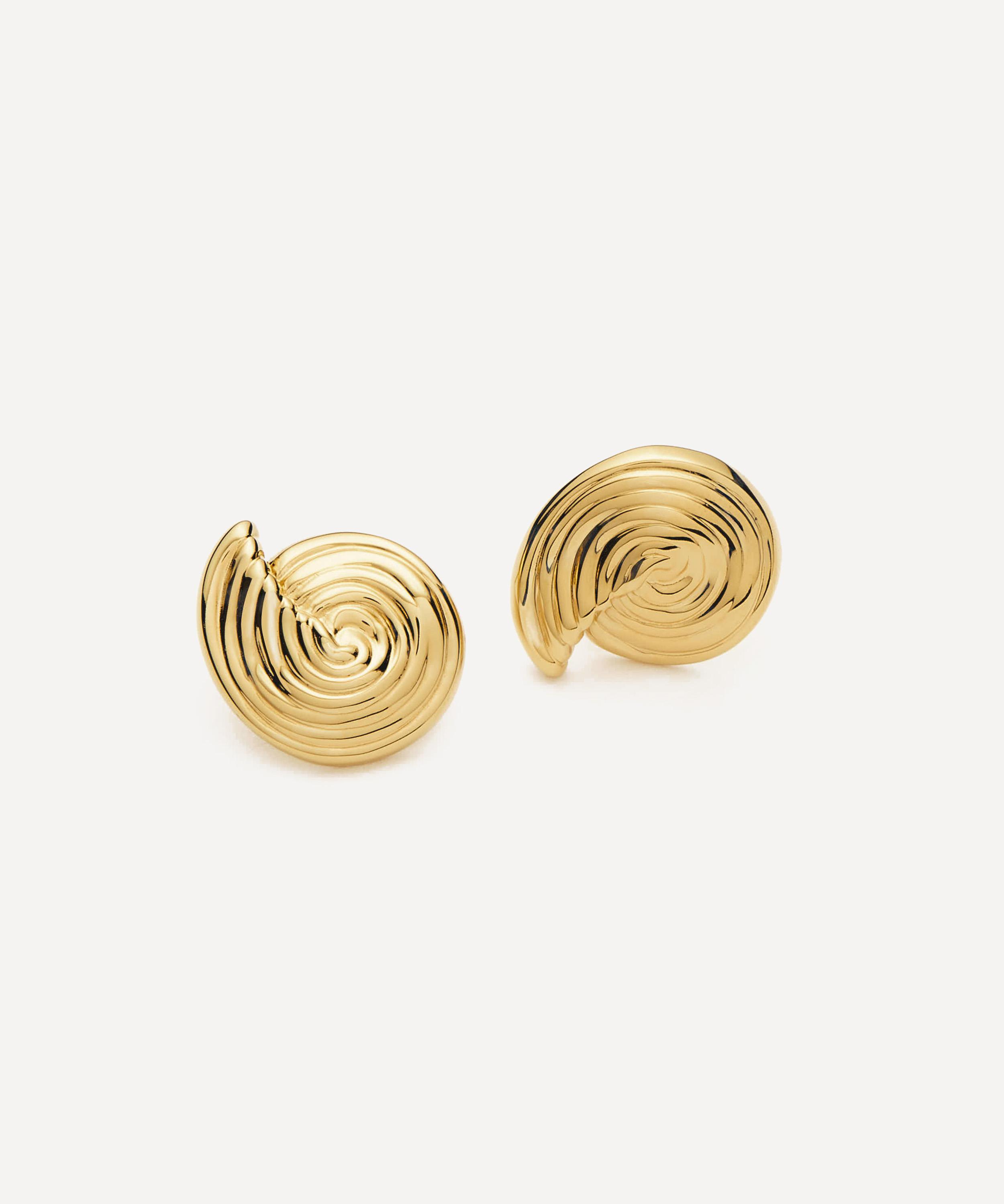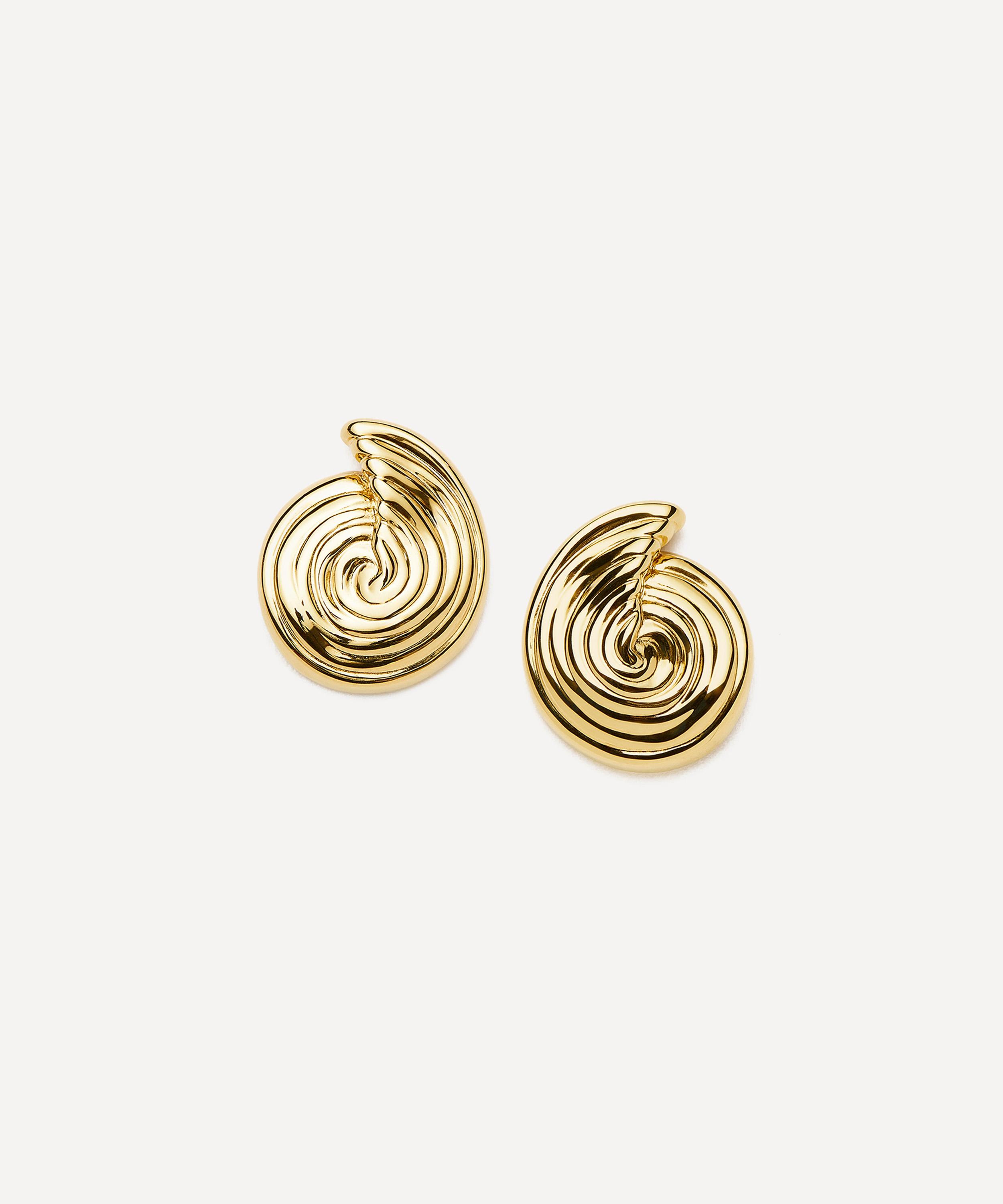 Drawing on elevated costal shapes, each earring features a large spiral stud in 18ct gold-plated brass. Perfect for the summer season and beyond, they can be worn solo or complimented with other studs and hoops.