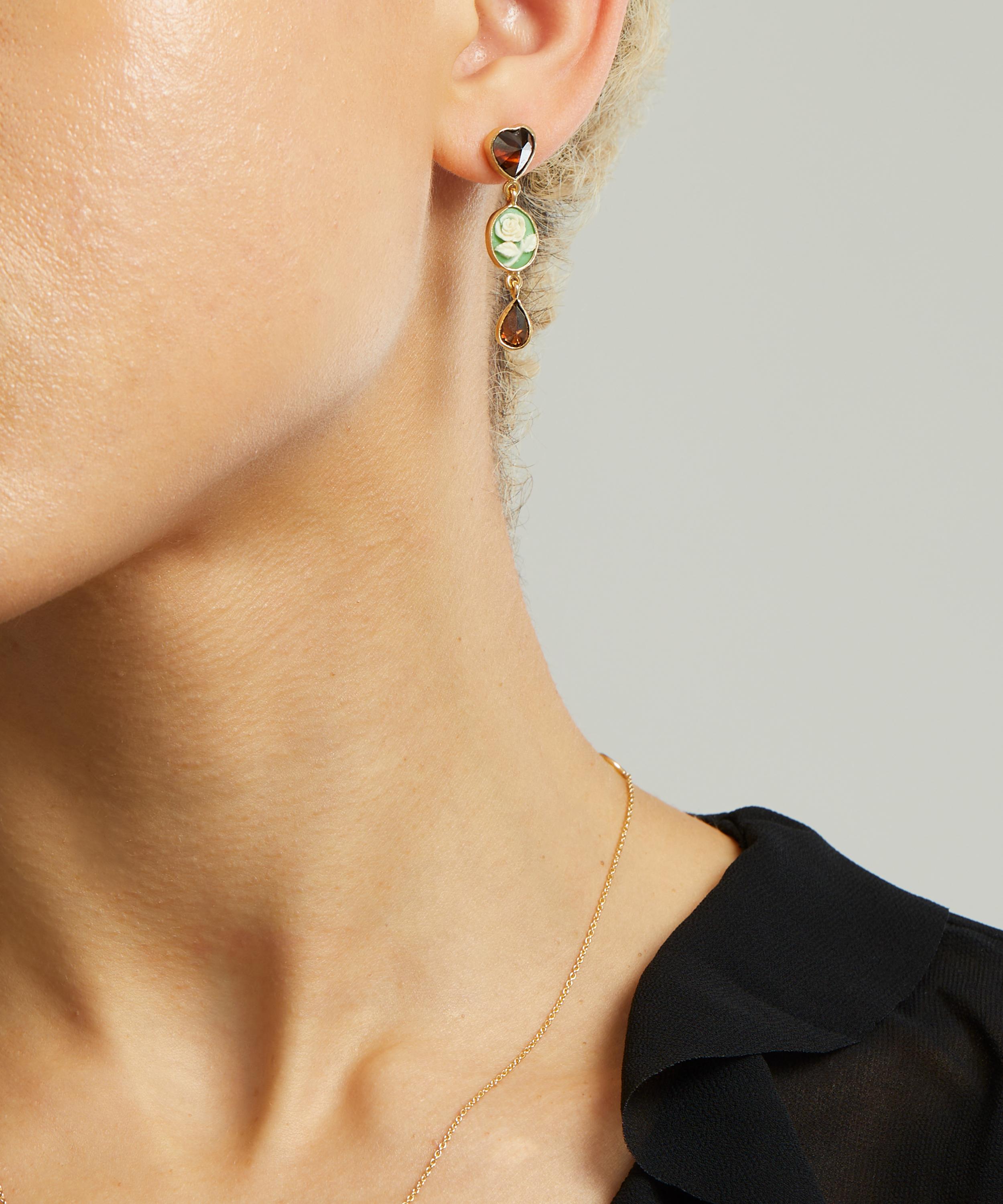 These drop earrings from Grainne Morton boasts a dreamy addition to your everyday line-up. Handmade in Edinburgh from 18ct gold-plated silver, each artful earring is characterised by a classic triple-drop design formed of mismatched charms. Featuring an unexpected juxtaposition of vintage and contemporary styles – they are perfect for adding visual interest to everyday looks.