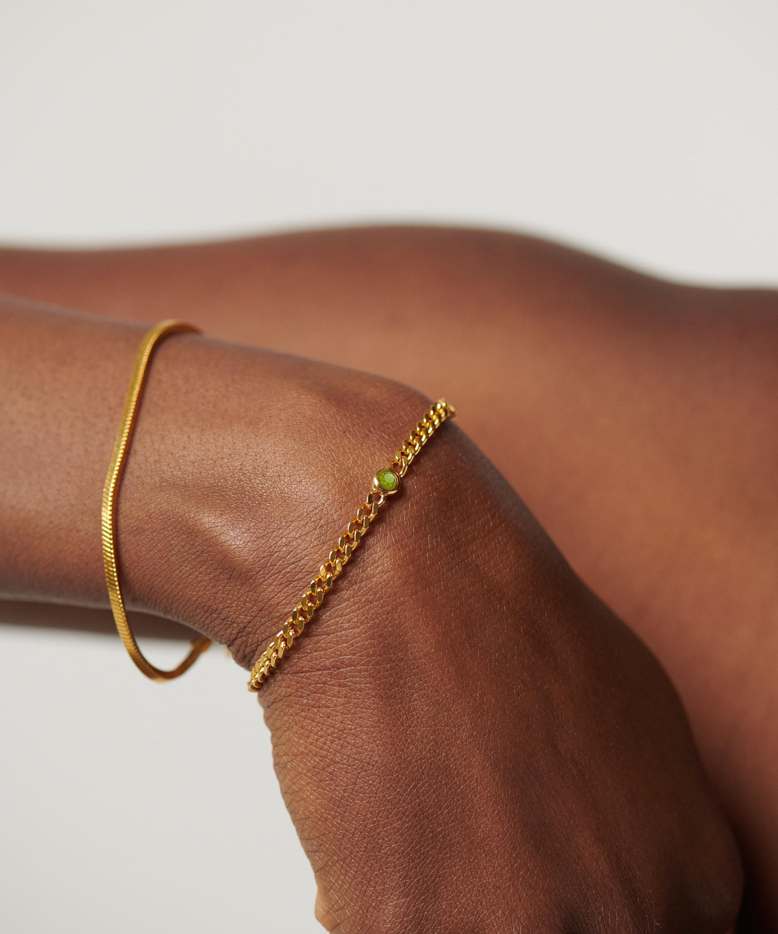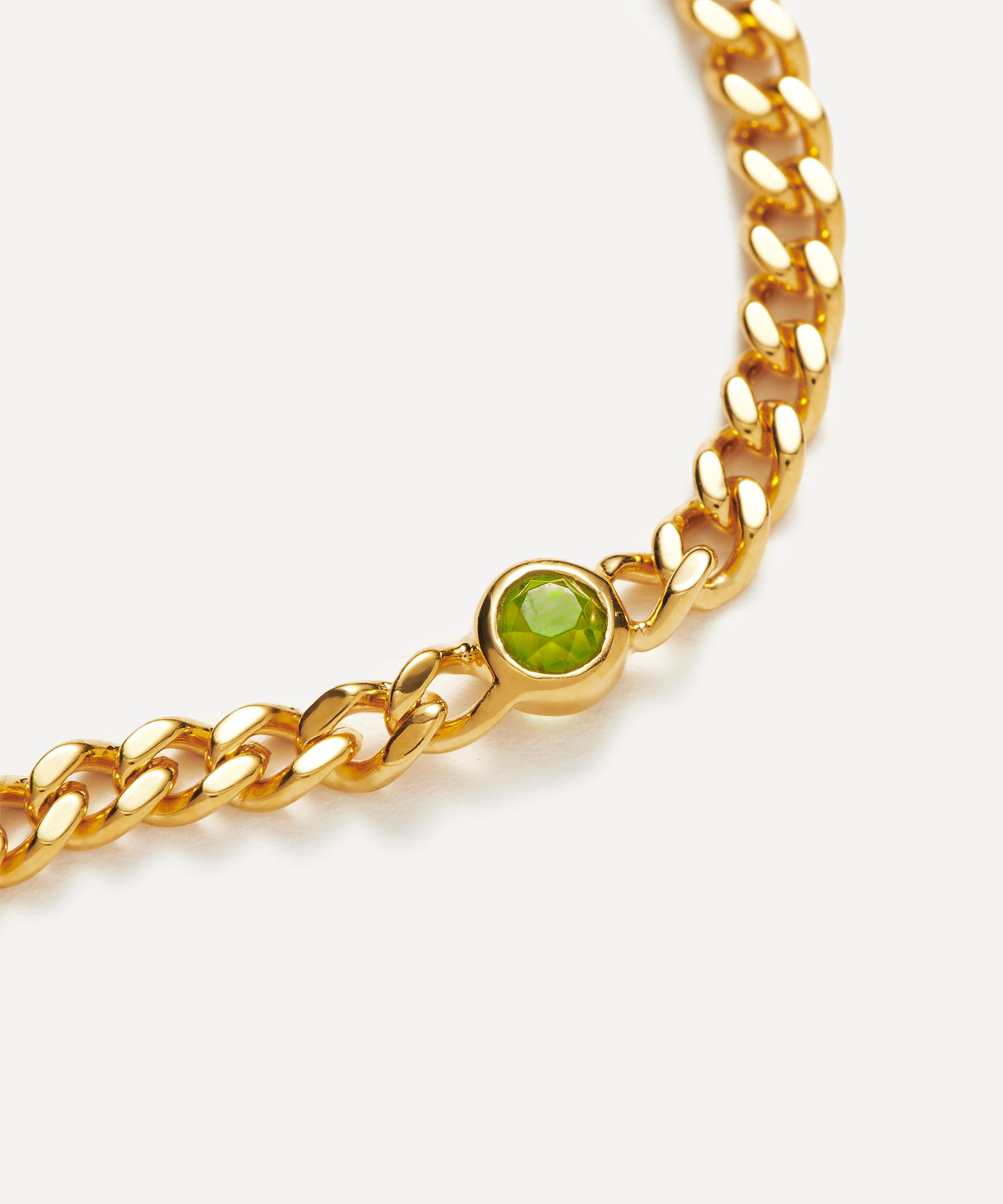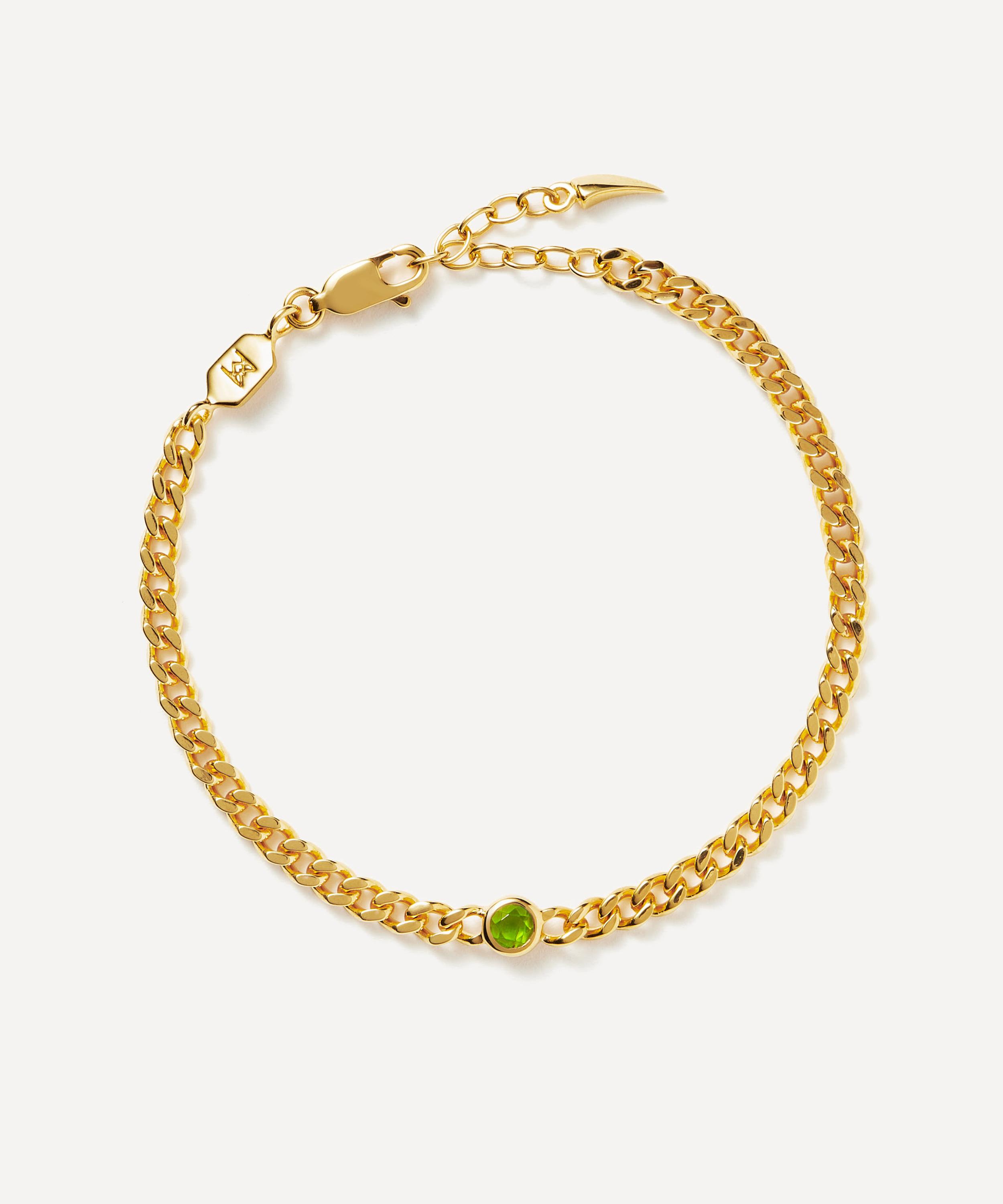 This birthstone chain bracelet from Missoma seamlessly blends stylish design with meaningful symbolism – taking personalised jewellery to a new level. Crafted in recycled silver plated in 18ct gold vermeil, this bracelet features a delicate curb chain with a bezel-set peridot gemstone – making it the perfect gift for anyone born in August.