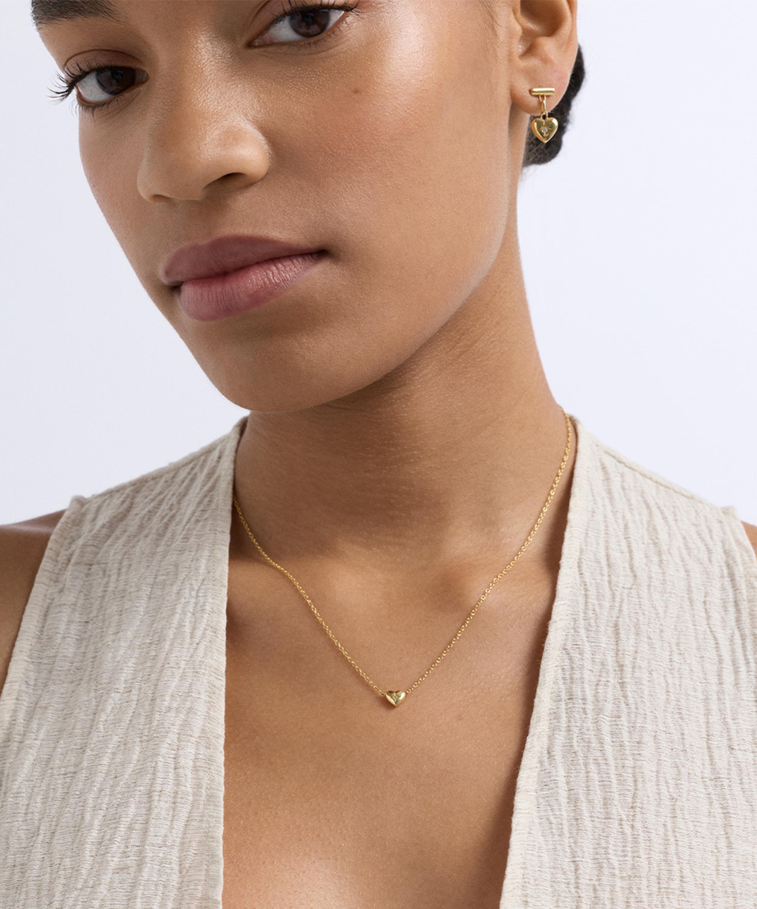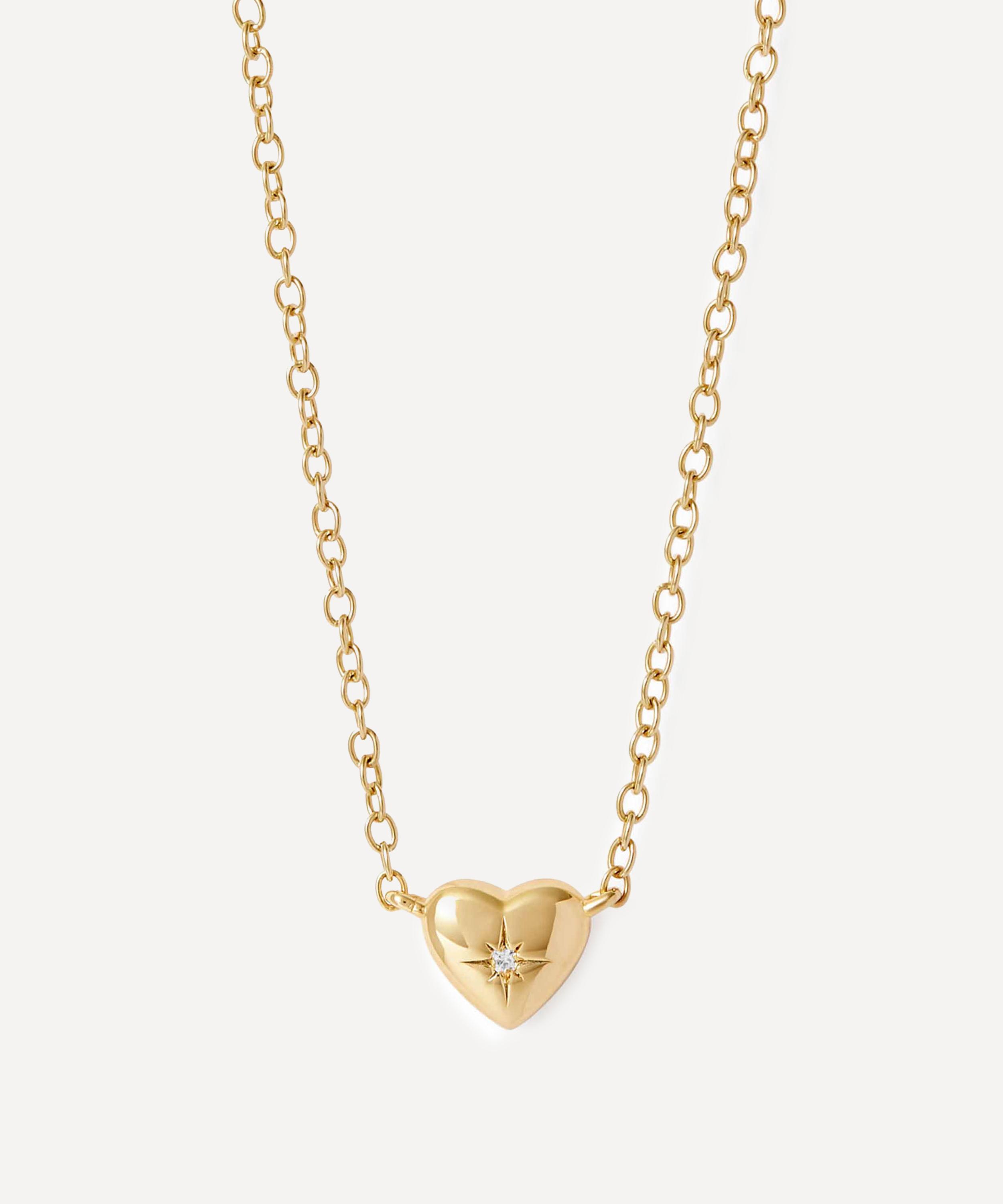 Crafted from sterling silver plated in 18ct gold vermeil, it features a classic trace chain and a delicate heart pendant, adorned with the brand’s signature north star motif, set with a sparkling white sapphire. Boasting a meaningful piece that you can treasure for years to come, or gift to a loved one, it can be styled as solo or layered with classic chains and additional pendant necklaces to build a curated stack.