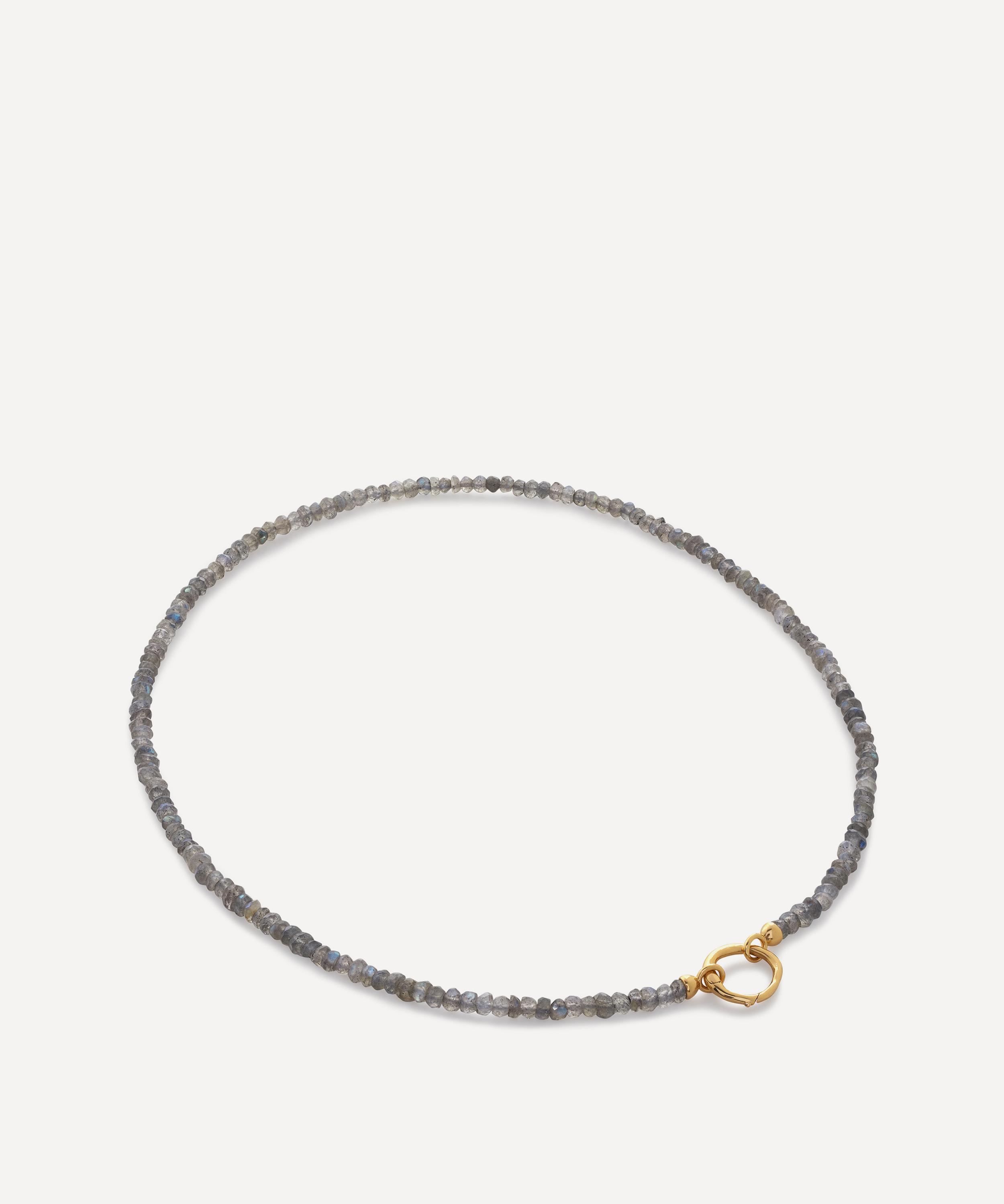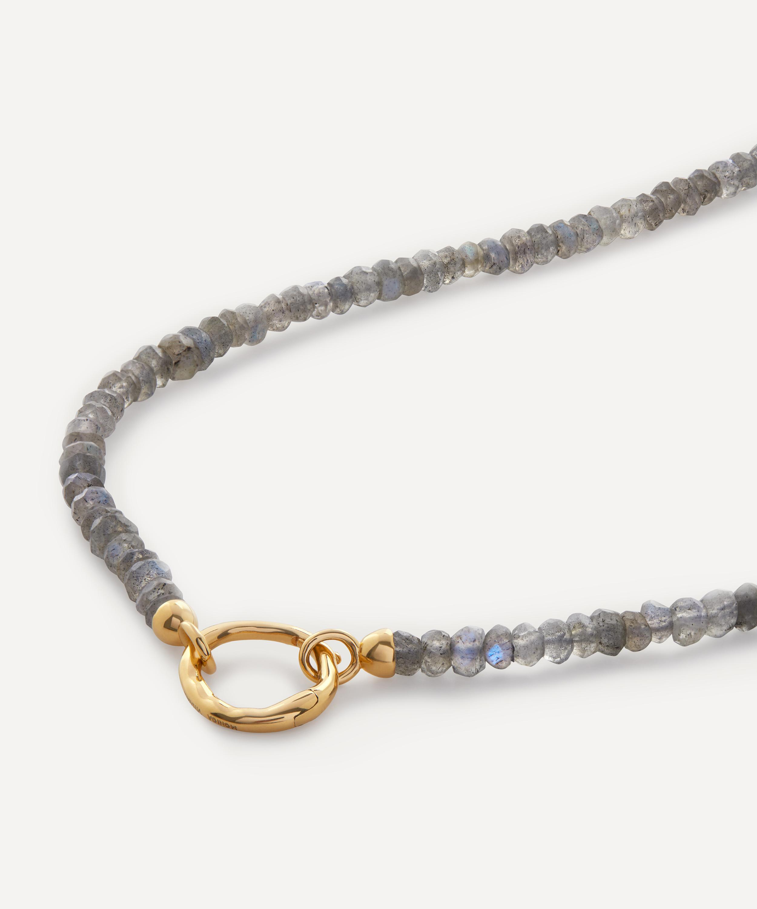 Empower your individual style and transform curated outfits with this contemporary beaded necklace from Monica Vinader. Crafted from sterling silver plated in 18ct gold vermeil, it features threaded labradorite beads, artfully accented with a clasp that doubles as a pendant holder. Style with one of the many pendants from the brand, either solo, or layered.