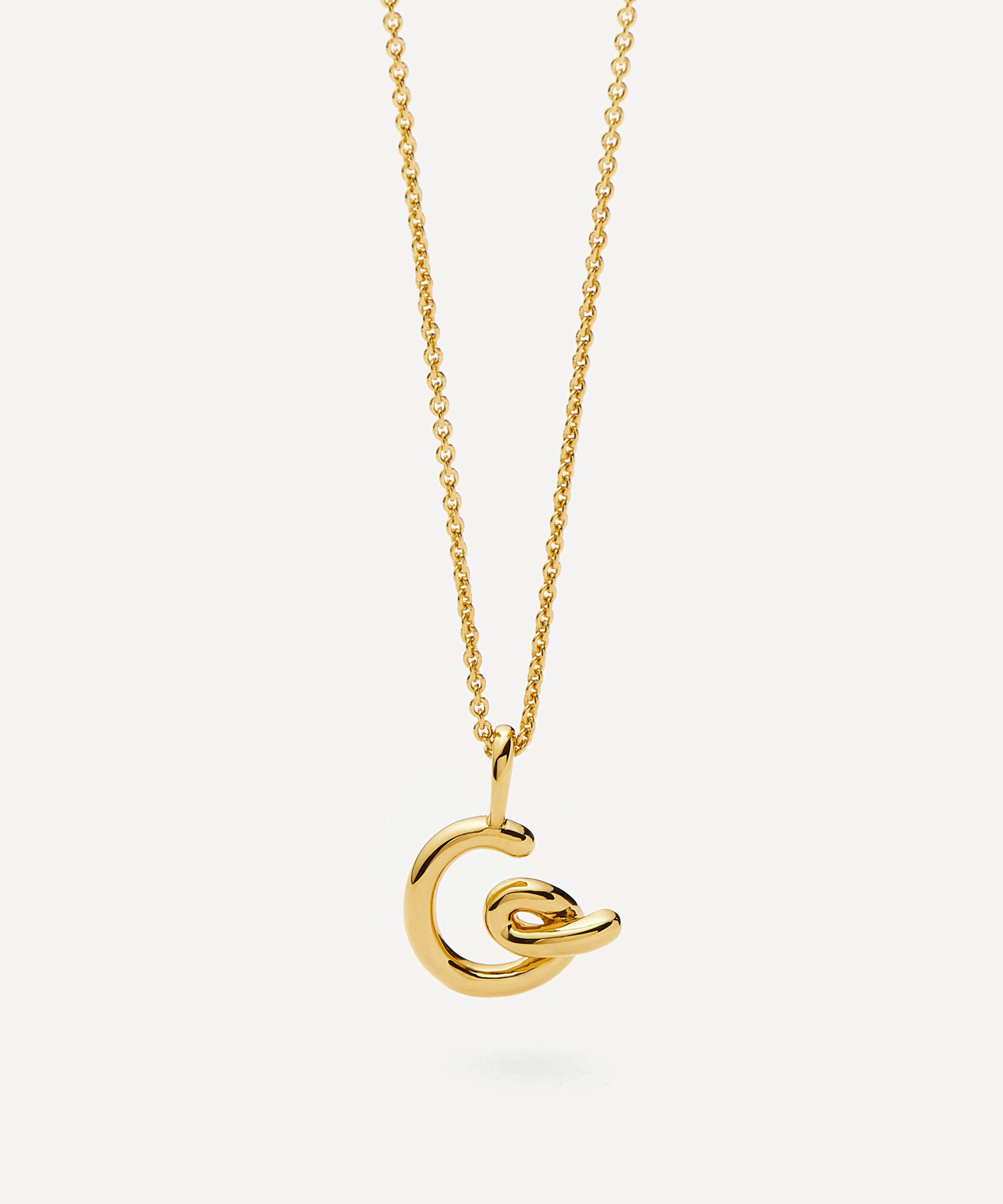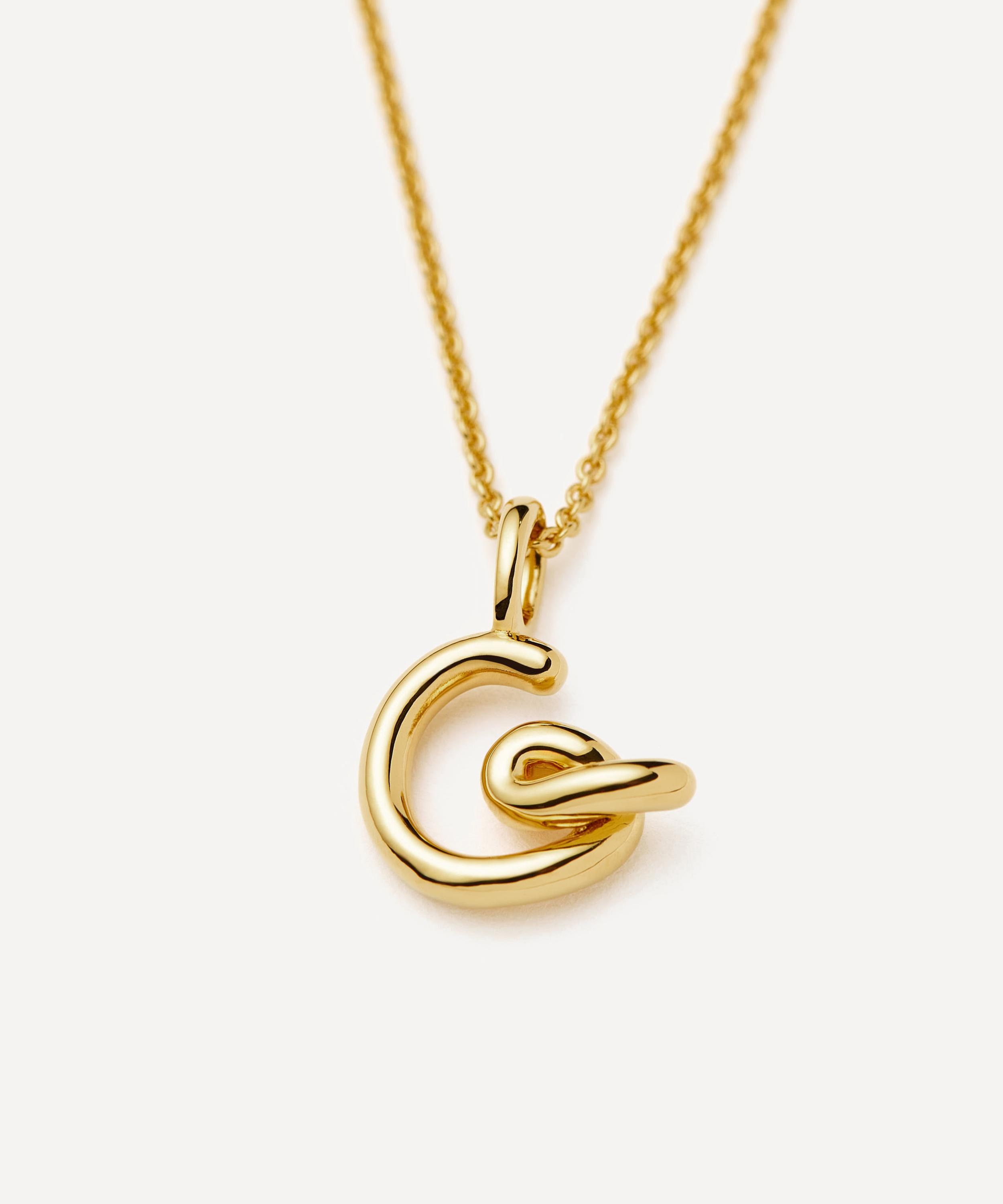 Put a unique spin on your jewellery curation with this personal initial pendant necklace from Missoma. Crafted from sterling silver plated in 18ct gold vermeil, it features a delicate trace chain adorned with a molten style ‘G’ initial pendant in a bespoke hand-drawn font. Elegant and versatile, it makes for a thoughtful personalised gift for someone special or yourself – perfect for both layering and styling solo.
