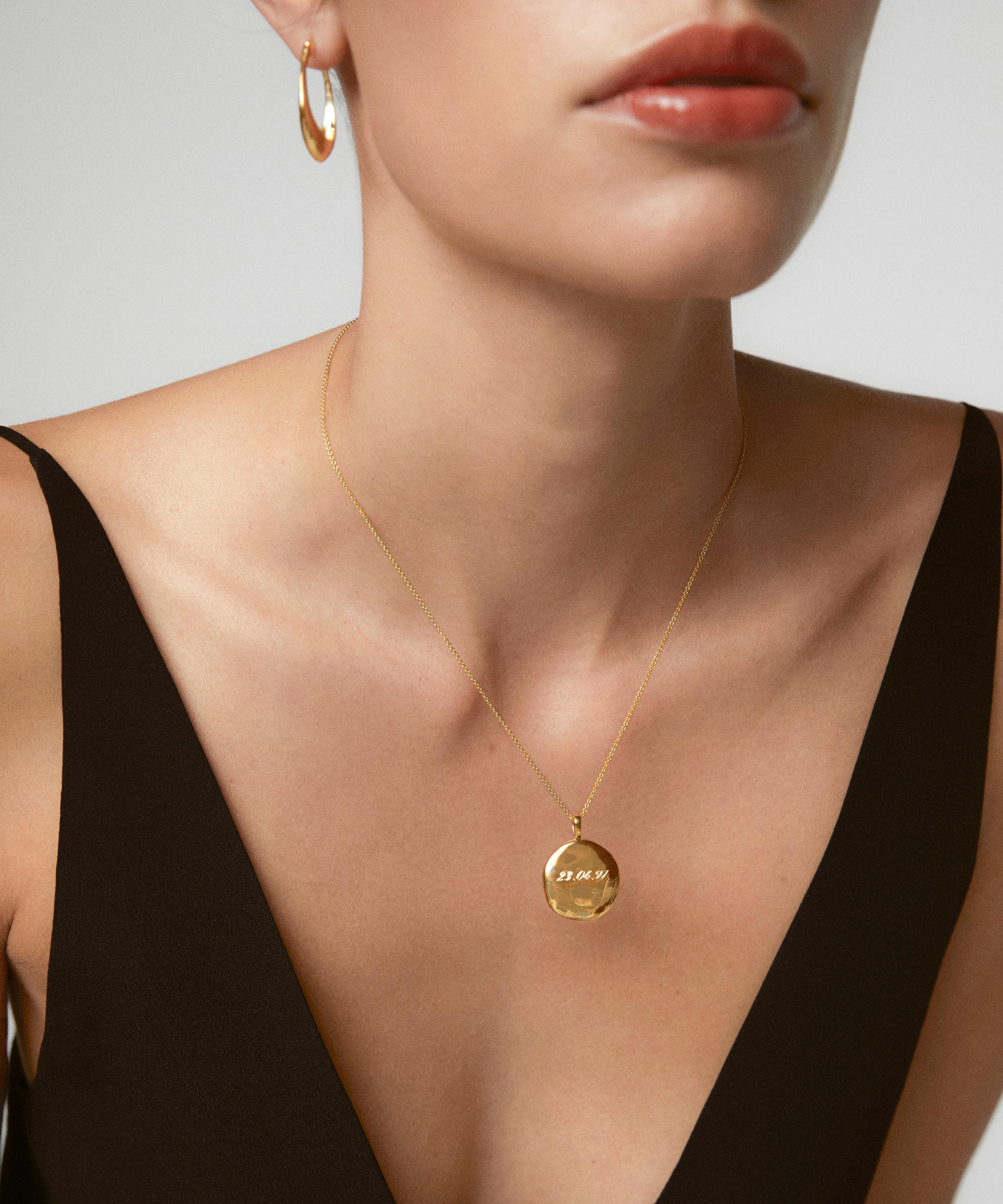 Crafted from sterling silver plated in 18 carat gold vermeil, this pendant locket is part of Monica Vinader's Deia collection – a celebration of independence and individuality. Inspired by pebbles lightly worn by water, this locket features a slightly irregular silhouette with gently hammered texture to reflect the light. Suitable for engraving, wear this talismanic keepsake with up to two photos on the inside to keep your loved ones close to your heart.