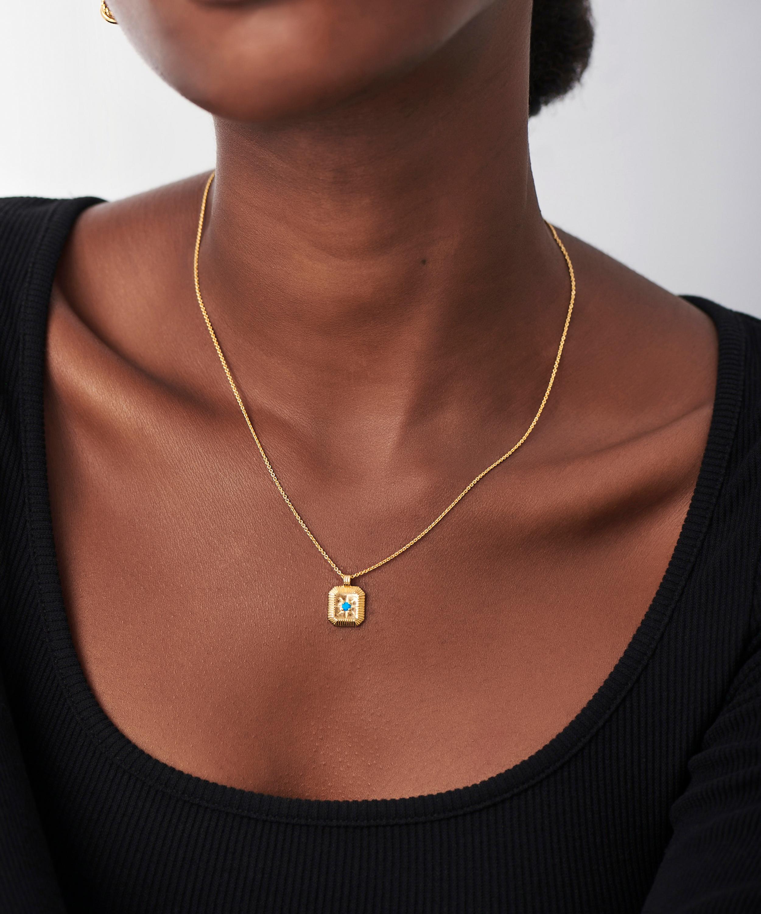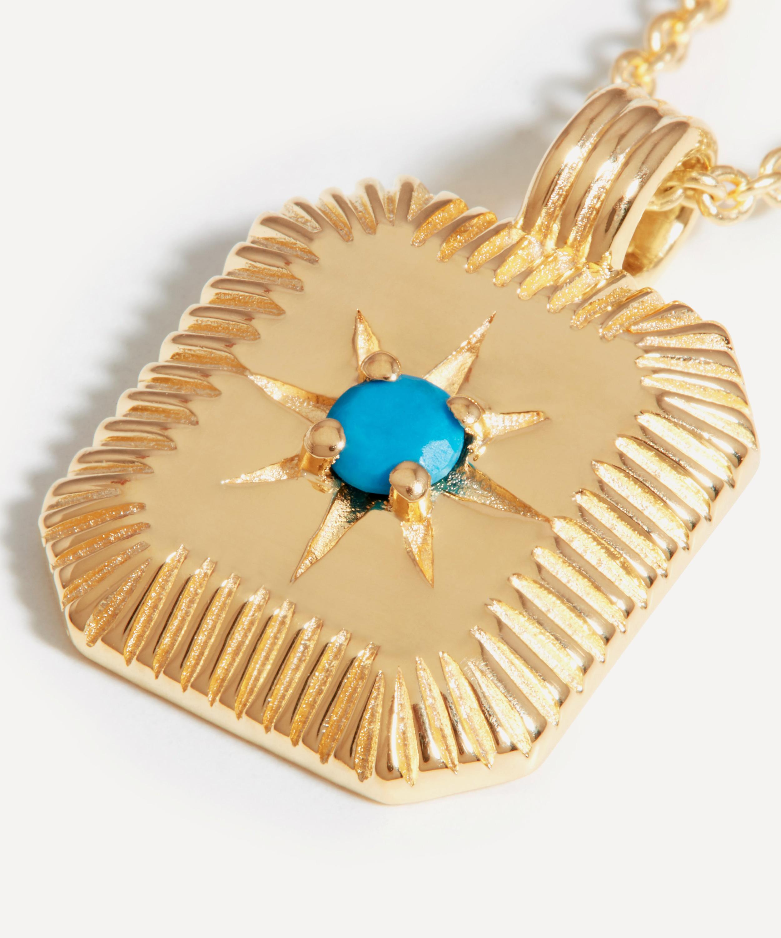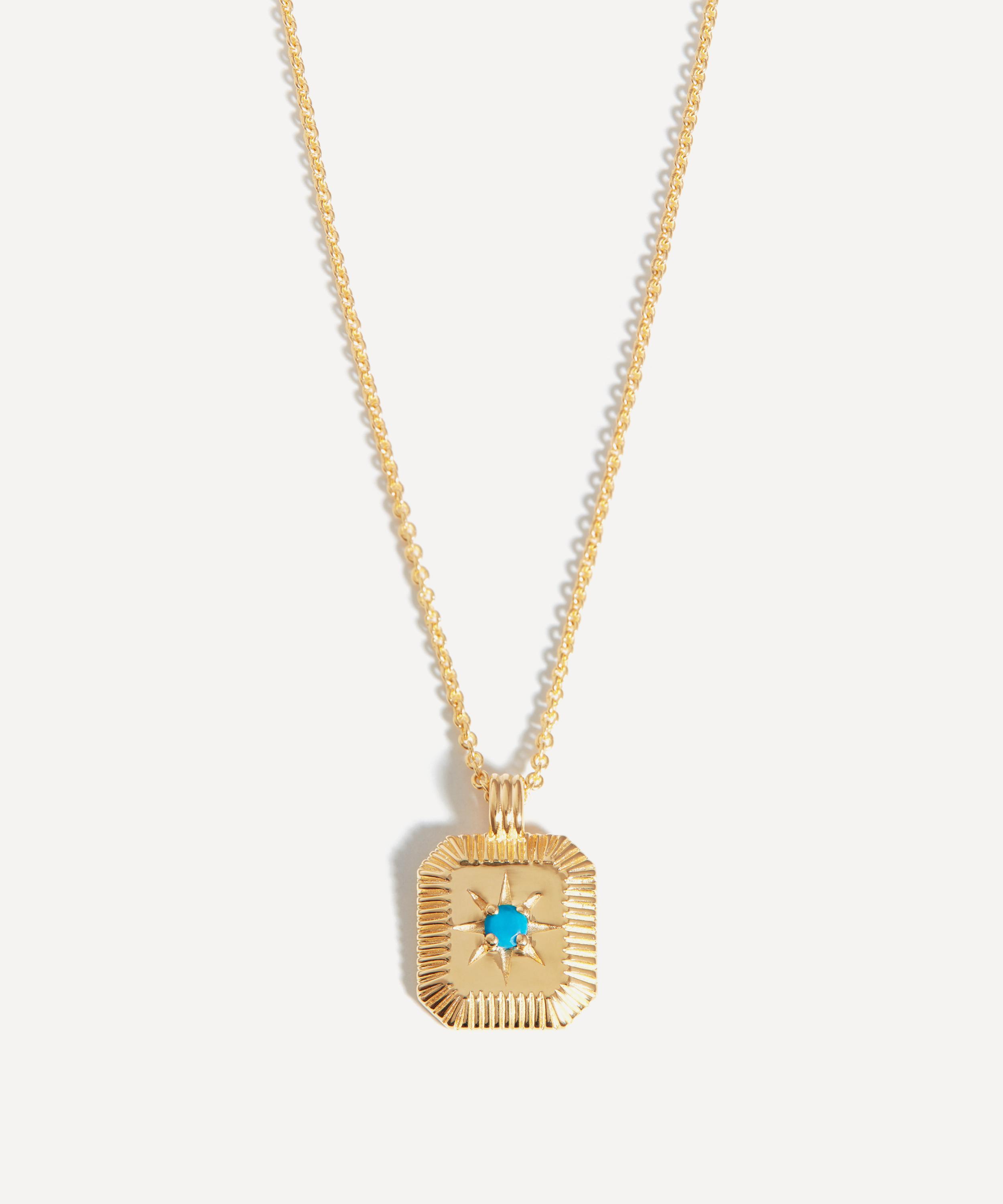 This birthstone pendant necklace from Missoma seamlessly blends stylish design with meaningful symbolism – taking personalised jewellery to a new level. Crafted in recycled silver plated in 18ct gold vermeil, this necklace features a delicate chain with a beautifully ridged pendant. The pendant is embellished with a central star motif, fitted with a natural turquoise magnesite stone – making it the perfect gift for anyone born in December.