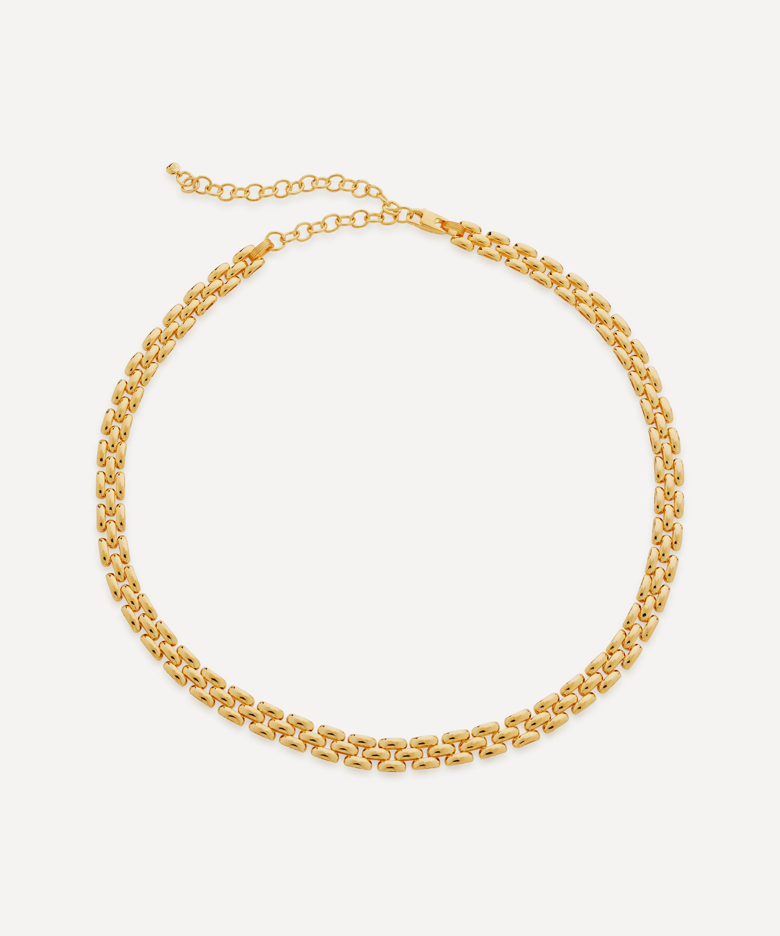 Inspired by the glamour of 1950s Italy, this heirloom chain necklace from Monica Vinader is crafted from recycled sterling silver plated in 18 carat gold vermeil - proof that taking a more sustainable approach to jewellery does not mean compromising on design or quality. Recalling classic vintage styles, this necklace is characterised by a chunky multi-link chain with an adjustable lobster clasp fastening. Pair it with the coordinating bracelet to fully harness the collection’s glamorous, vintage-inspired aesthetic.