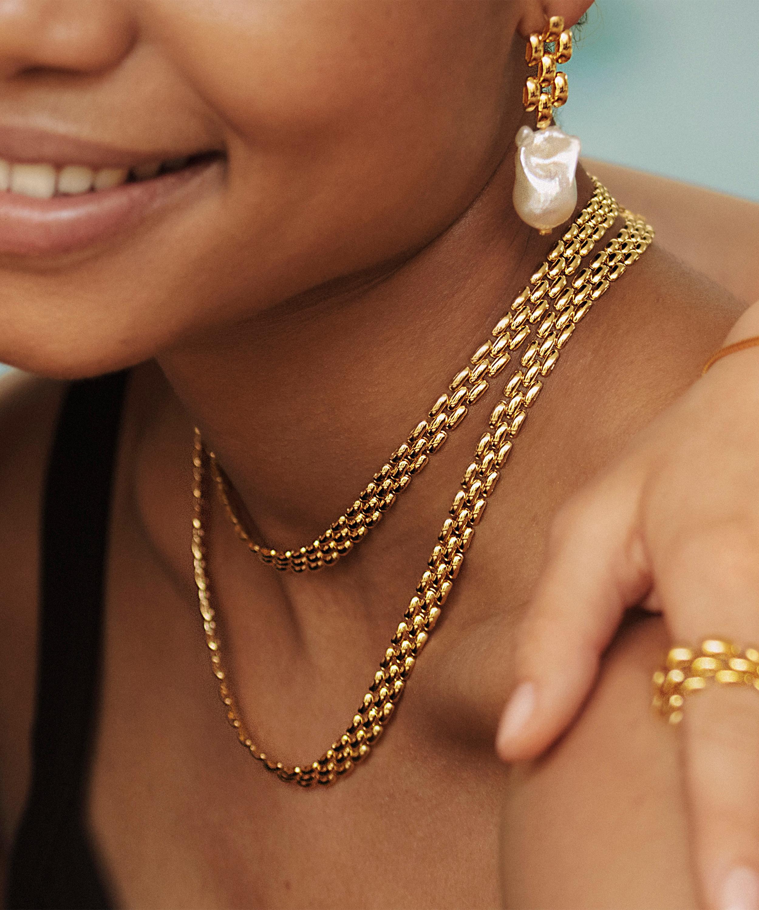 • Monica Vinader’s vermeil is a minimum of 2.5 microns of 18 carat gold plated over sterling silver