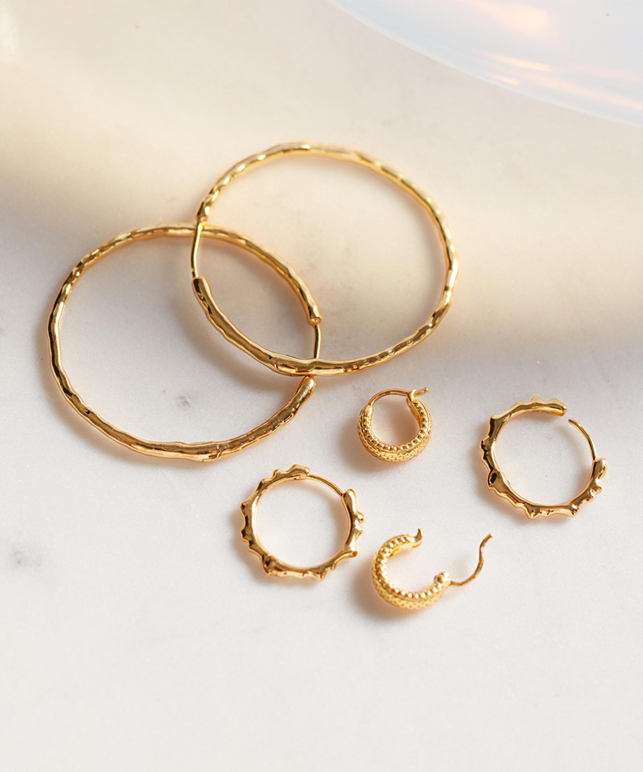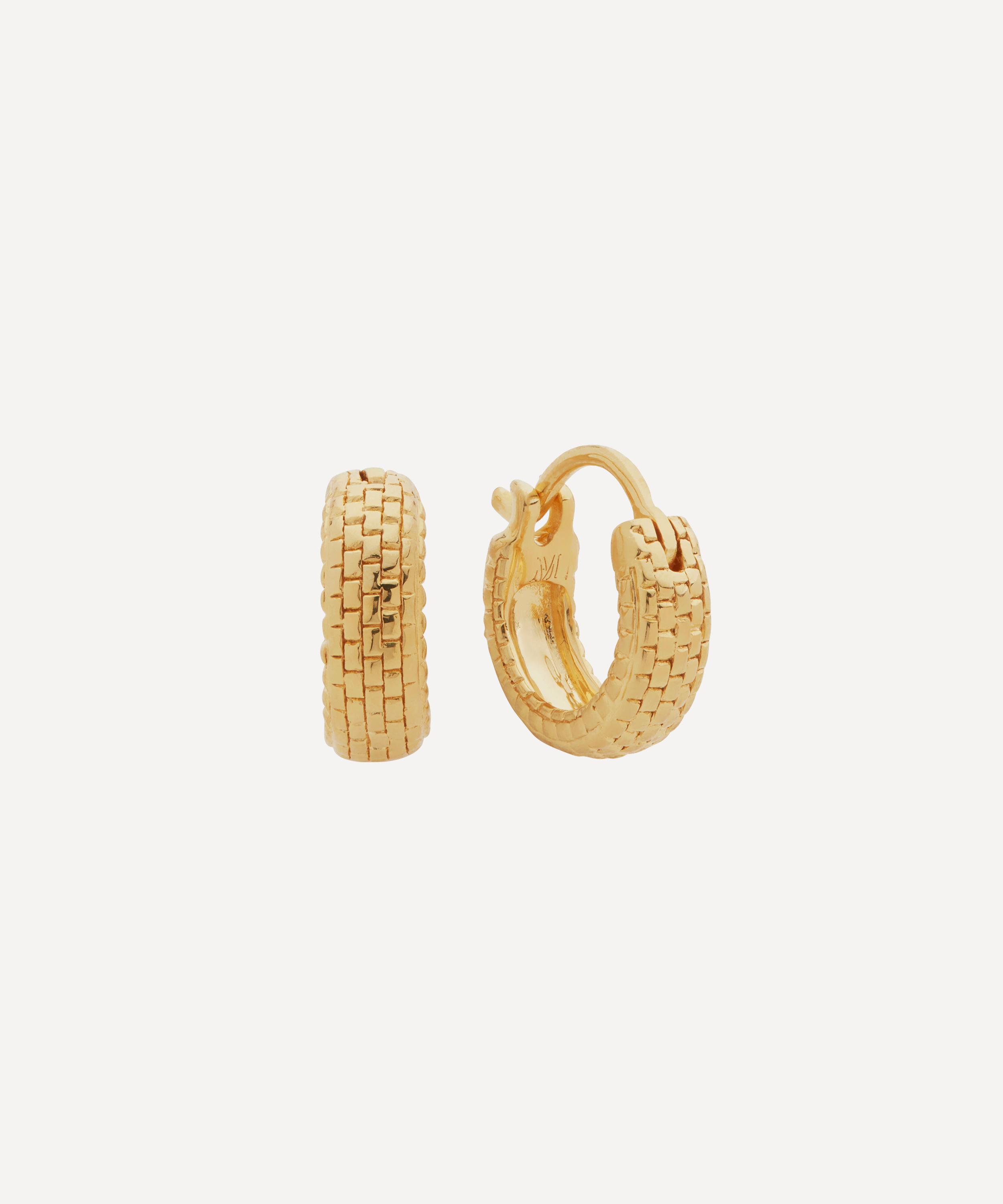 Inspired by the glamour of 1950s Italy, these textured huggie hoop earrings from Monica Vinader are crafted from sterling silver plated in 18 carat gold vermeil - proof that taking a more sustainable approach to jewellery does not mean compromising on design or quality. Perfect for threading with a charm of your choice, each of these earrings is characterised by a small, chunky huggie hoop with a high-polished finish and a woven chain texture. Team them with several other styles to fully harness the collection’s glamorous, vintage-inspired aesthetic.