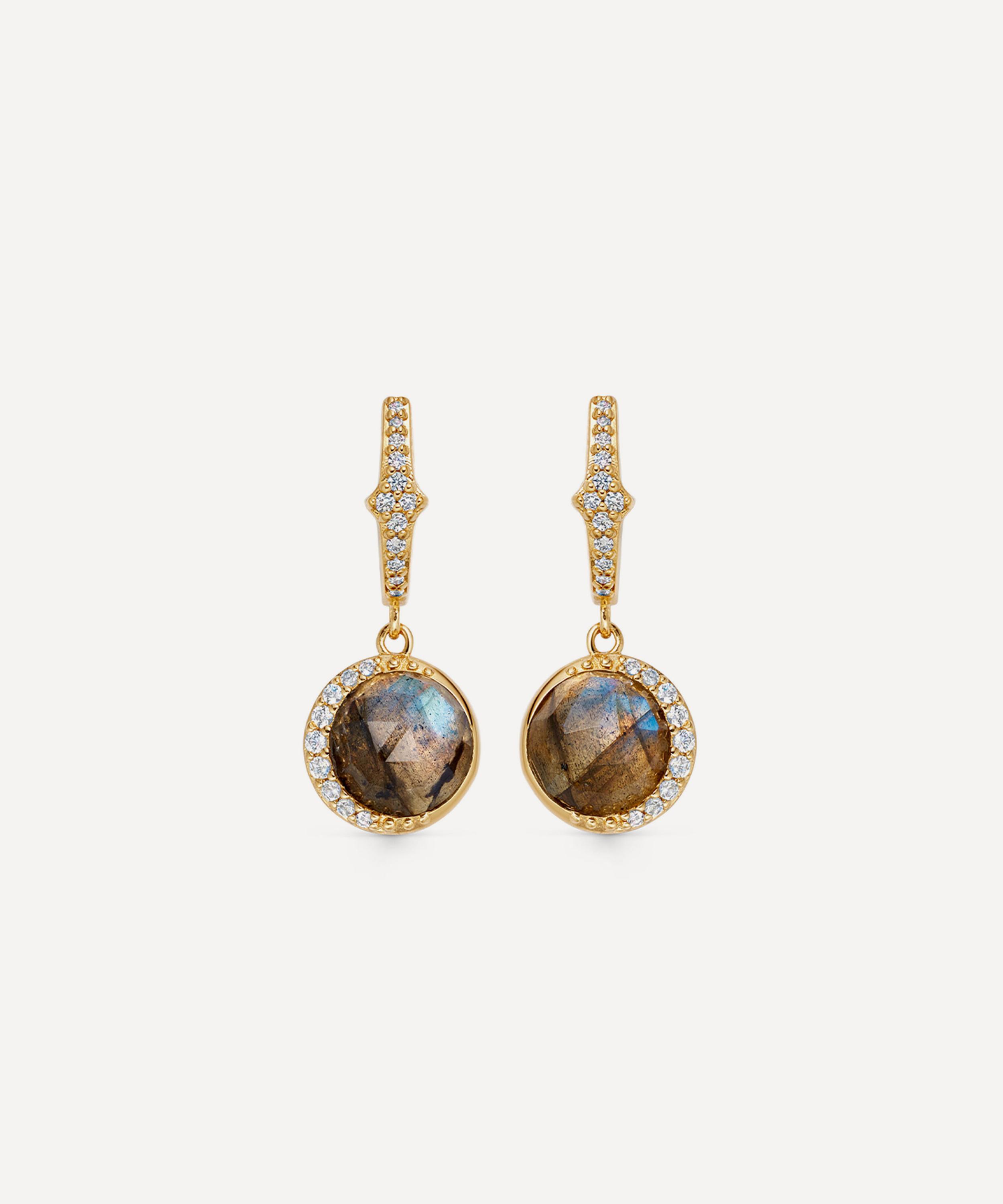 18ct Gold-Plated Vermeil Silver Large Luna Labradorite Drop Earrings