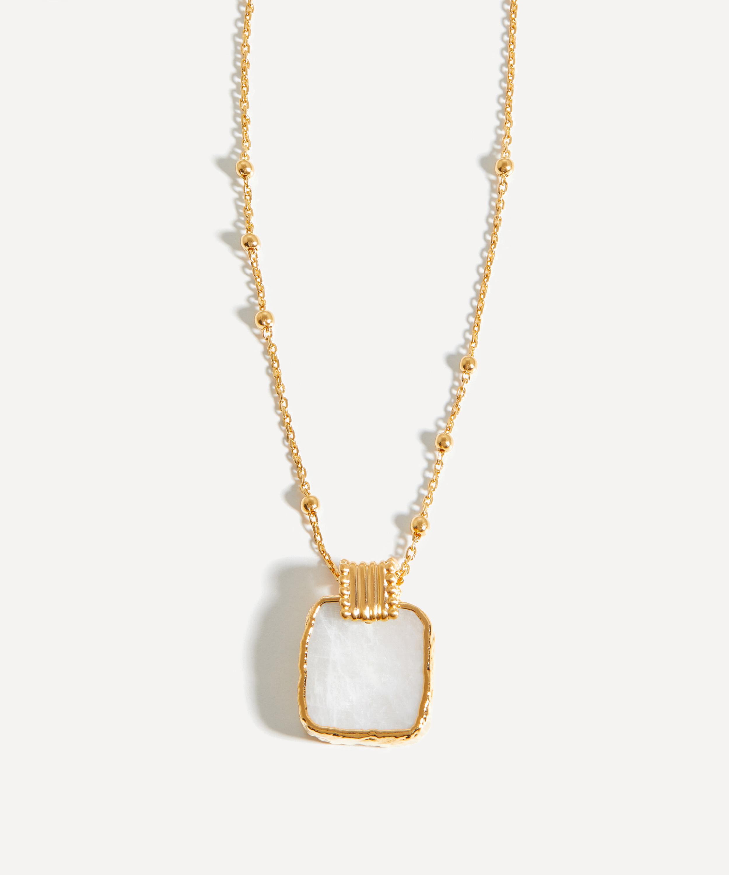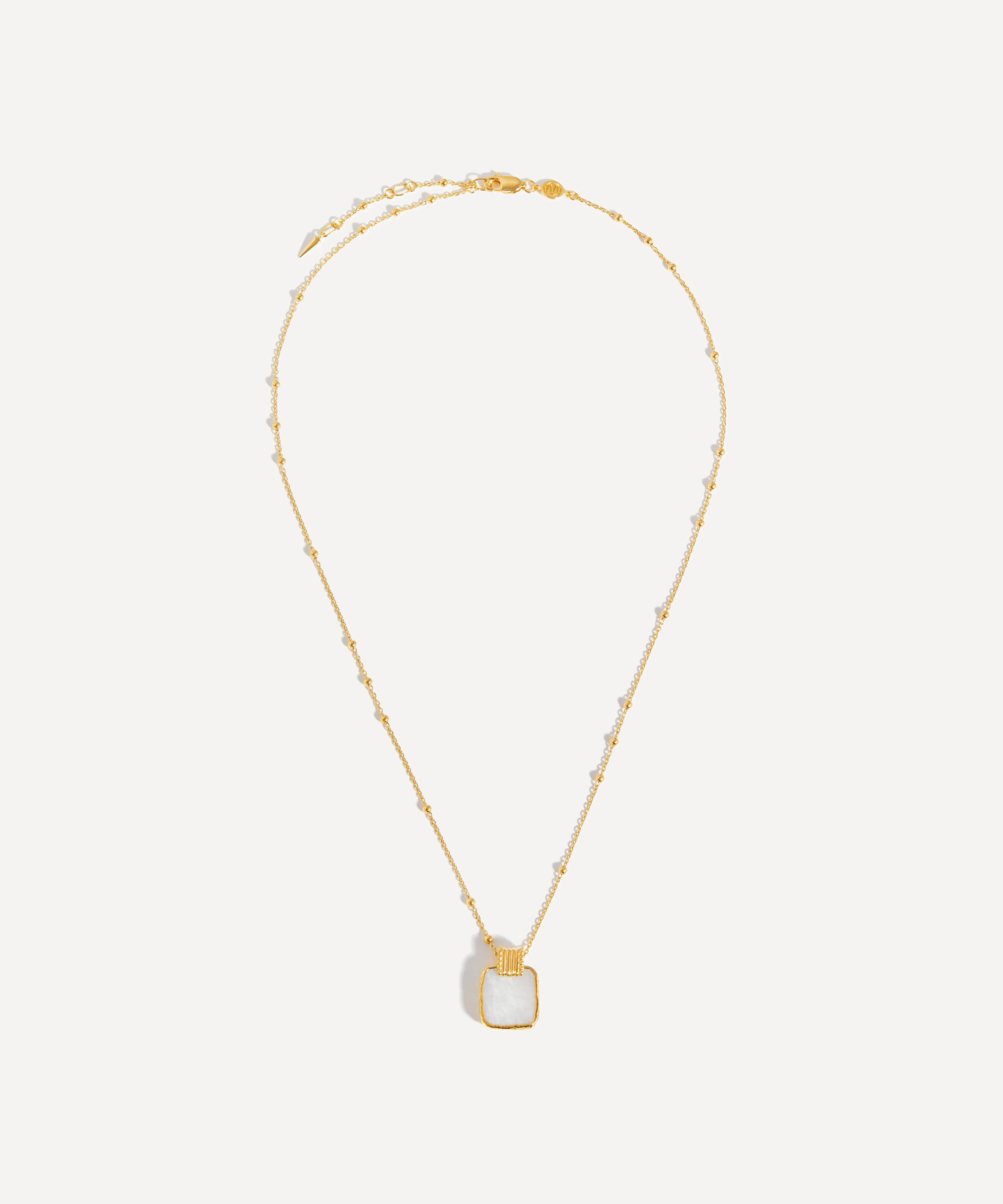 A stand-out addition to your everyday line-up, the Lena pendant necklace from Missoma is a brand best-seller that's perfect for layering. Crafted in sterling silver plated in 18ct gold vermeil, this necklace features a charming bobble chain, adorned with a rainbow moonstone pendant in a hammered bezel setting and ridged bail. Complete with a classic lobster clasp, it's perfect for mixing and matching with other Missoma styles - try teaming it with a delicate choker or the coordinating earrings for a pop of colour.