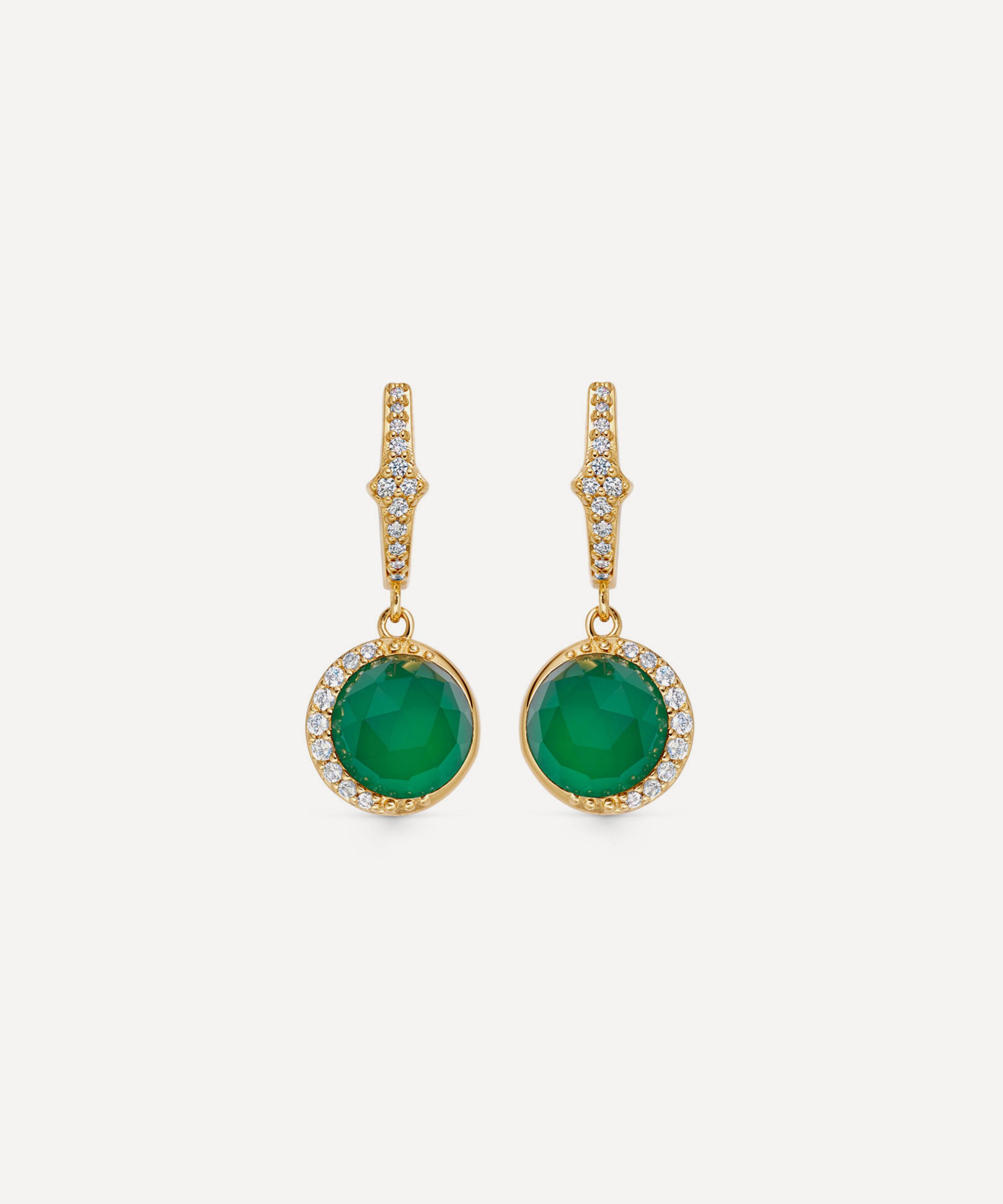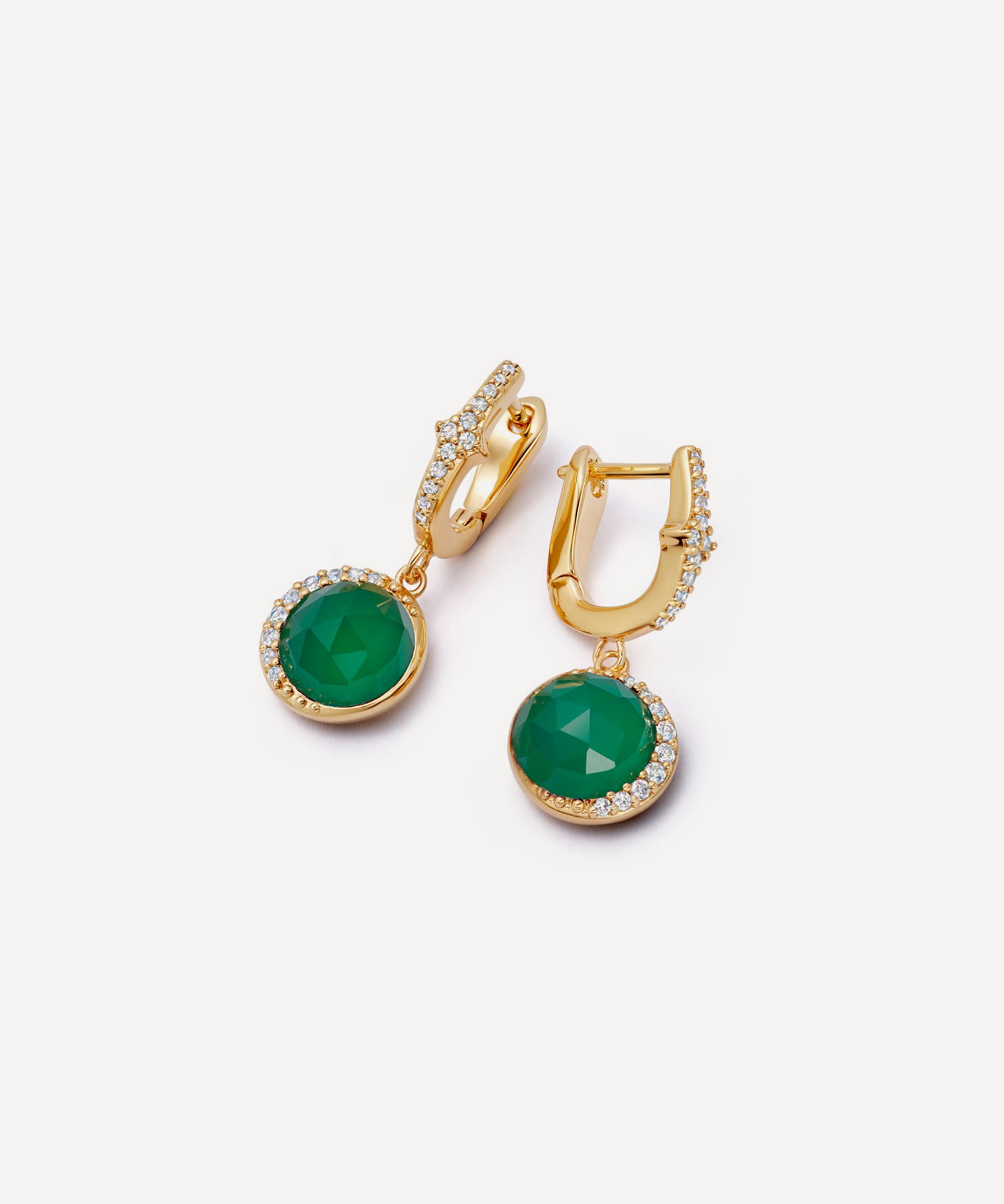 18ct Gold-Plated Vermeil Silver Luna Green Chalcedony Drop Earrings