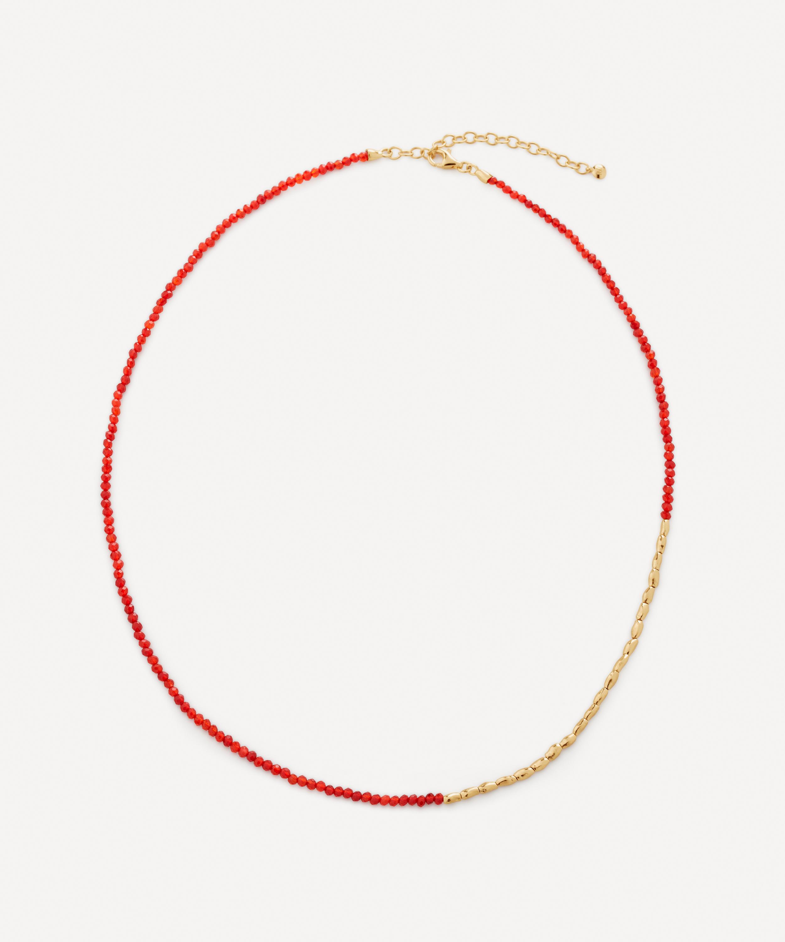 Give your outfit a colourful update with the Mini Nugget gemstone beaded necklace from Monica Vinader. This necklace features a string of red onyx beads and contrasting gold-plated nuggets on one side.