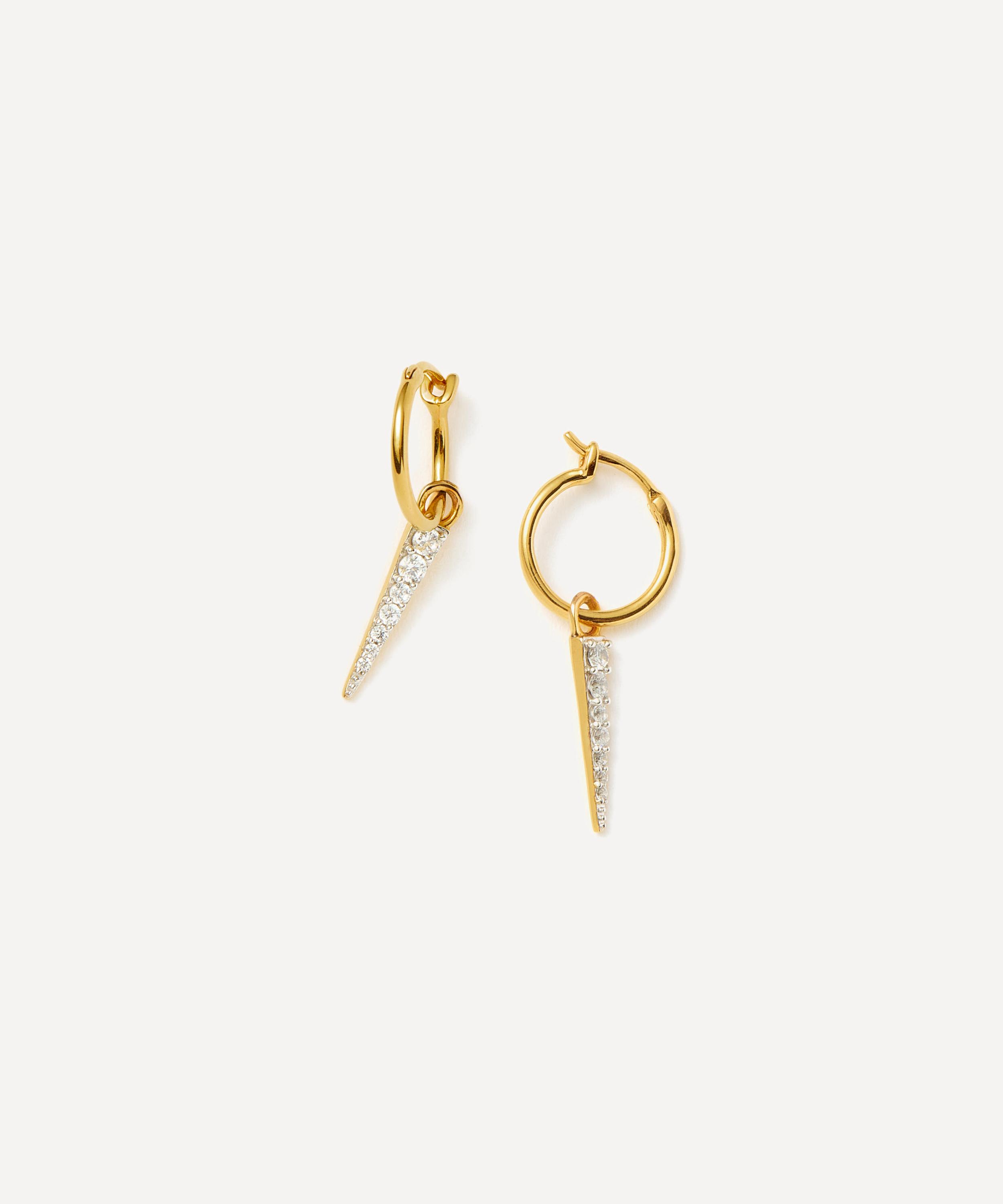 18ct Gold-Plated Vermeil Silver Mini Pavé Spike Charm Hoop Earrings