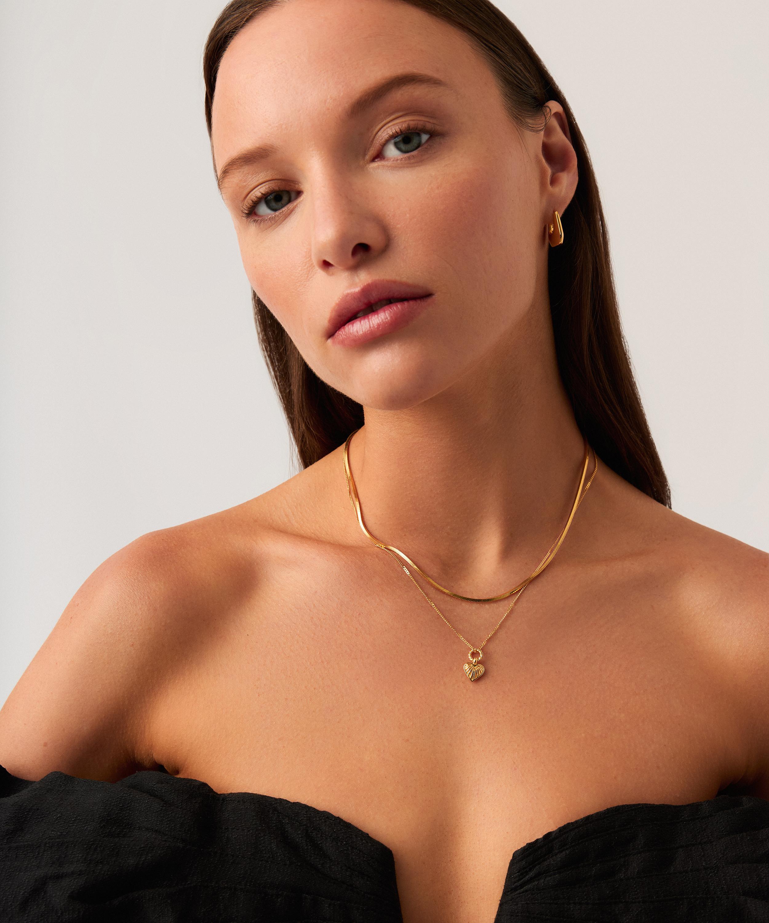 Make a style statement and elevate your outfit with this pendant necklace from Missoma. Crafted from sterling silver plated in 18ct gold vermeil, it features a delicate trace and bobble chain with a puffed heart pendant in 18ct gold-plated brass. The pendant is embellished with the brand’s signature ridge detailing and finished with a twisted rope jump ring. Style it solo or layer it with shorter necklaces or a choker.