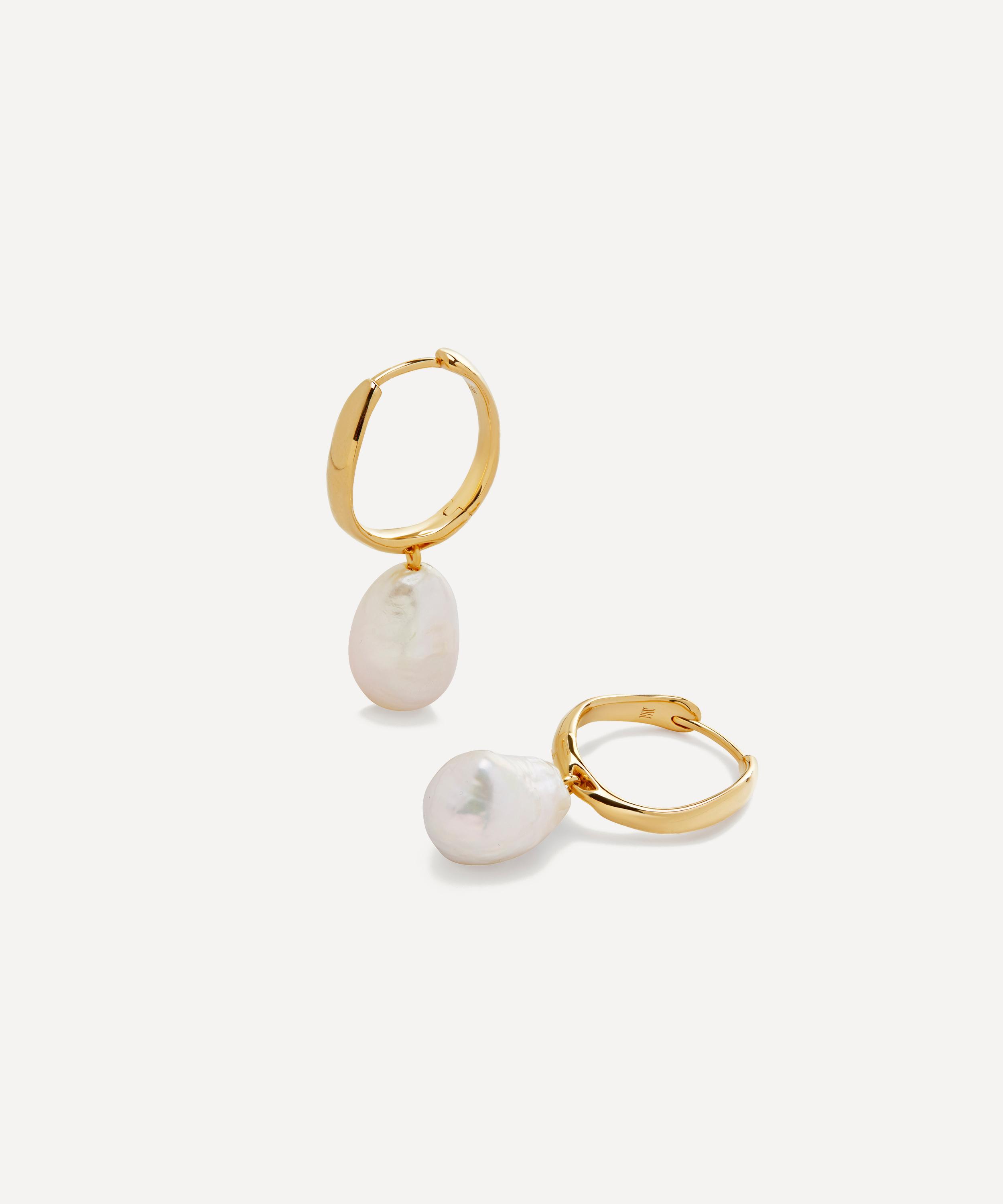 Part of the brand's Nura Collection, inspired by sea-tumbled pebbles, reef fragments and high-polished shells, these earrings have been crafted from sterling silver plated in 18ct gold vermeil for a subtly irregular, undulating hoop silhouettes, complete with luminous, large baroque pearls.