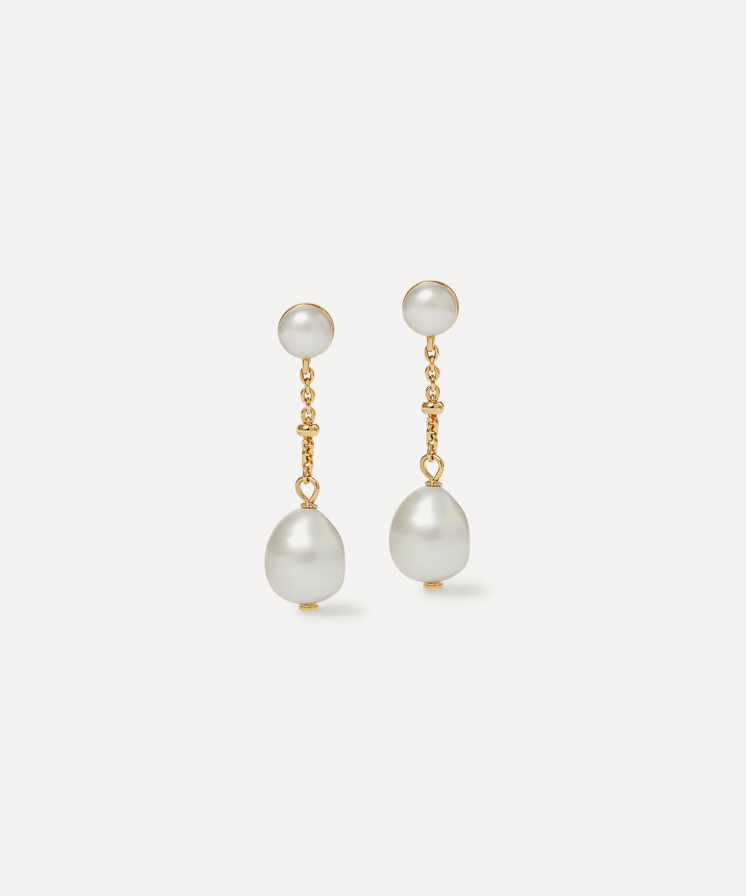 Strung with dreamy, lustrous freshwater pearls, each earring catches the light with a subtle sheen, lending a sense of poise and modern romance to the ear. Set on a fine chain crafted from sterling silver plated in 18ct gold vermeil, they make for a thoughtful gift – or a forever addition to your own jewellery collection. Layer them with other pieces or style alone for a touch of refined simplicity.
