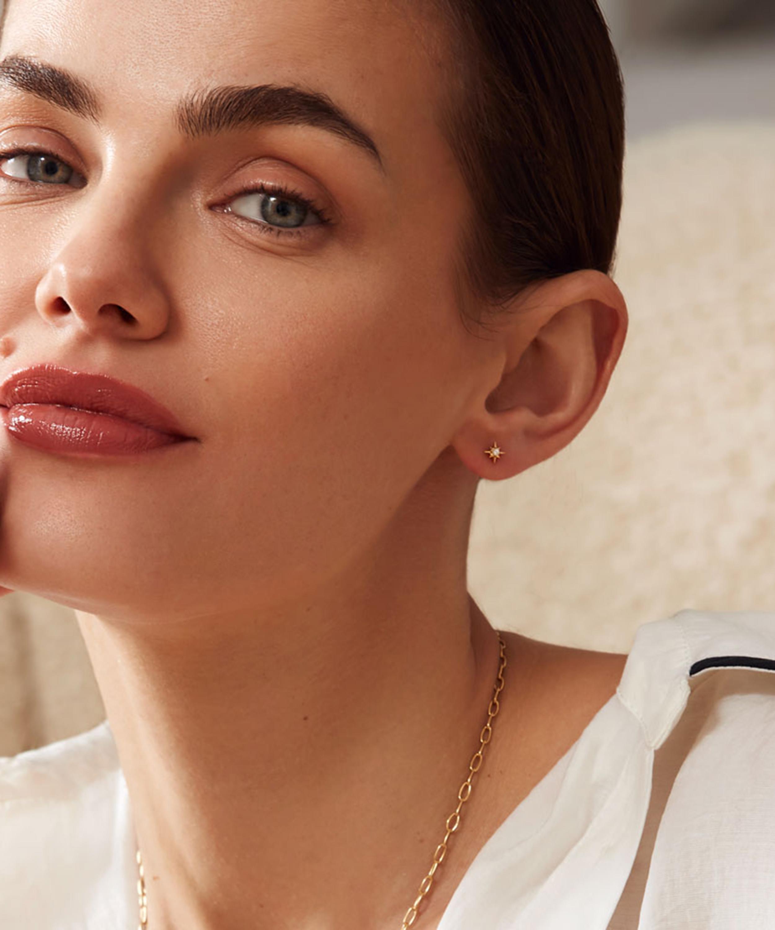 Inspired by the beauty of the North Star, these earrings feature an intricate, star-shaped stud adorned with a white sapphire at the centre. Complete with a classic post and butterfly fastening, they can be worn alone for some understated glamour, or part of a stack – mix and match with various piercings from the collection to create a dramatic curated ear.